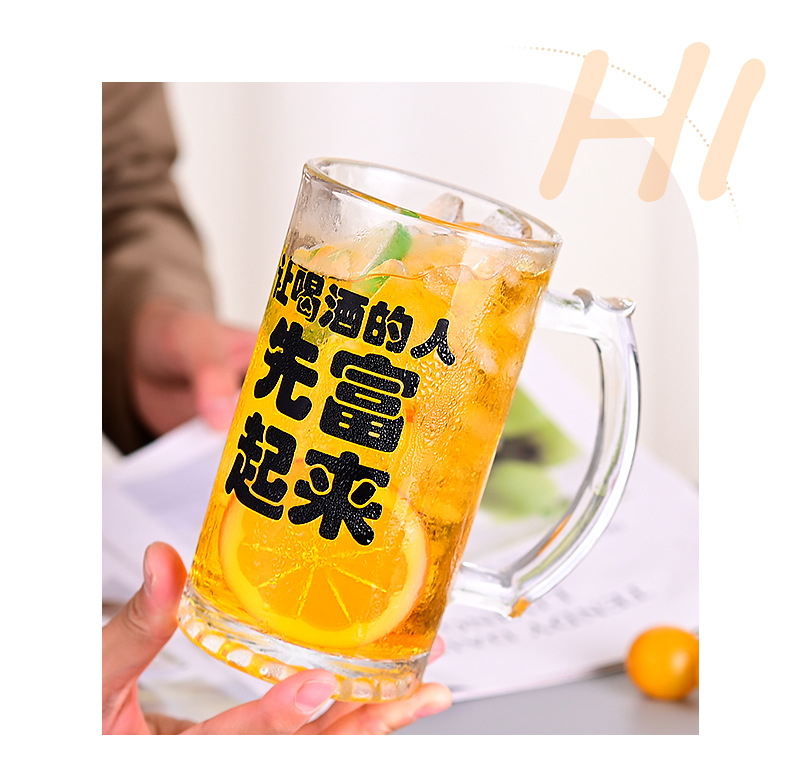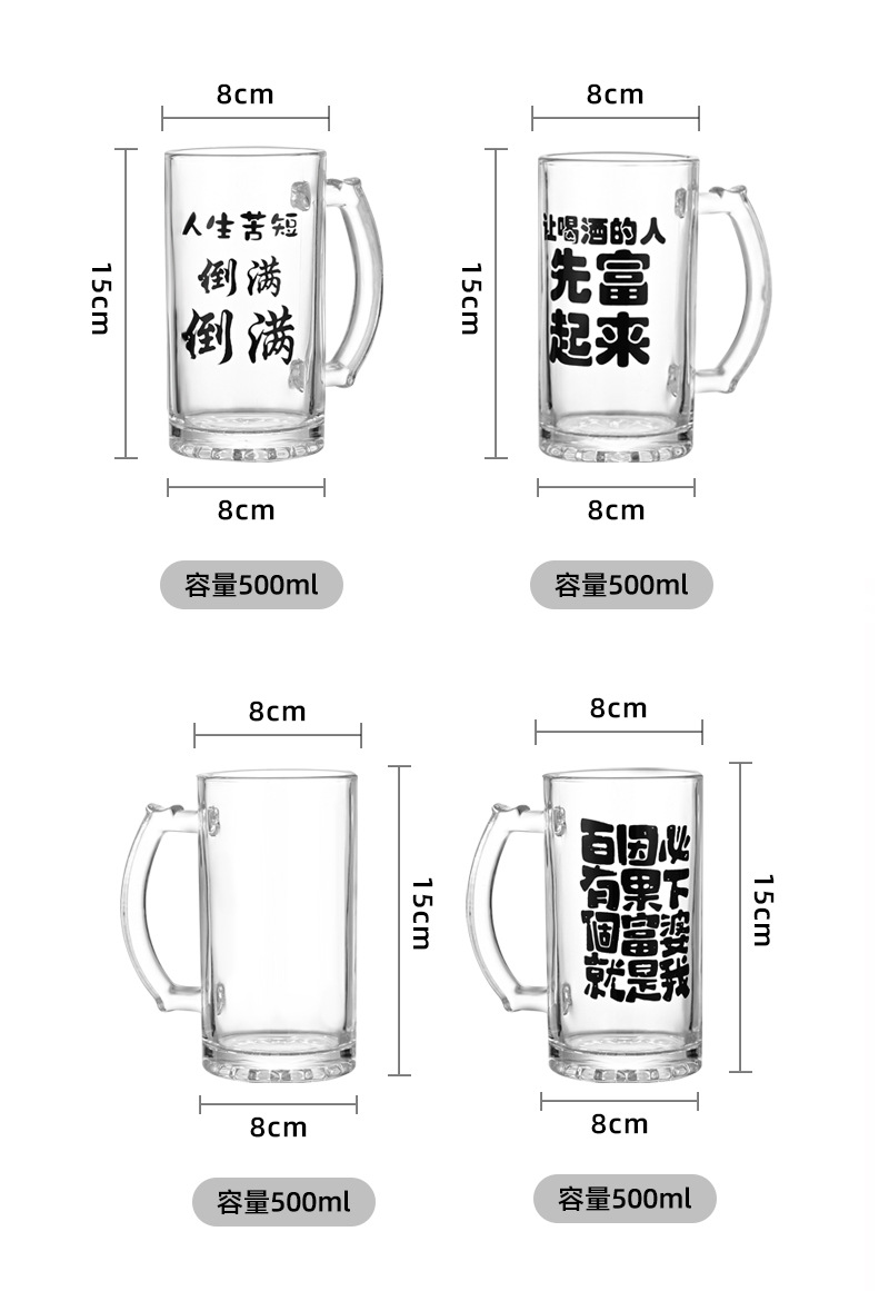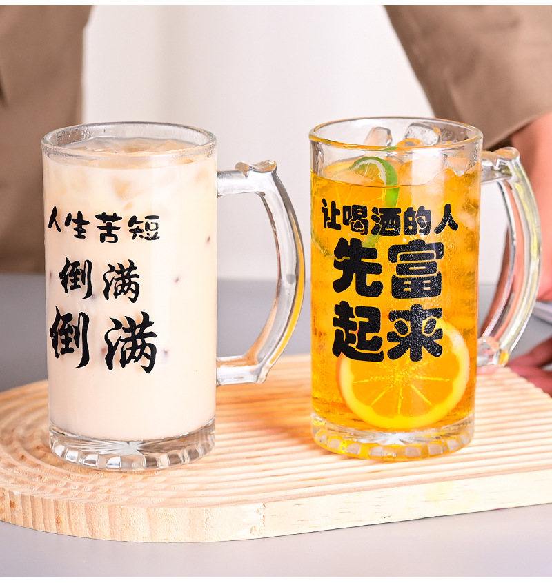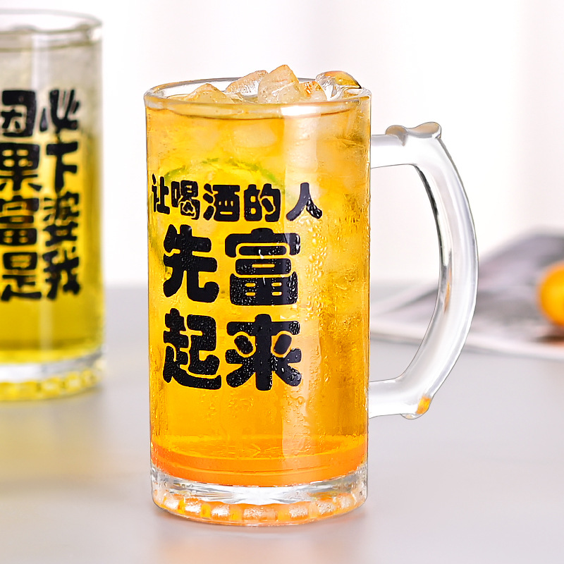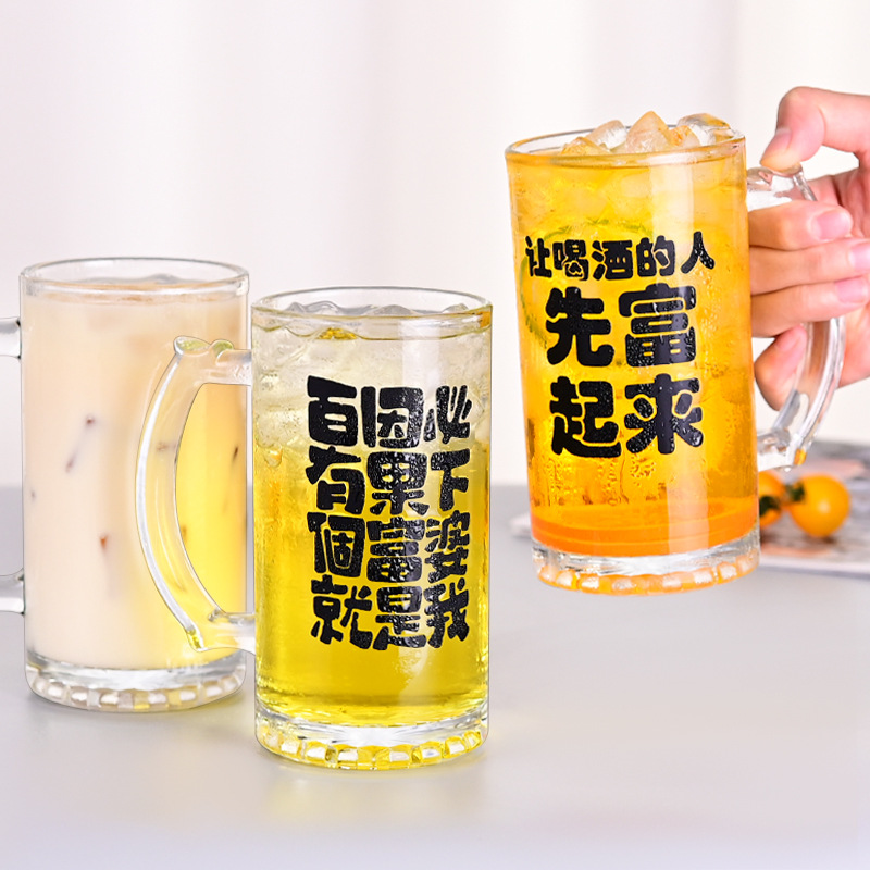 扎啤杯加厚玻璃杯大容量家用玻璃果汁杯礼品批发带把啤酒杯水杯