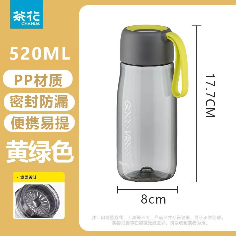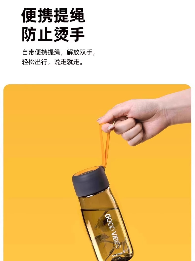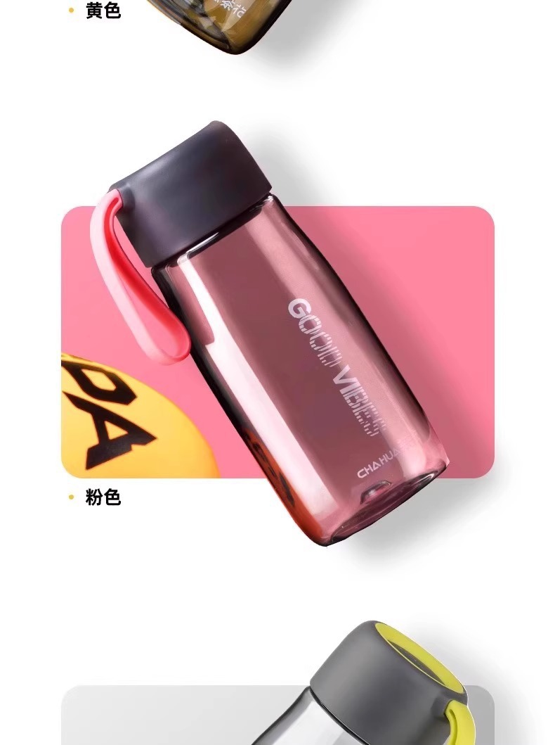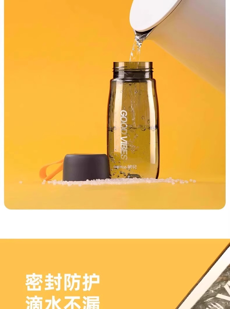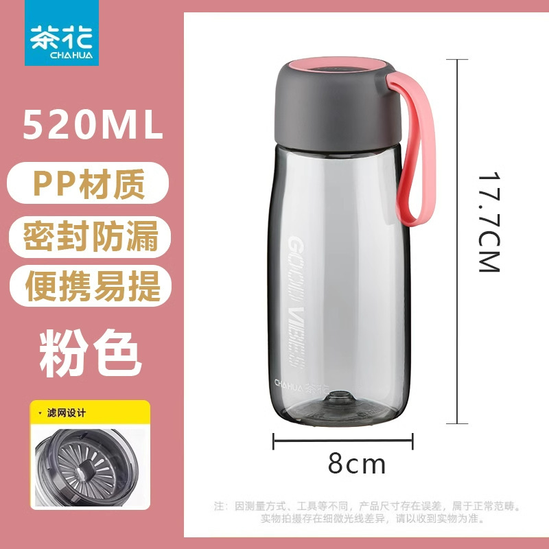 茶花新款环彩随行杯 520ml塑料提手带PC透明水杯运动随手喝茶旅行