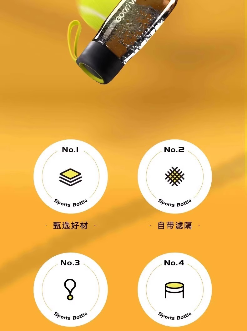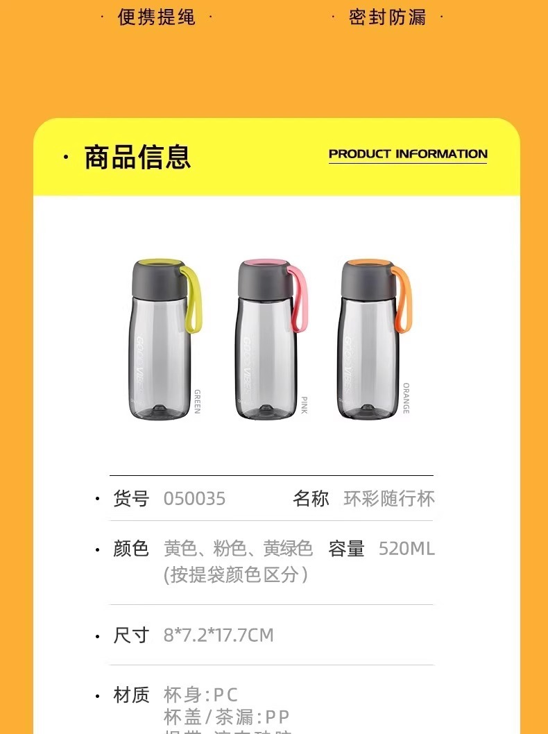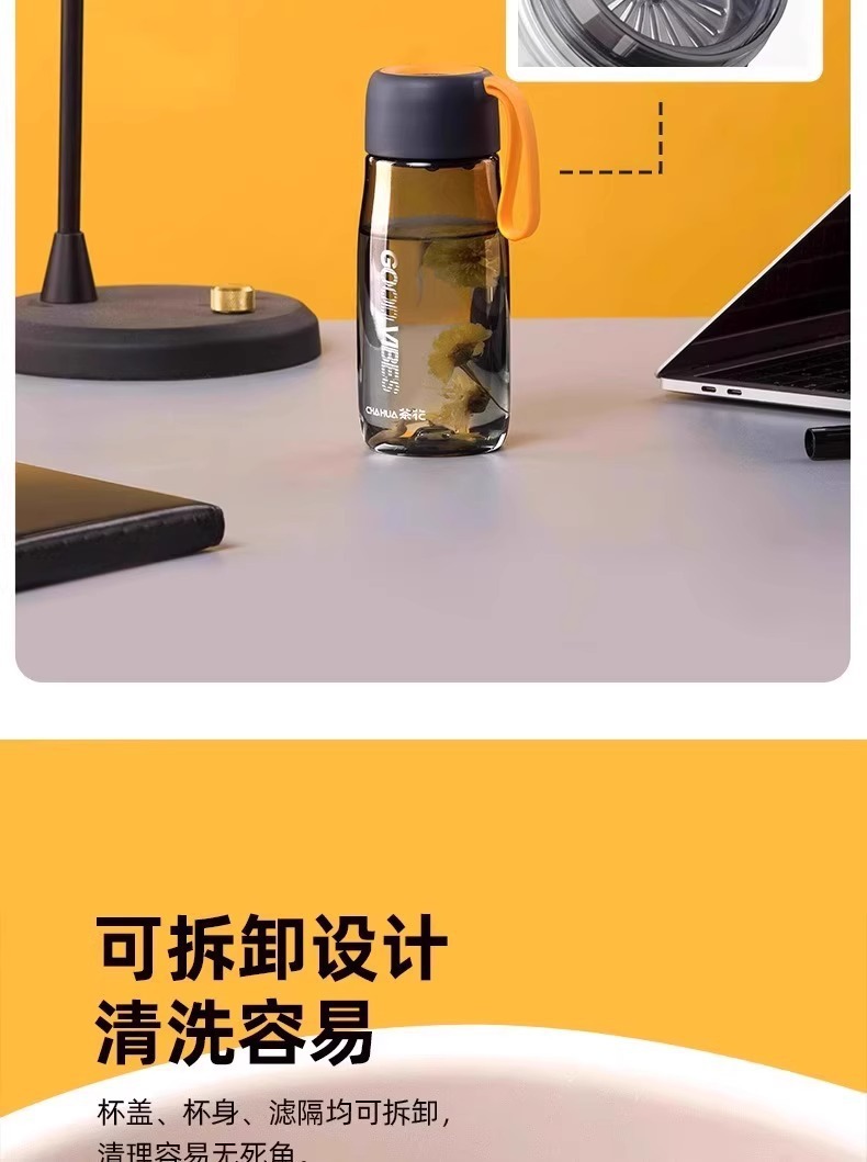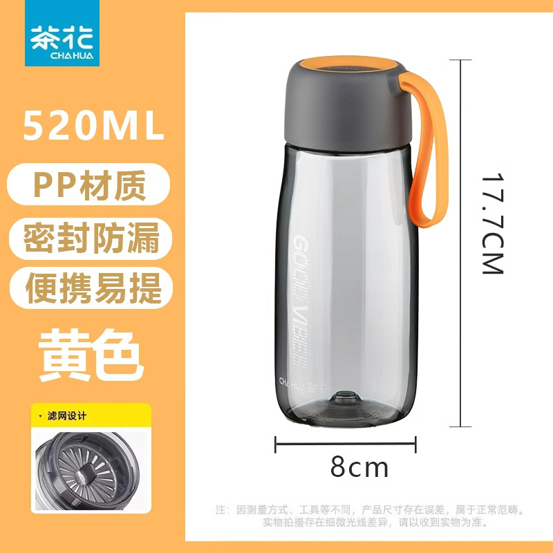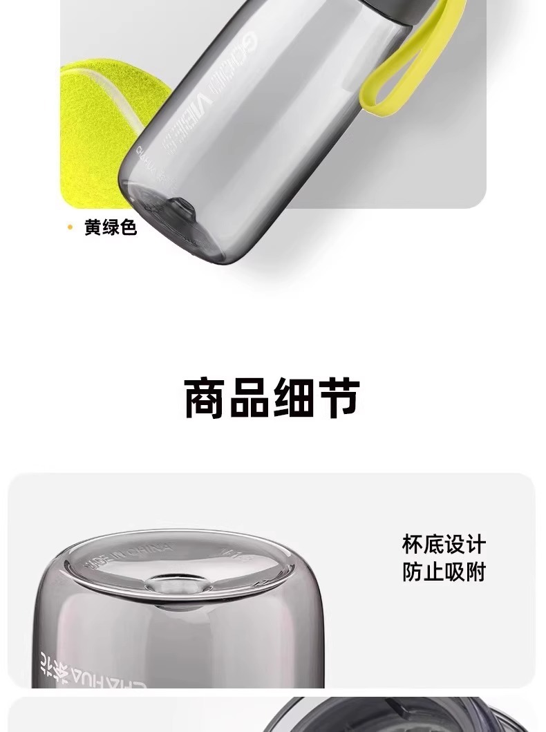 茶花新款环彩随行杯 520ml塑料提手带PC透明水杯运动随手喝茶旅行