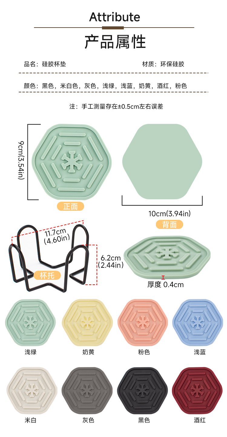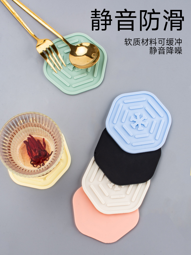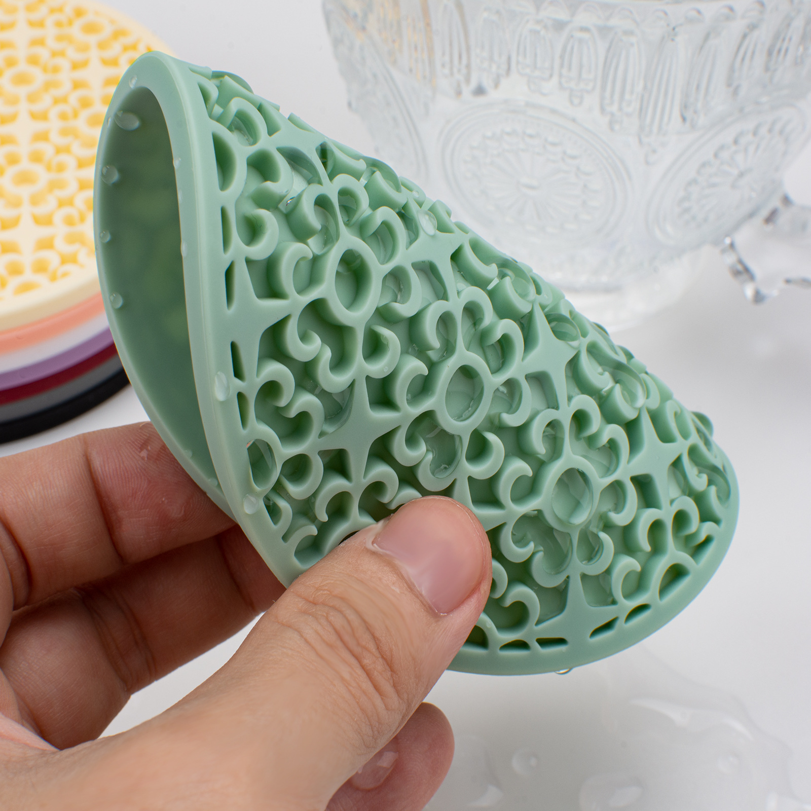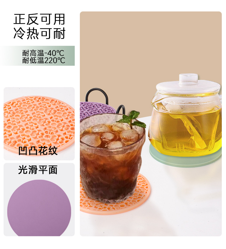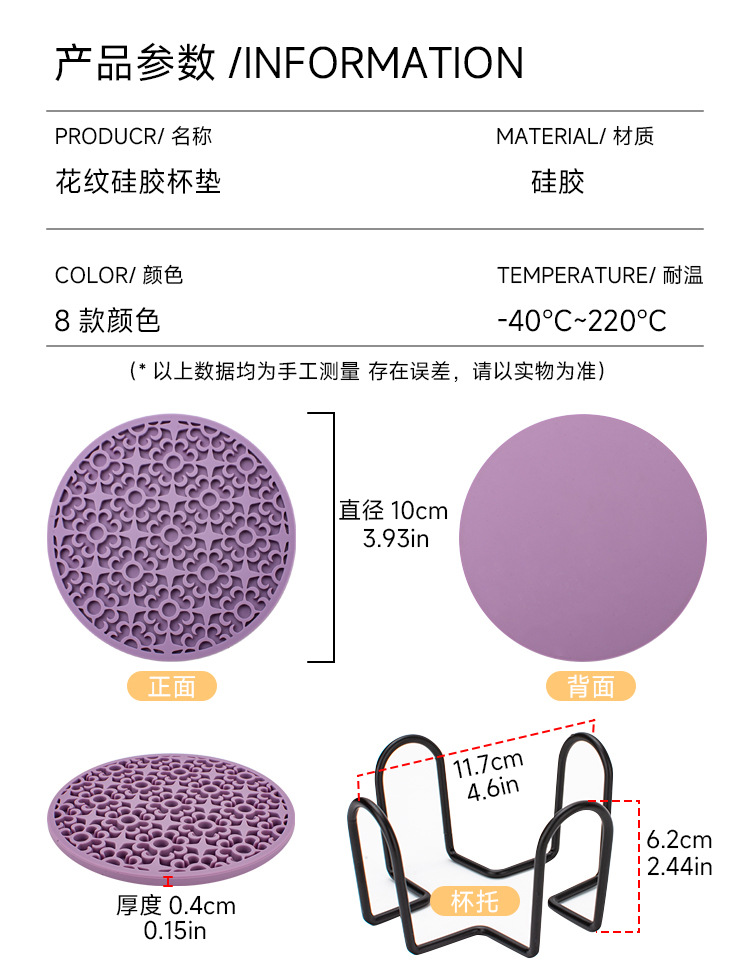复古花纹沥水硅胶圆形杯垫隔热软胶茶杯垫套装可配杯垫收纳盒架子