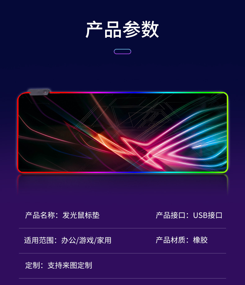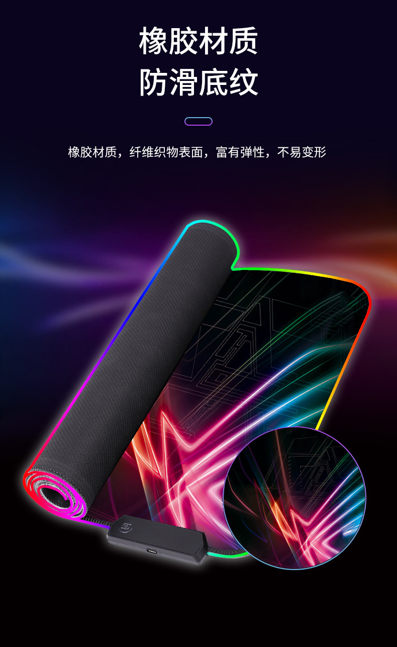 炫彩发光鼠标垫RGB游戏大尺寸加厚防滑LED桌垫电竞