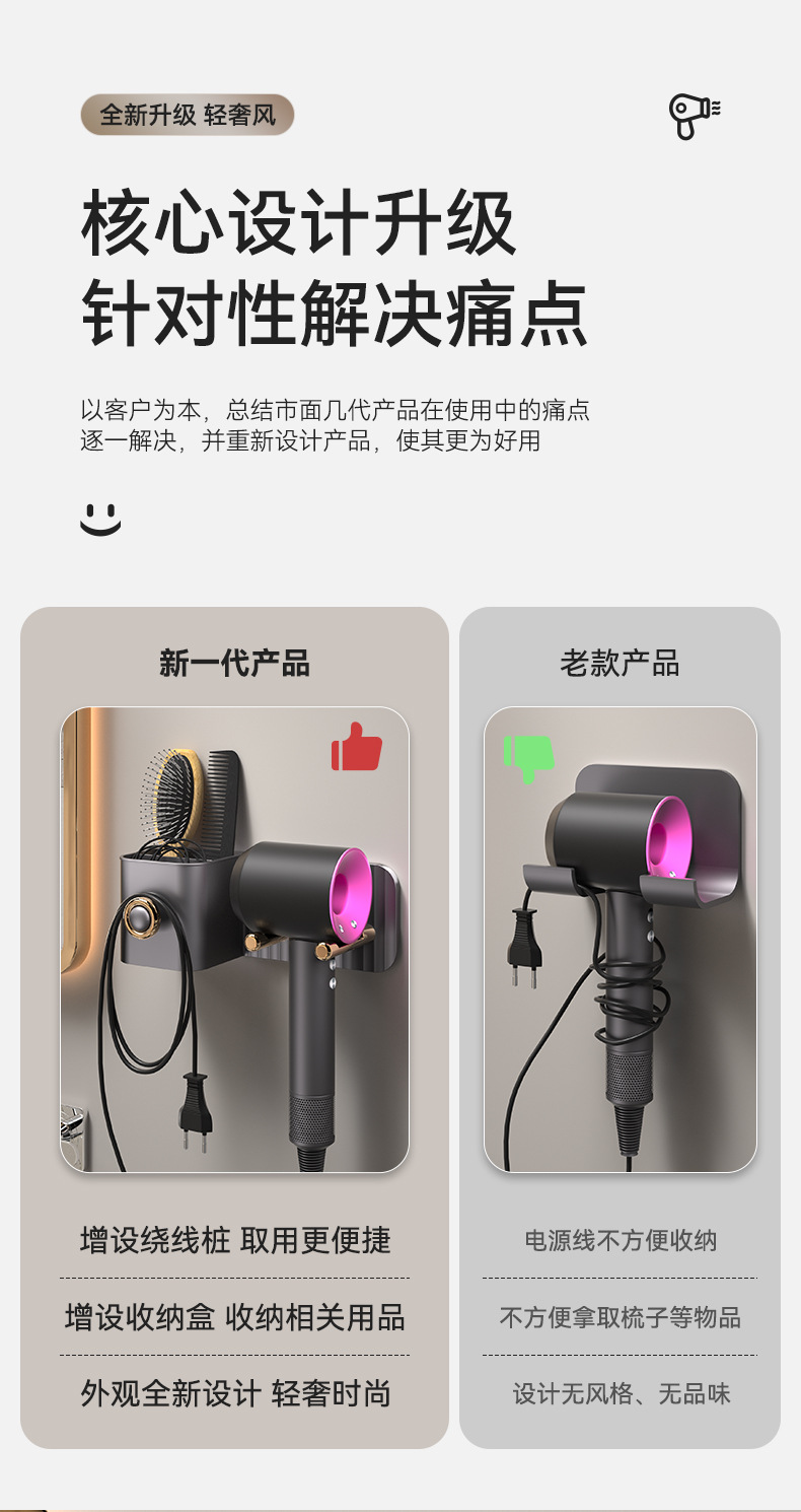 电吹风机置物架免打孔卫生间壁挂支架浴室徕芬吹风筒收纳放置架子