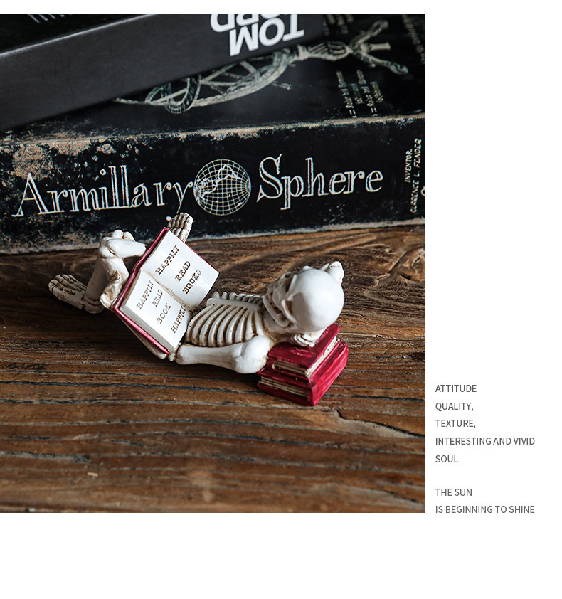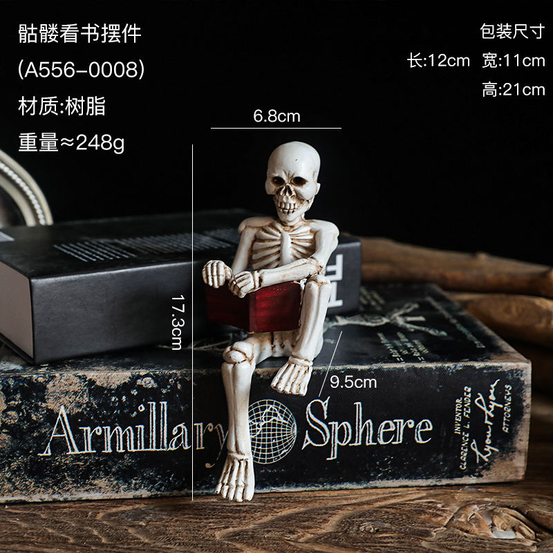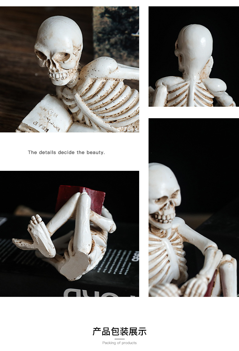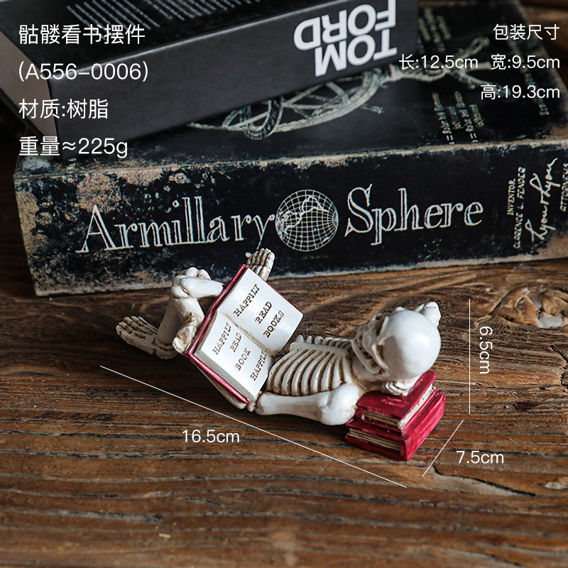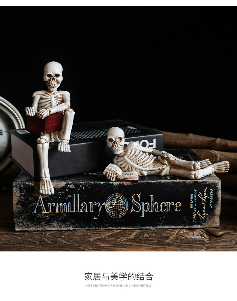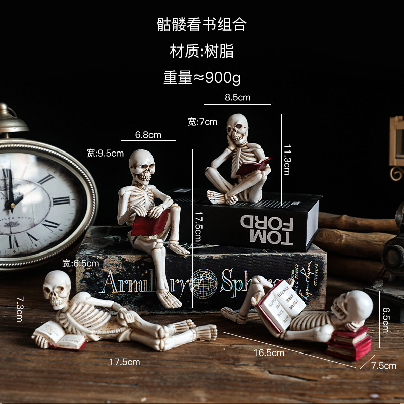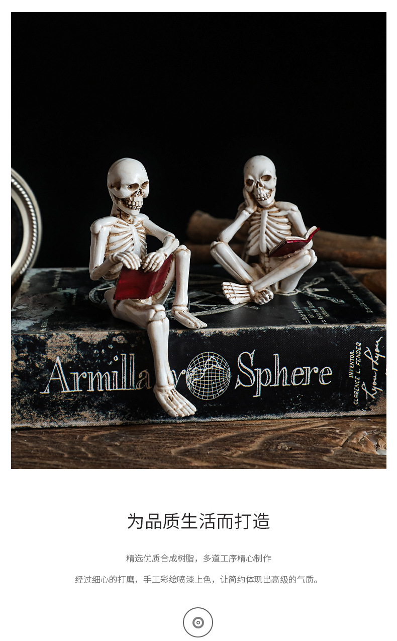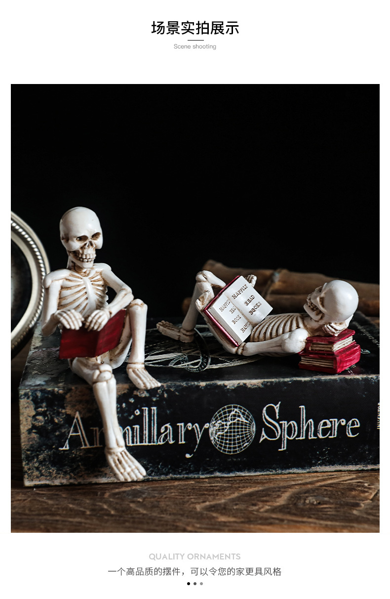 跨境新品创意万圣节卡通骷髅看书人物摆件家居树脂工艺品装饰礼品
