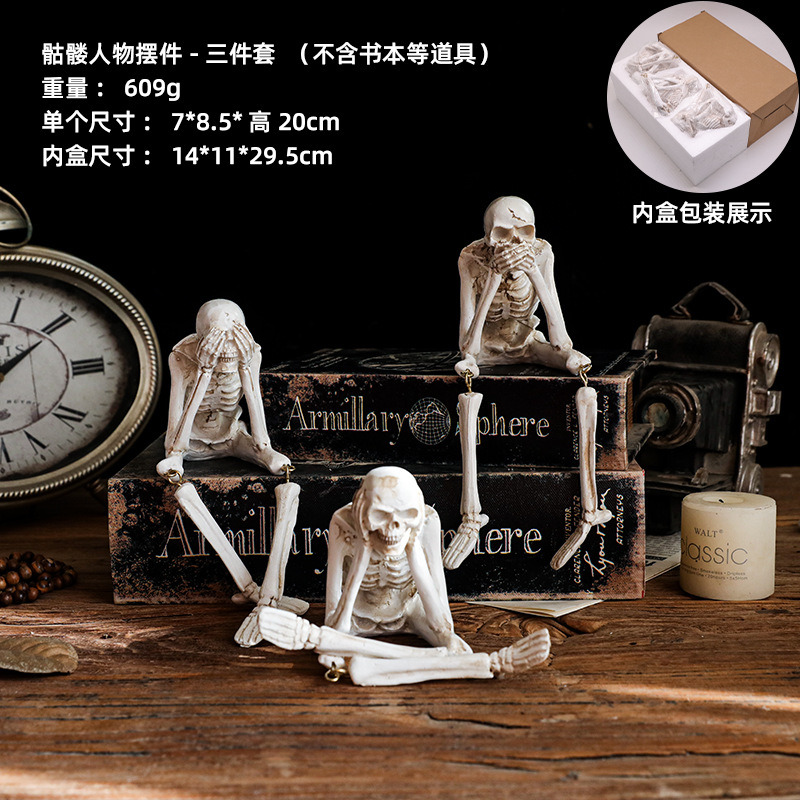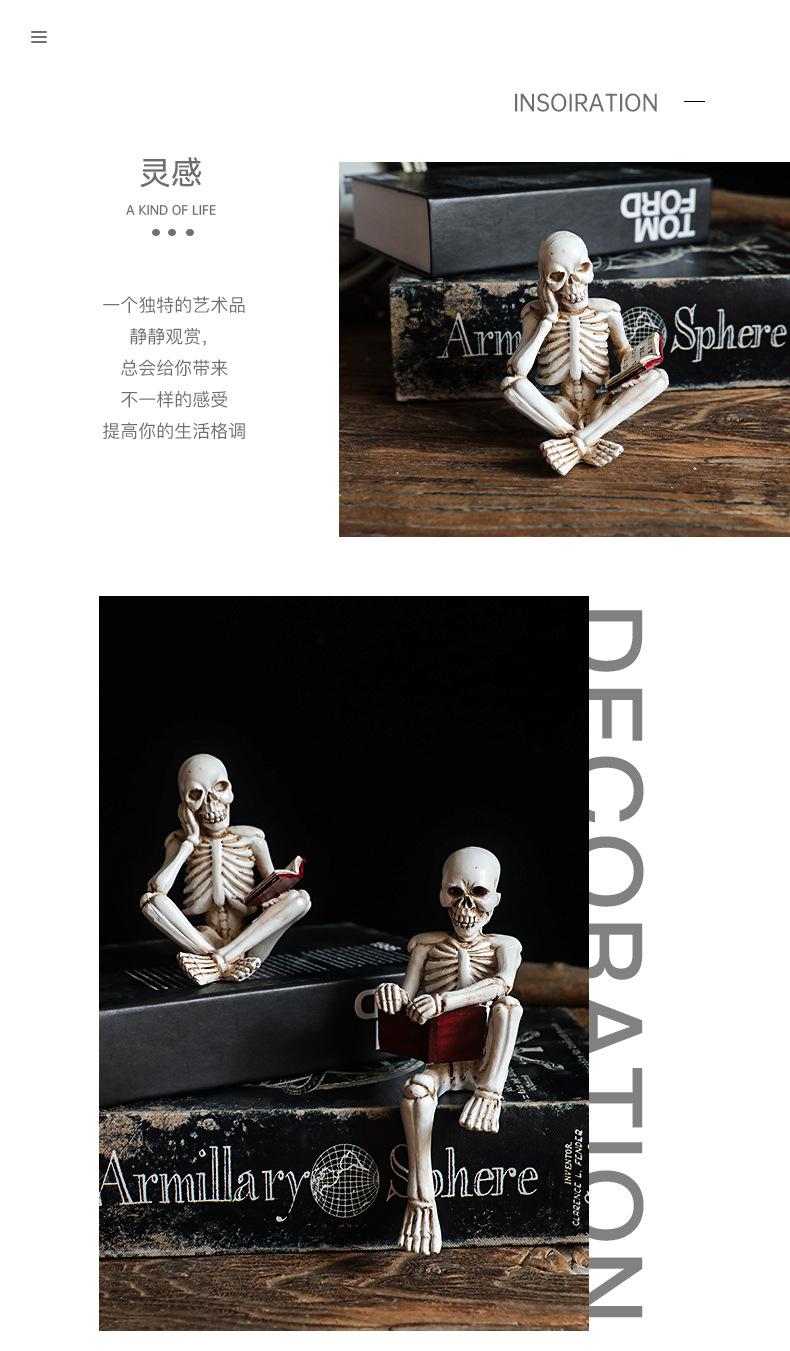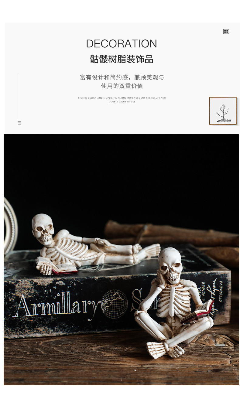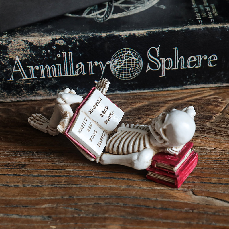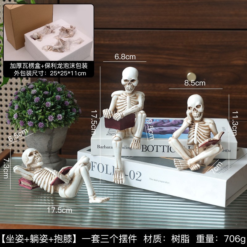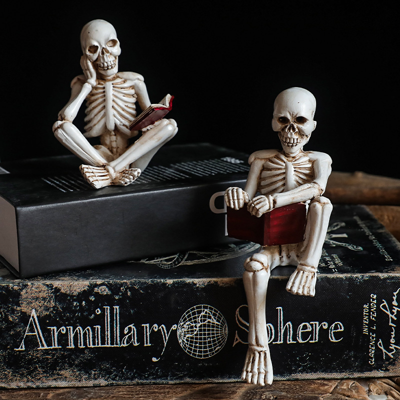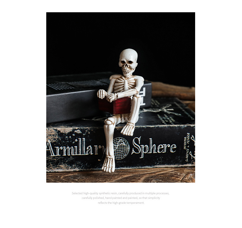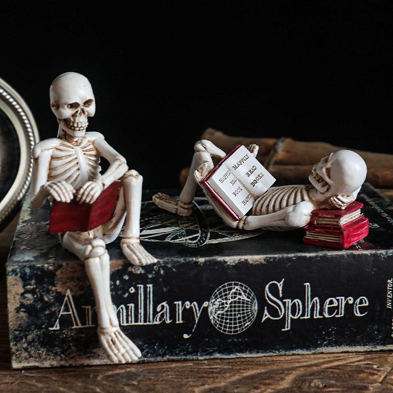 跨境新品创意万圣节卡通骷髅看书人物摆件家居树脂工艺品装饰礼品