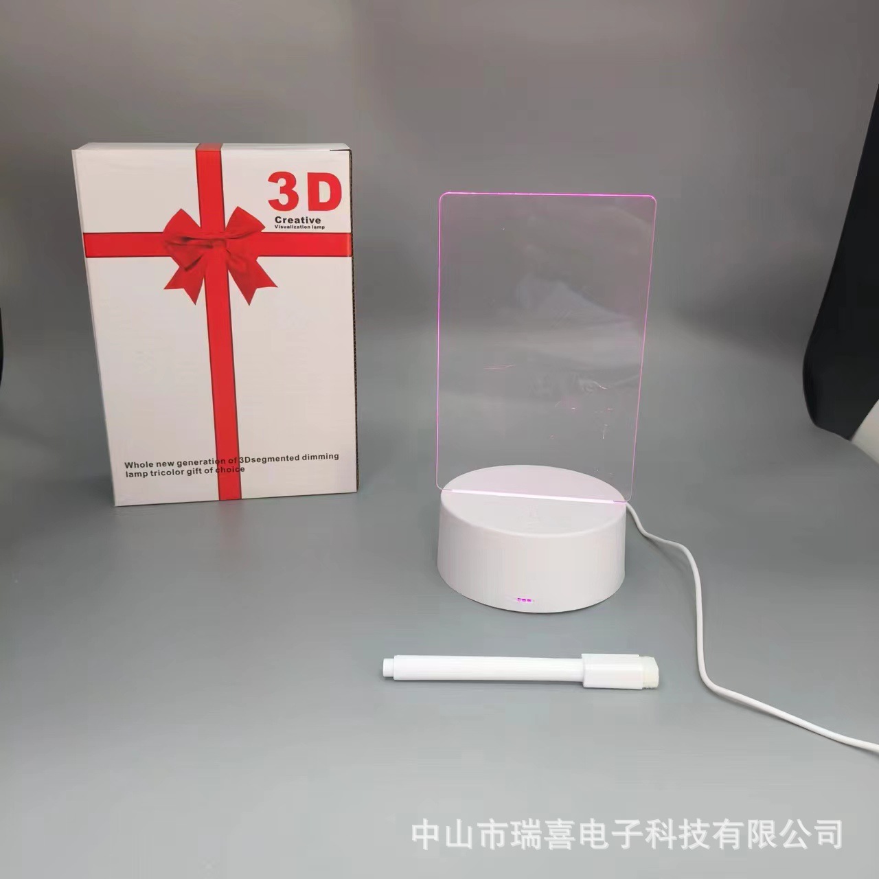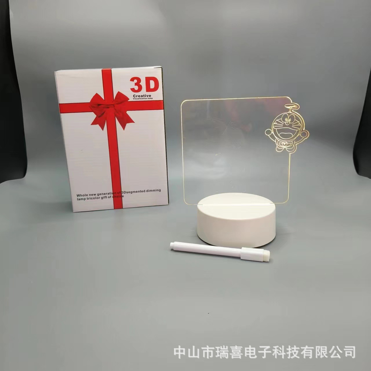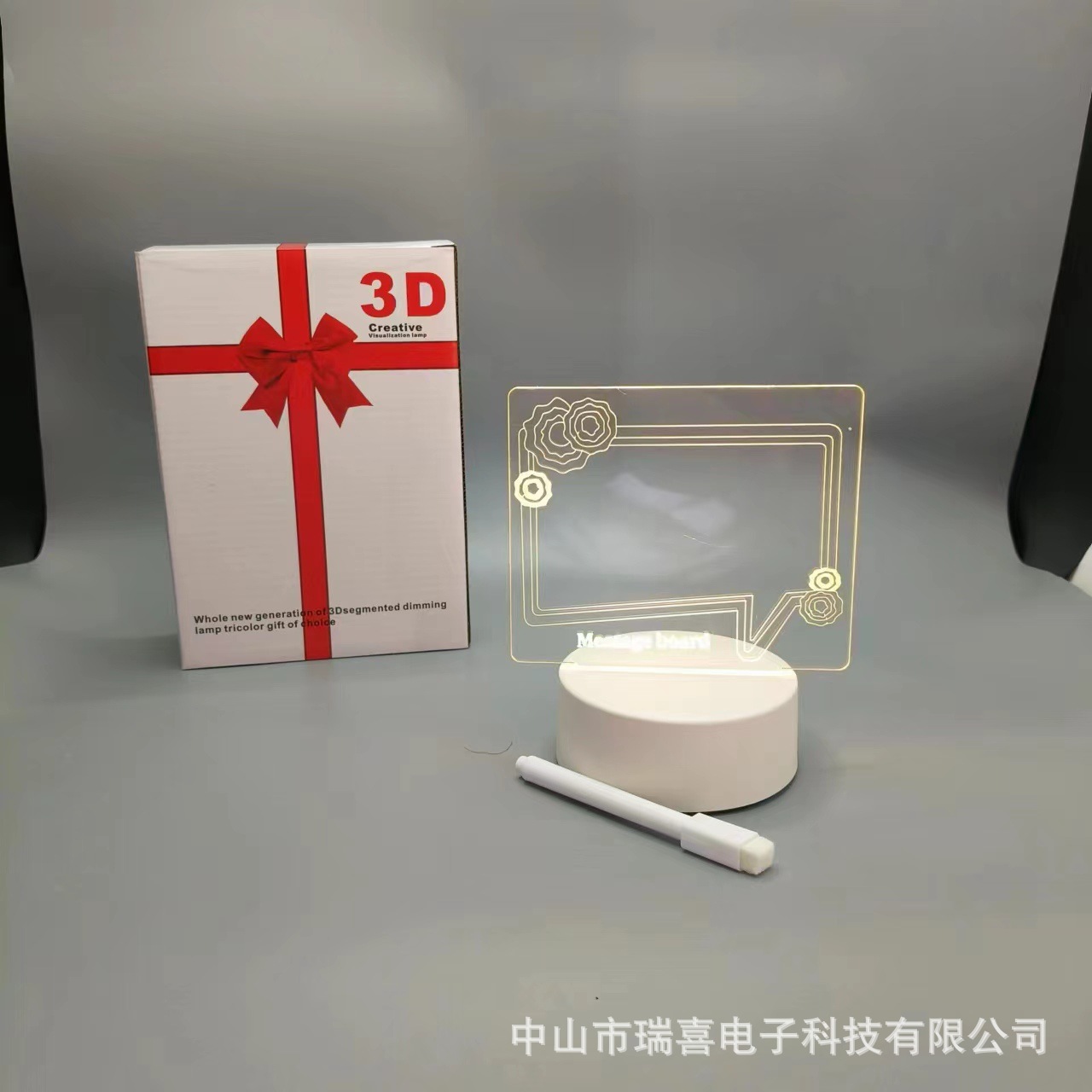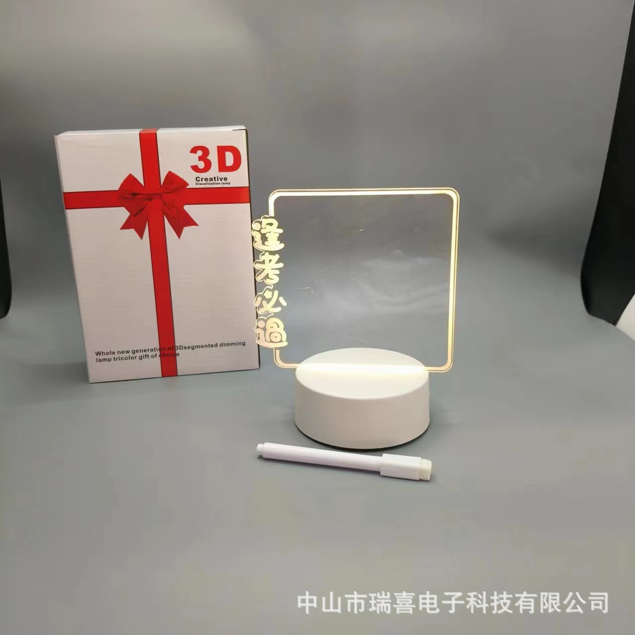 跨境创意礼品3d小夜灯 实木头底座可擦写发光亚克力diy空白留言板