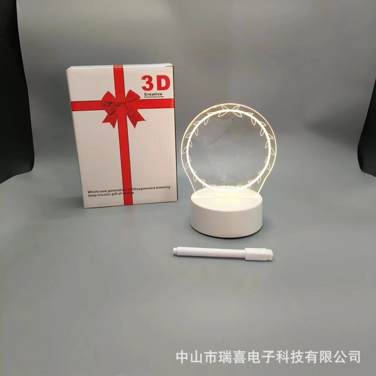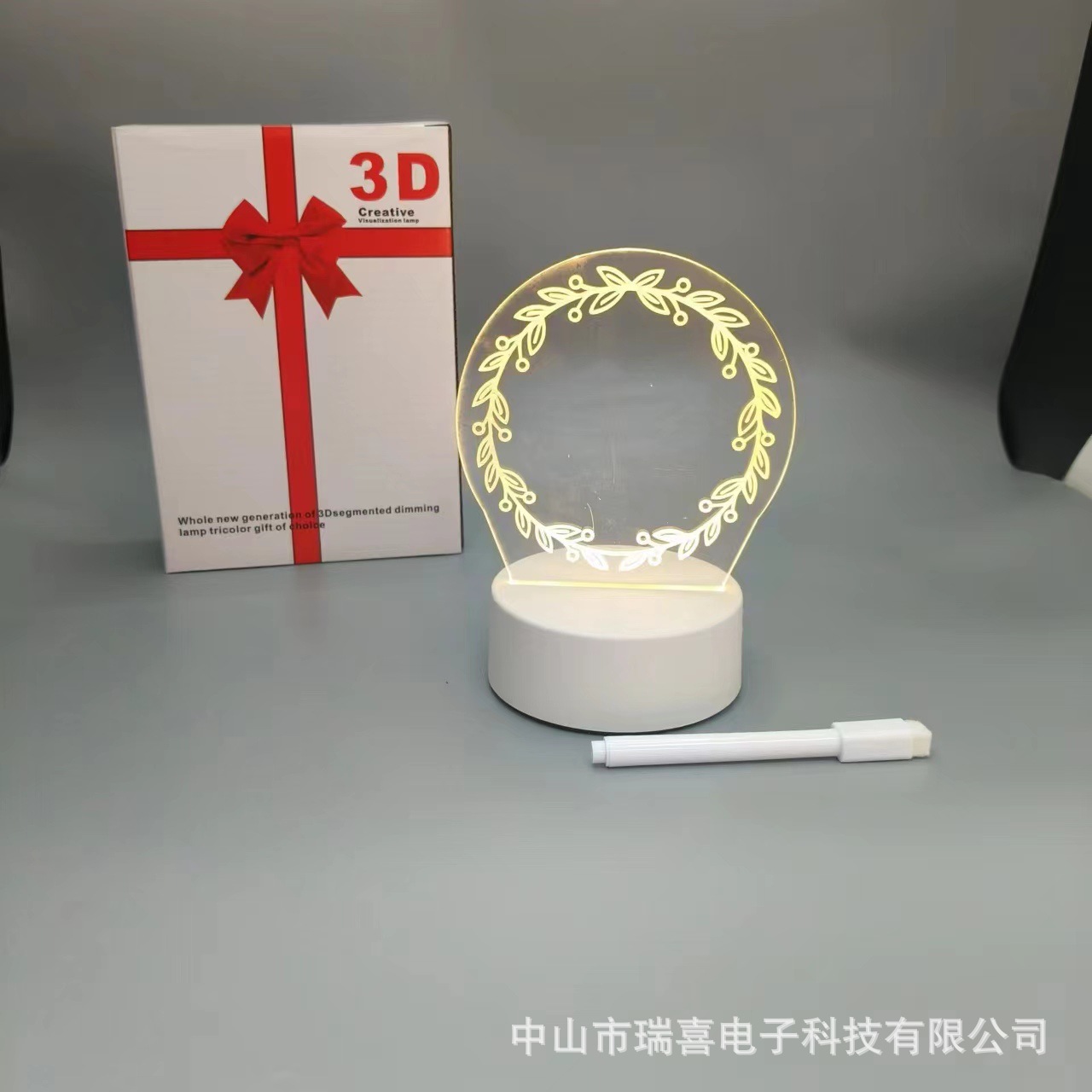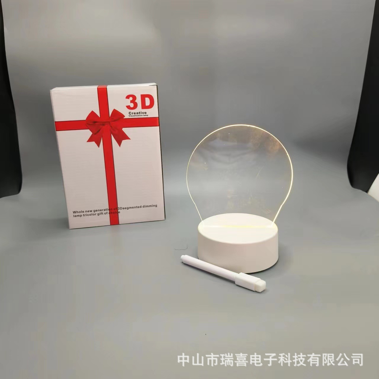 跨境创意礼品3d小夜灯 实木头底座可擦写发光亚克力diy空白留言板