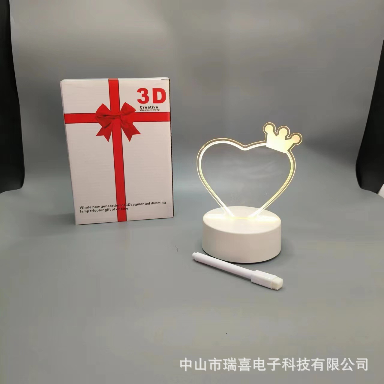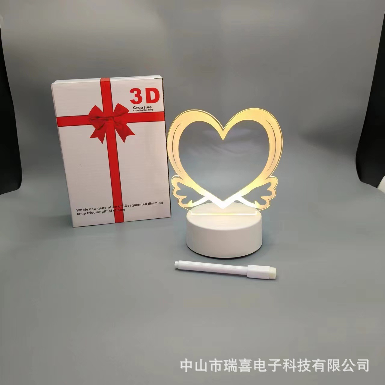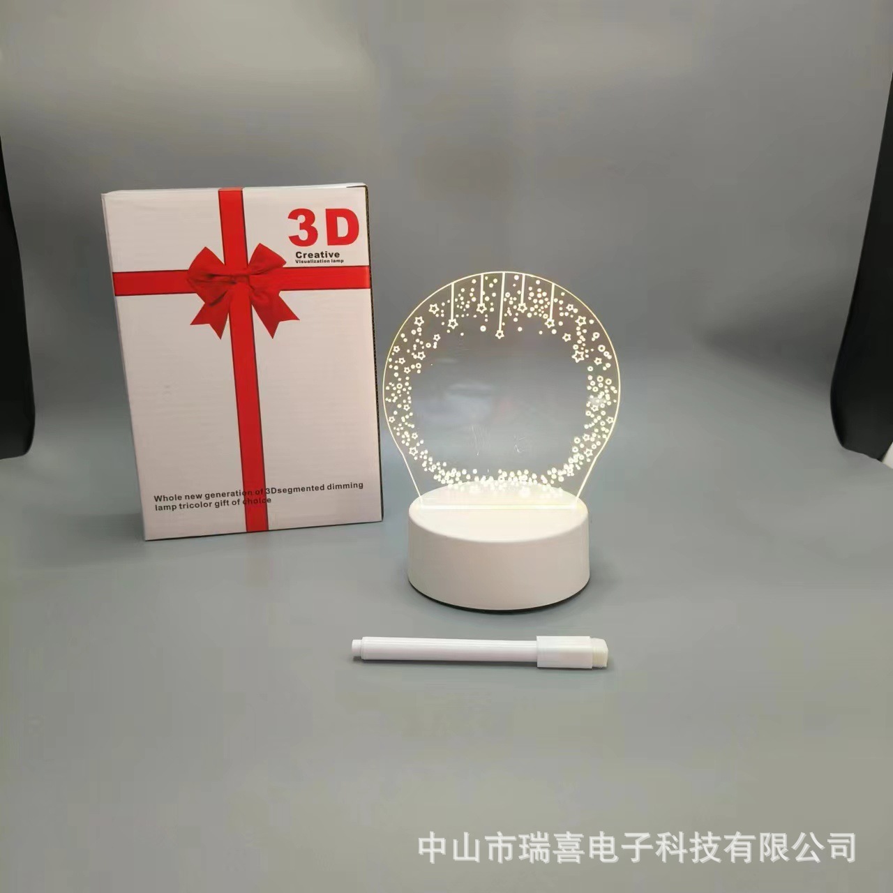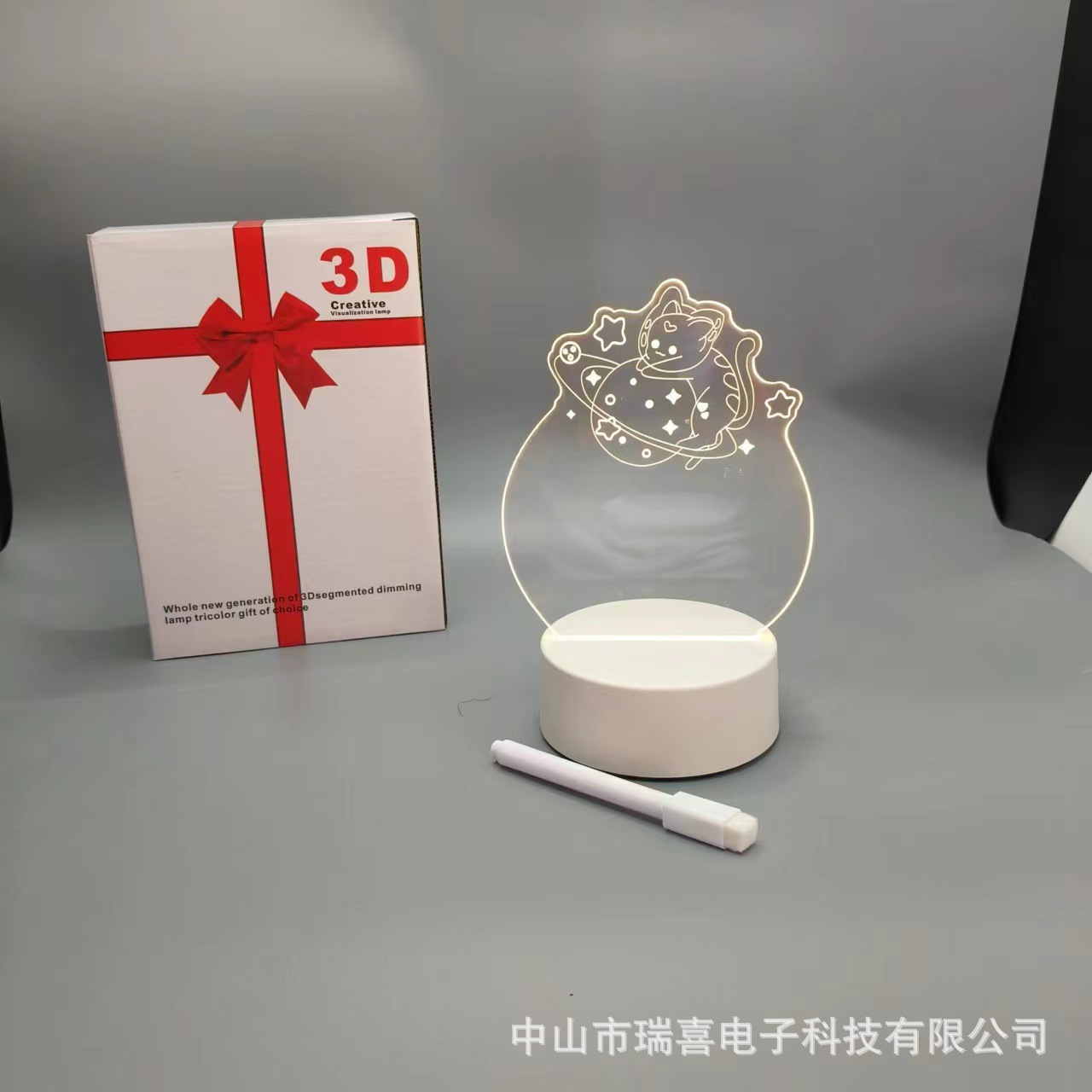 跨境创意礼品3d小夜灯 实木头底座可擦写发光亚克力diy空白留言板