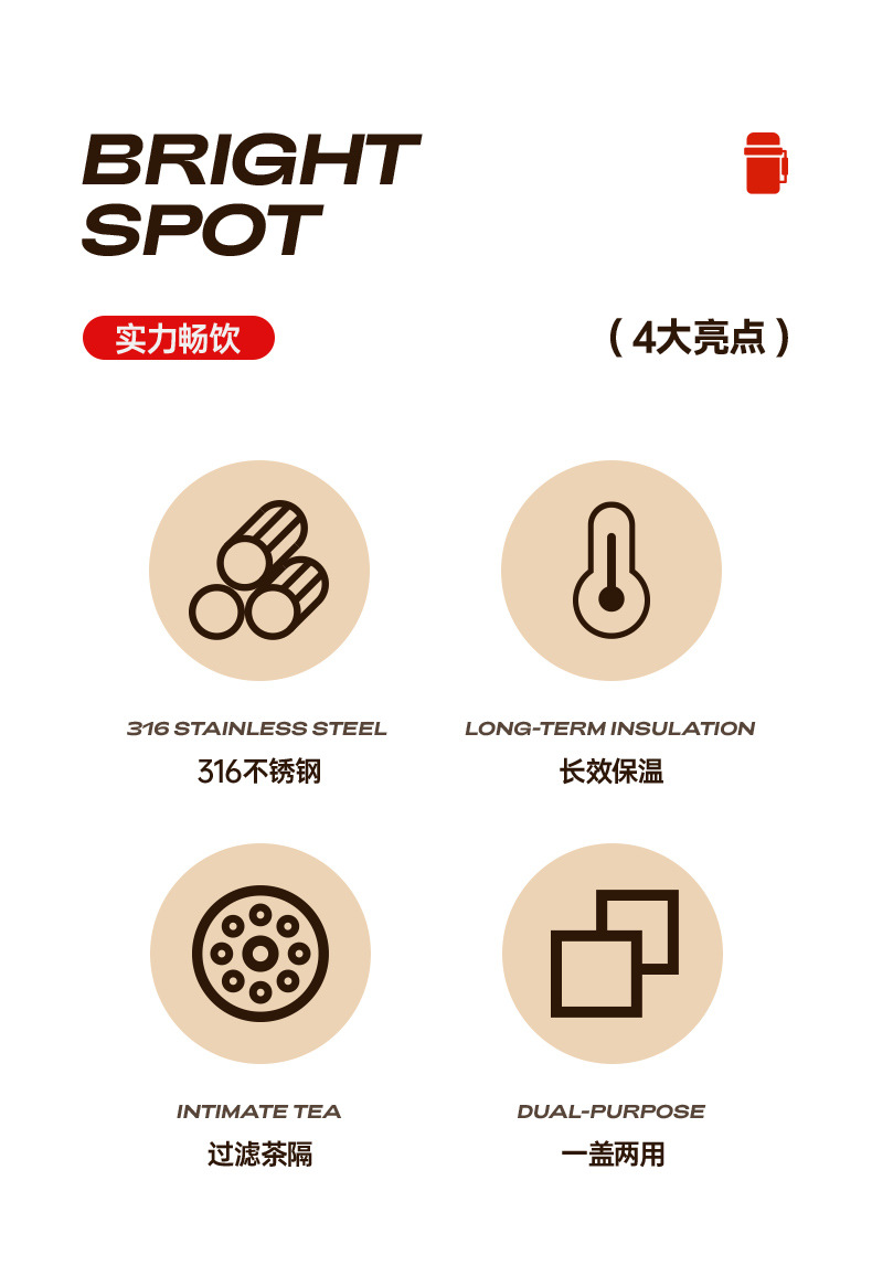 跨境316不锈钢保温杯茶水分离礼品焖茶杯高颜值男女学生全钢杯