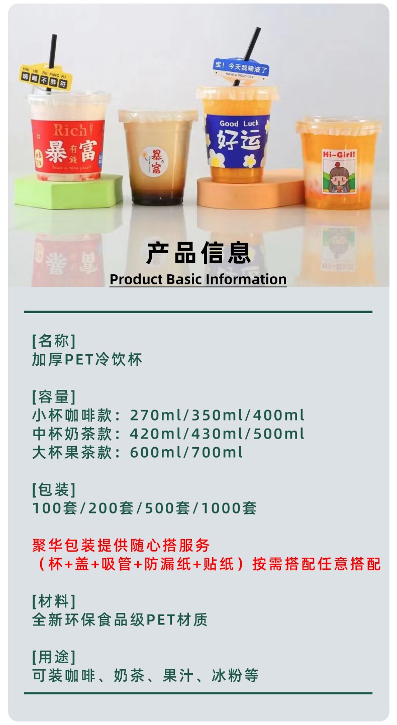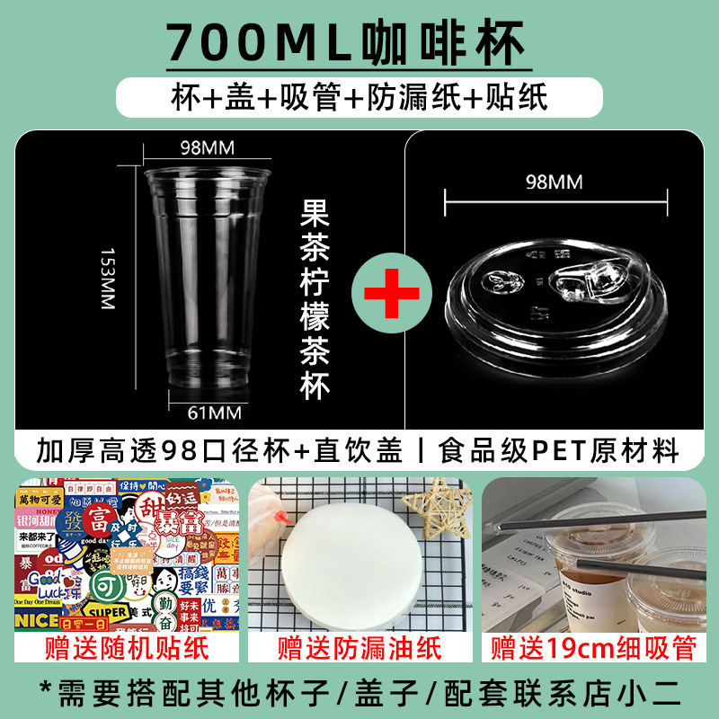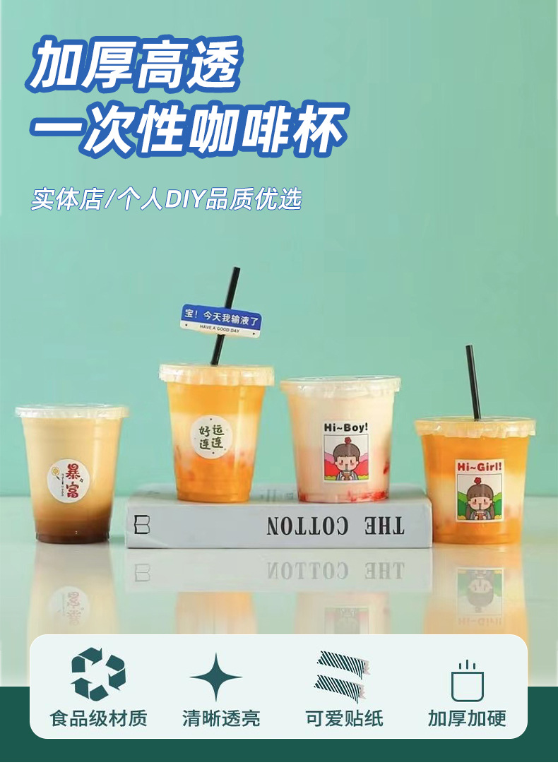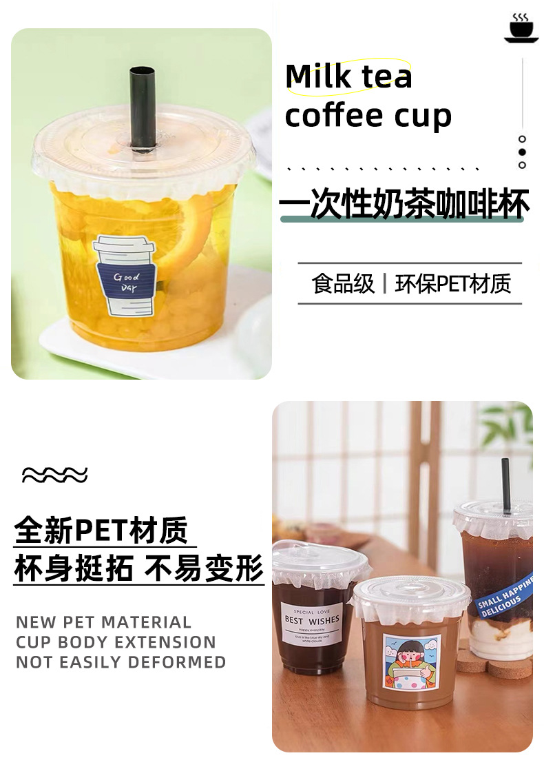 pet冷饮杯子带盖加厚商用透明奶茶杯一次性塑料柠檬茶咖啡杯批发