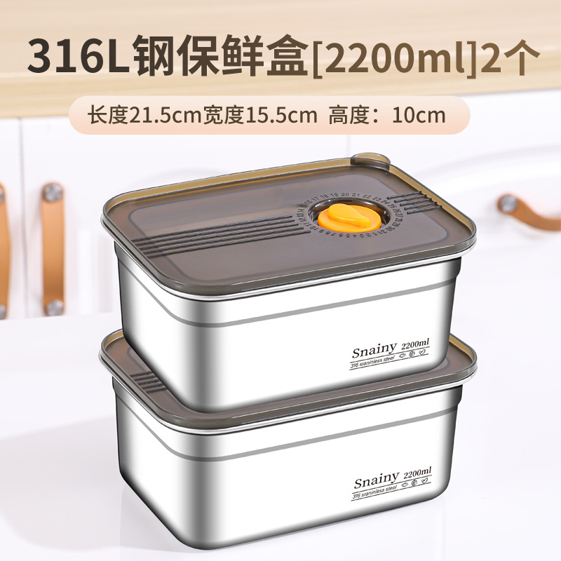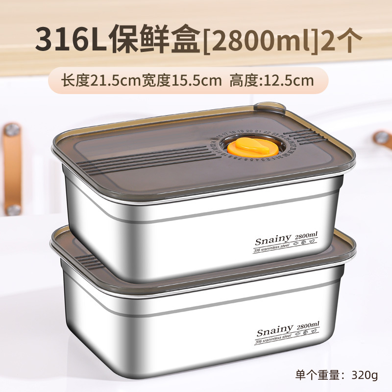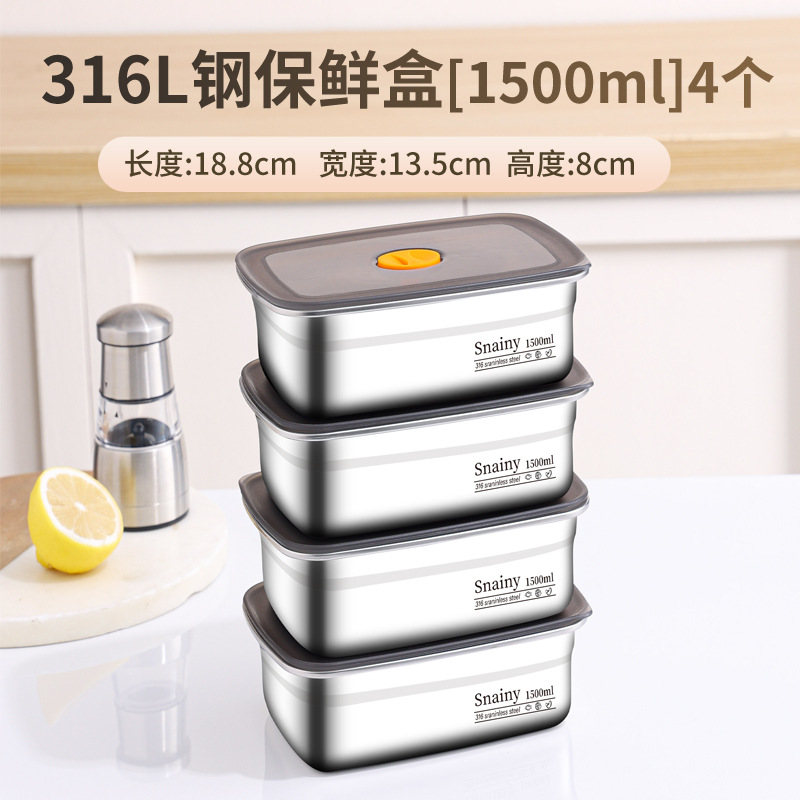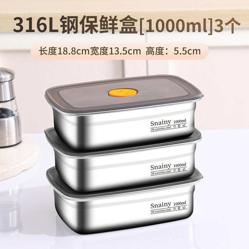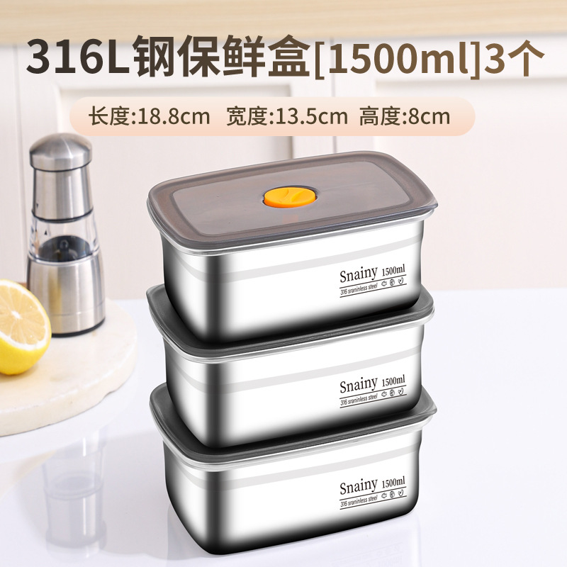 316不锈钢保鲜盒食品级冰箱整理盒收纳盒密封带盖方盒长方形盒子