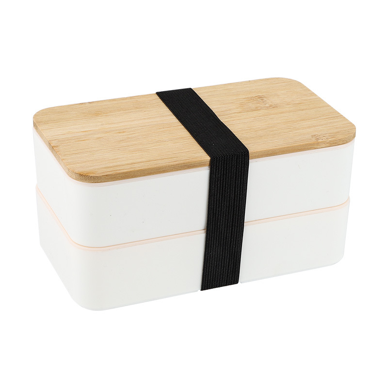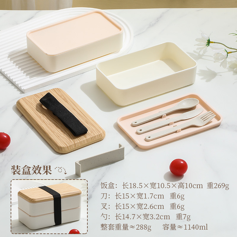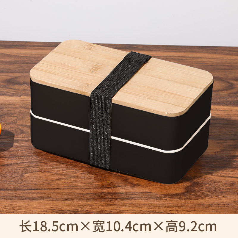 跨境LOGO竹木盖饭盒双层日式竹木便当盒家用分格保鲜盒学生午餐盒