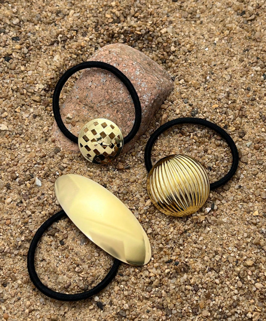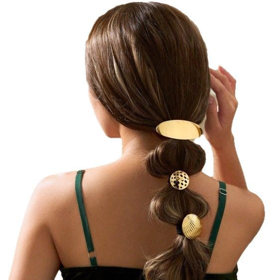 跨境欧美头饰盘发扎马尾发绳圆圈镂空亮面合金皮筋头绳