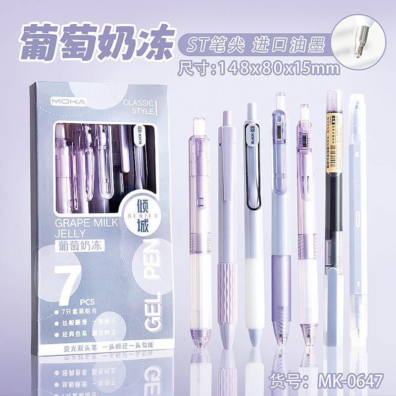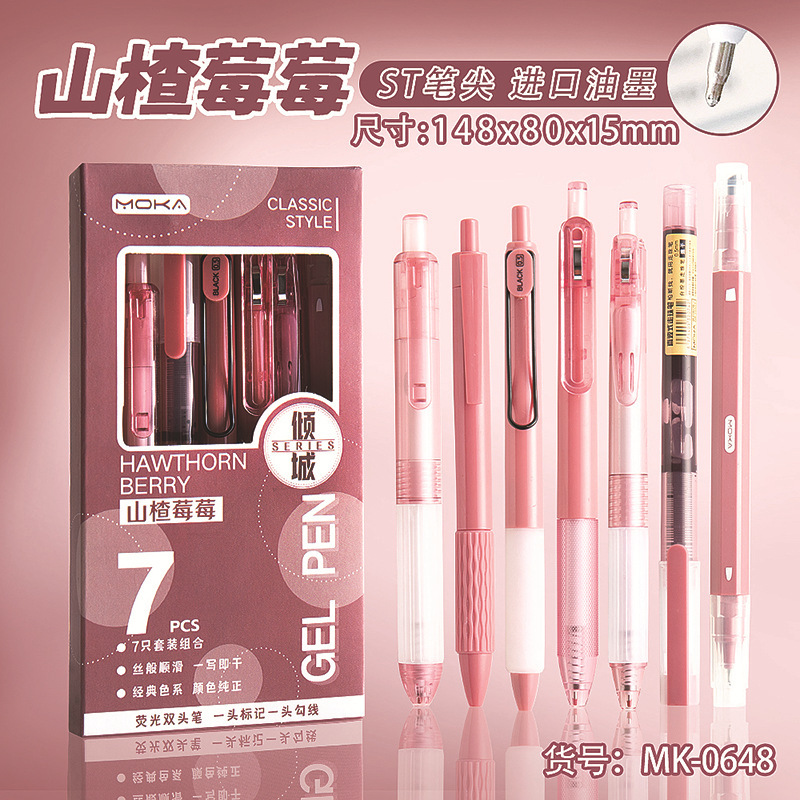 刷题笔ins风高颜值学生速干油墨黑色圆珠笔ST按动中性笔套装批发