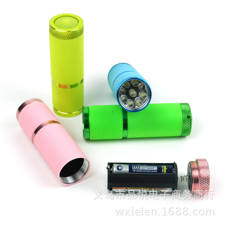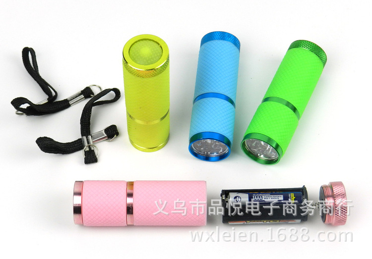 迷你强光手电筒便携迷你防水9LED日用小手电 外皮带荧光