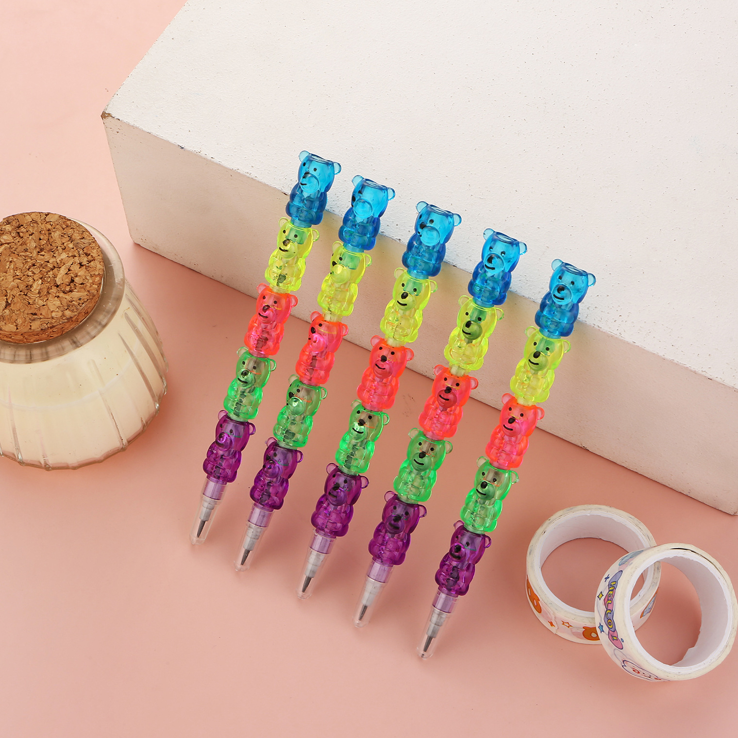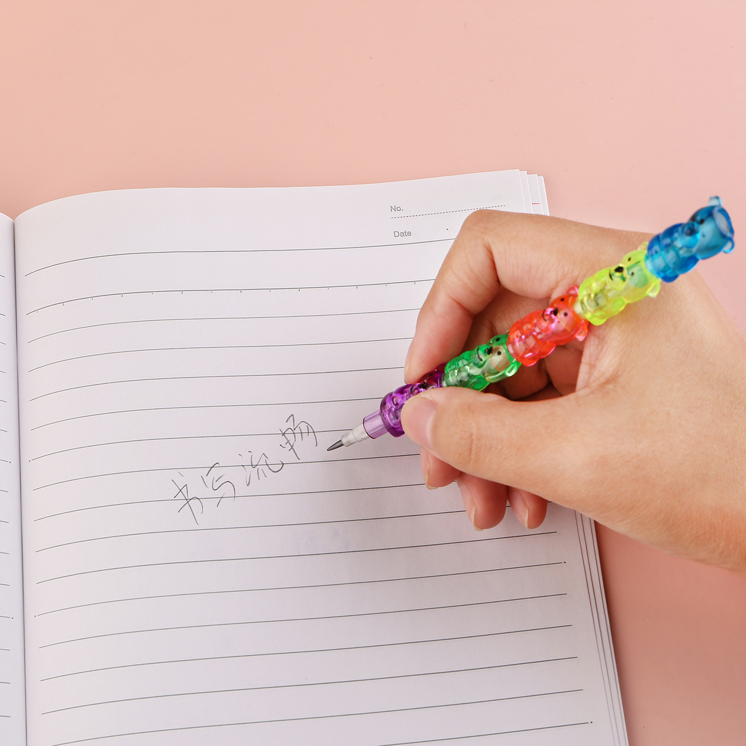 卡通小熊5节积木免削铅笔节节笔 塑料子弹办公创意可拆卸下蛋笔