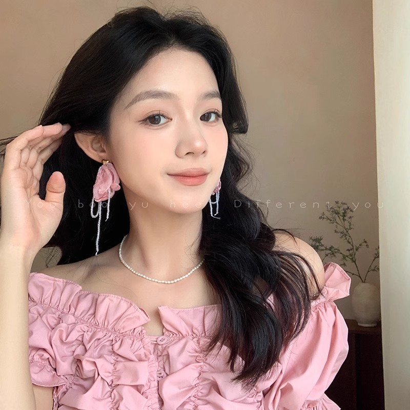 饰品2025年甜美森系珍珠耳钉耳饰海边度假风薄荷曼波花朵流苏耳环