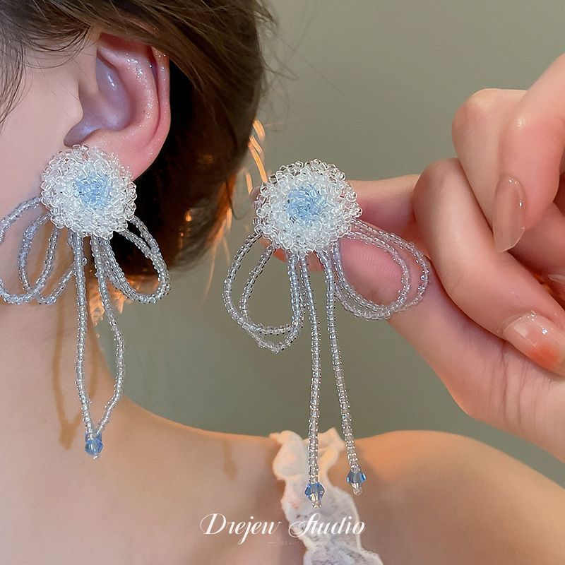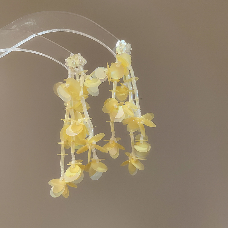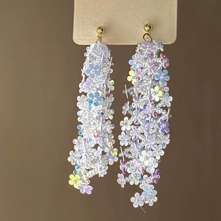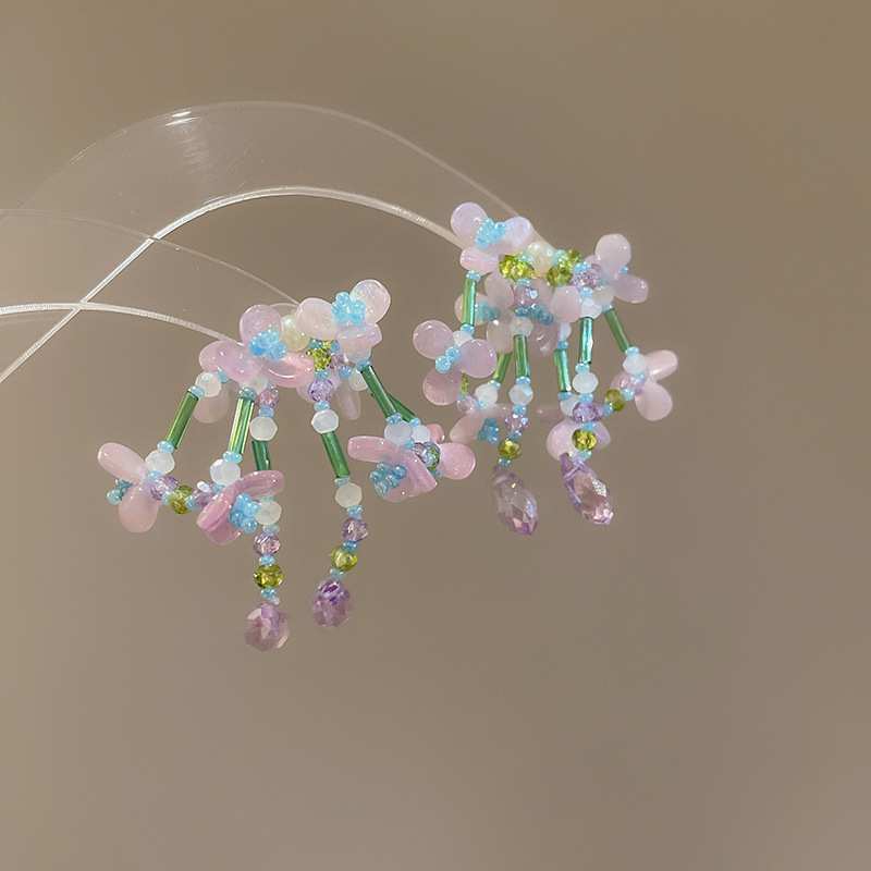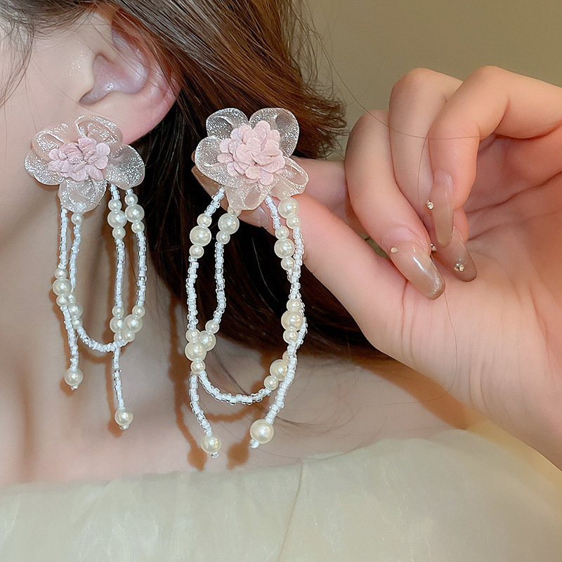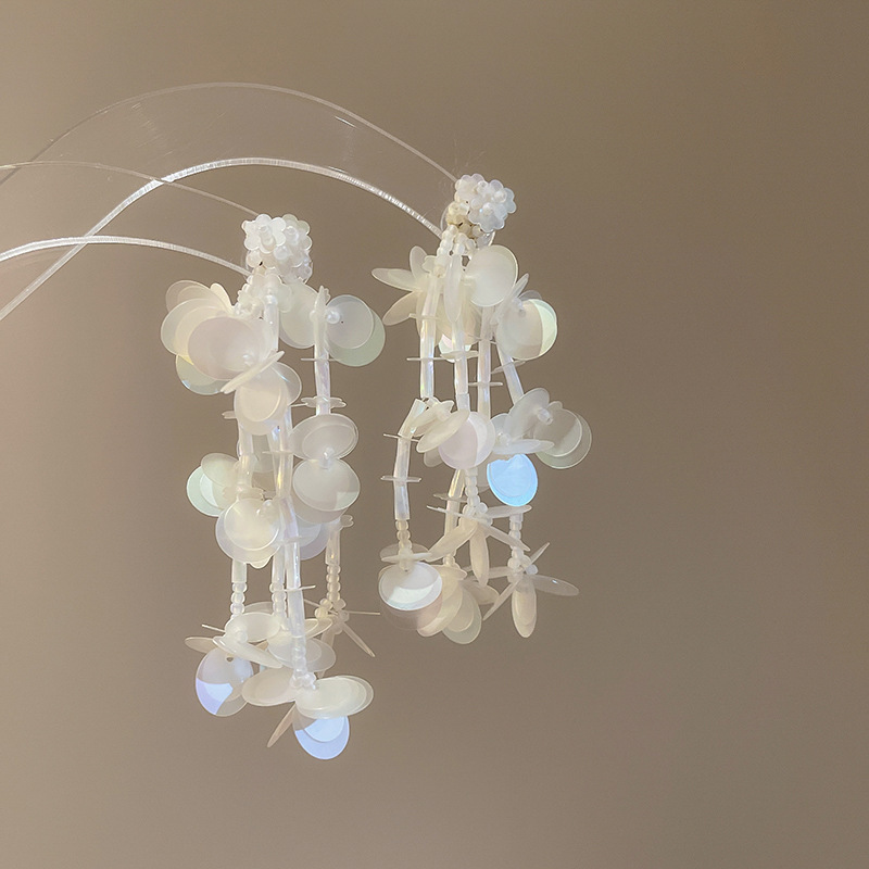 饰品气质甜美耳坠小清新百搭耳饰高级感银针米珠亮片花朵流苏耳环