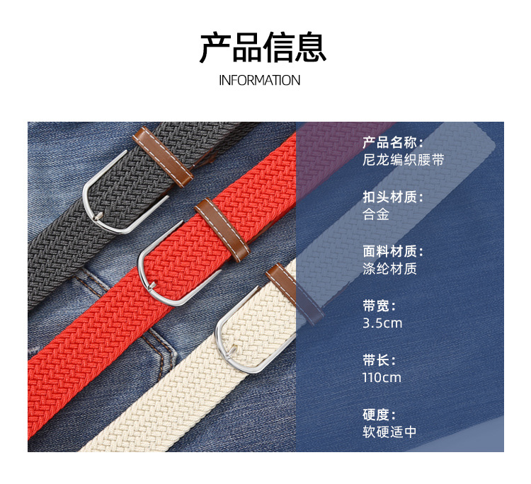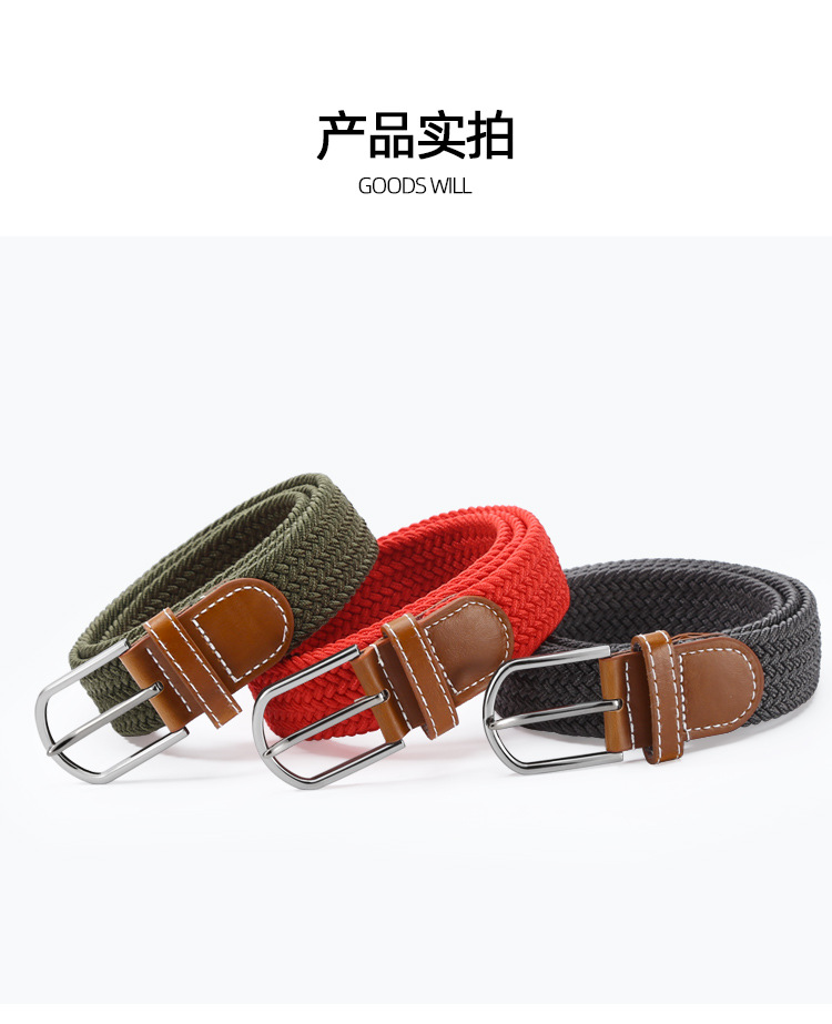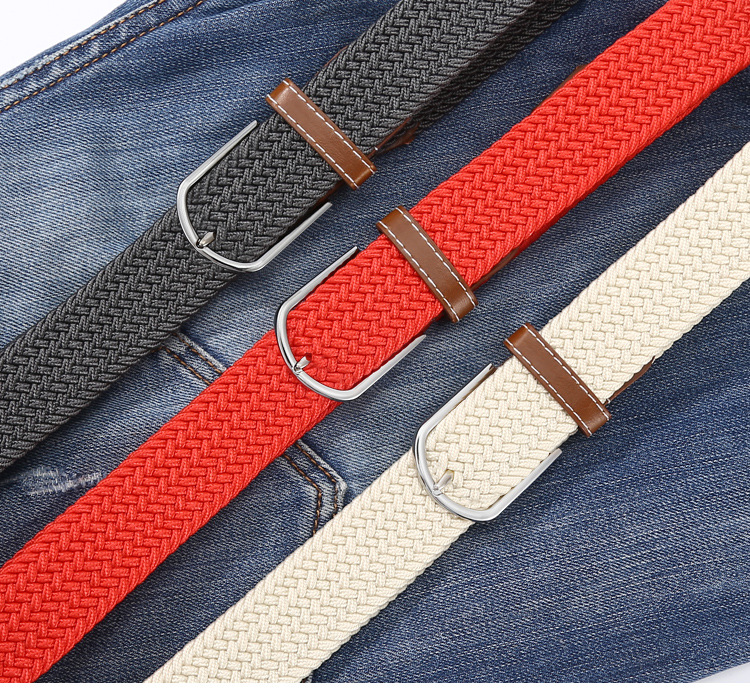 爆款休闲女士皮带时尚多色百搭松紧针扣皮带男士弹力编织腰带批发