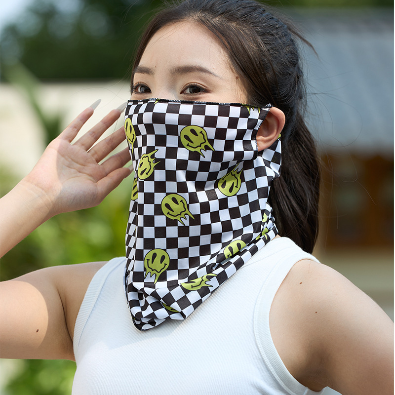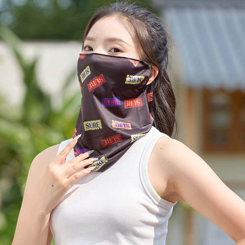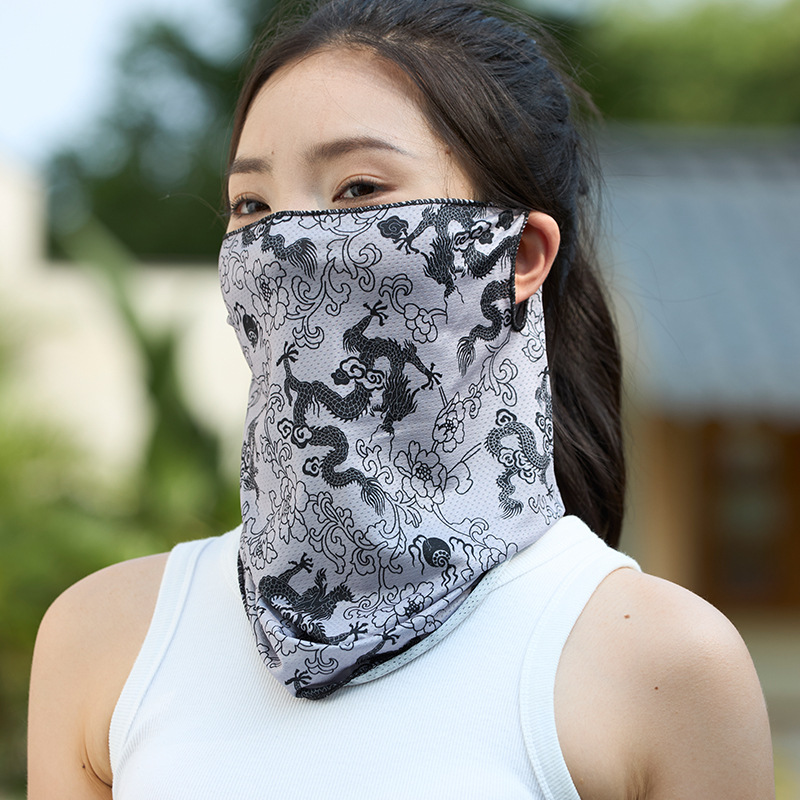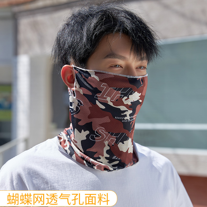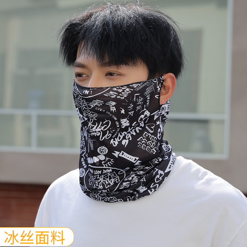 夏季冰丝防晒面罩男女户外骑行挂耳遮阳护颈防尘面罩薄款透气口罩