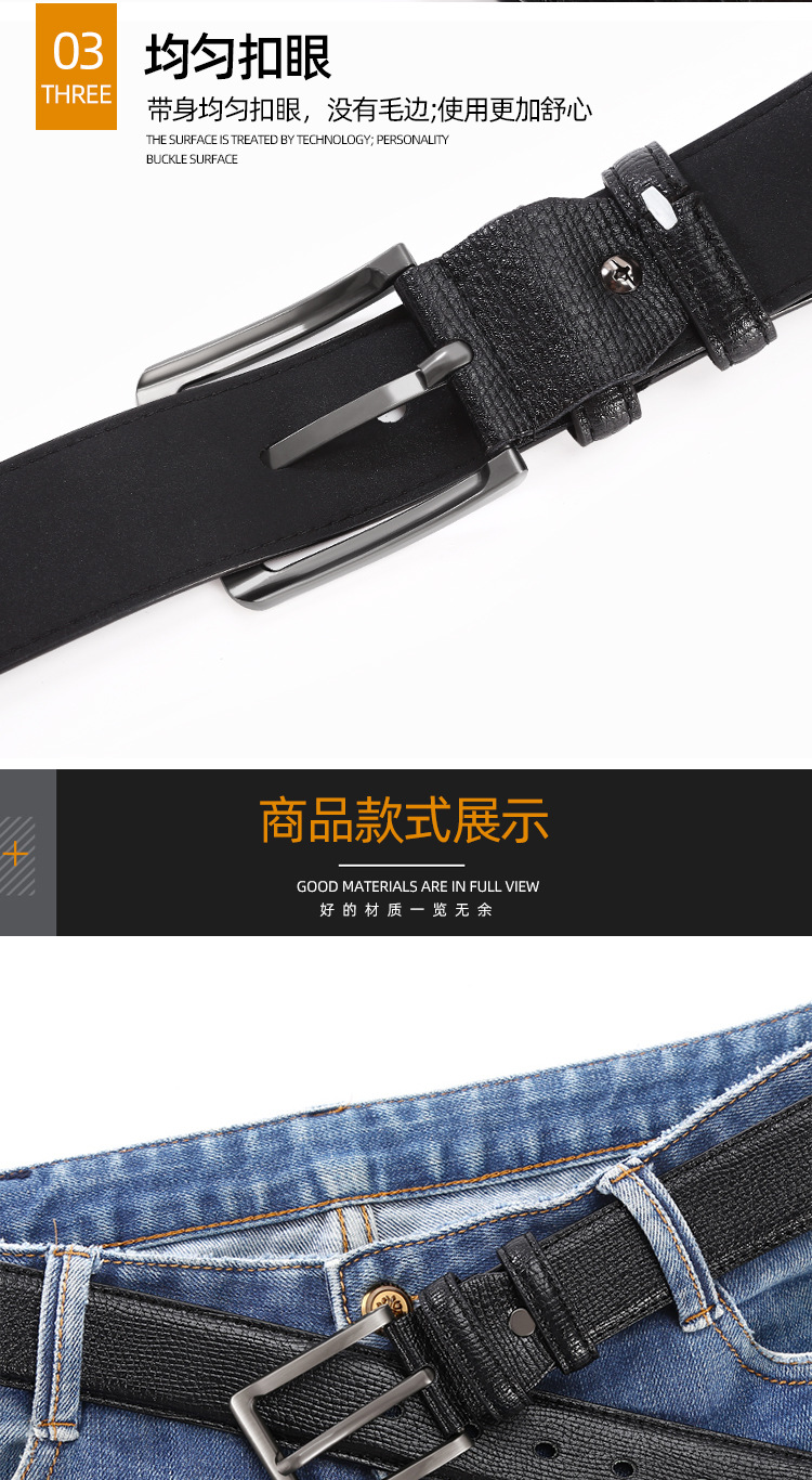 新款跨境男士针扣打孔皮带商务休闲中青年牛仔裤腰带源头厂家批发