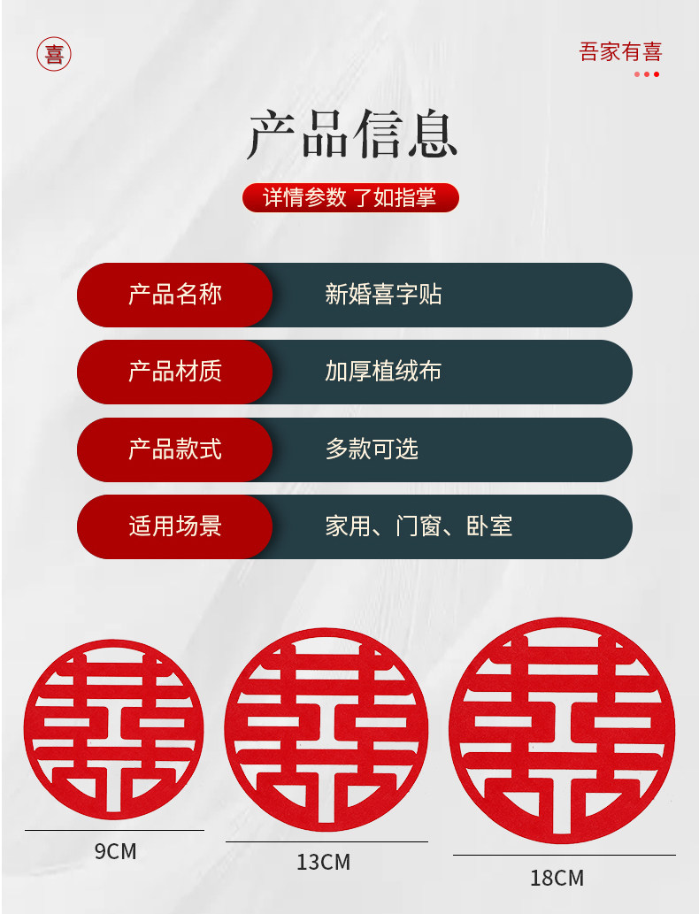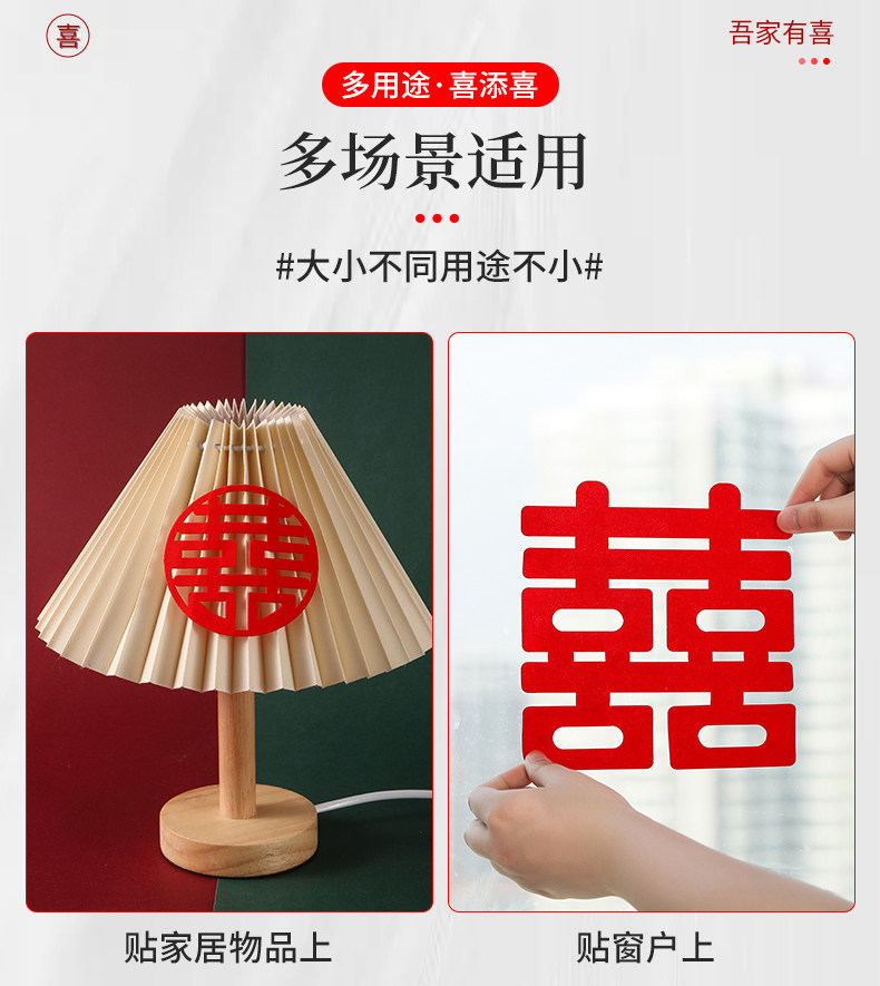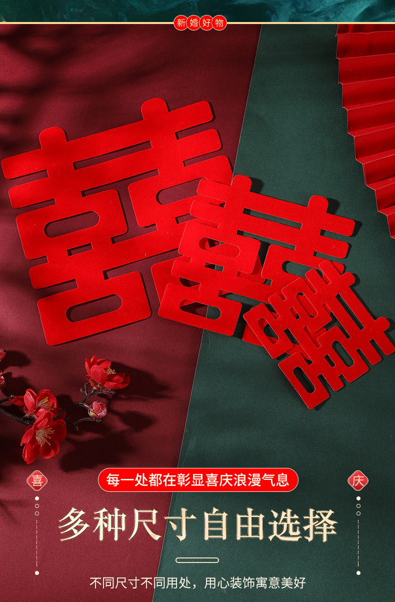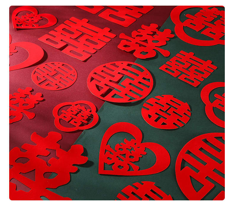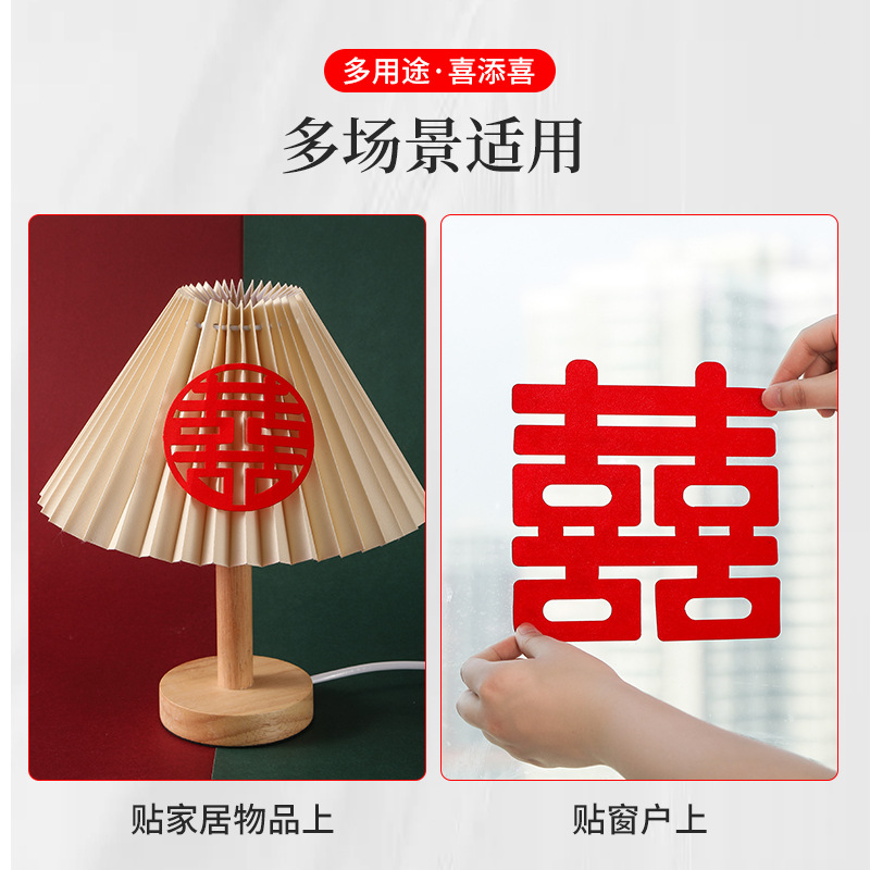 婚房喜字结婚专用贴纸不干胶自粘植绒结婚婚礼布置门窗花用品大全
