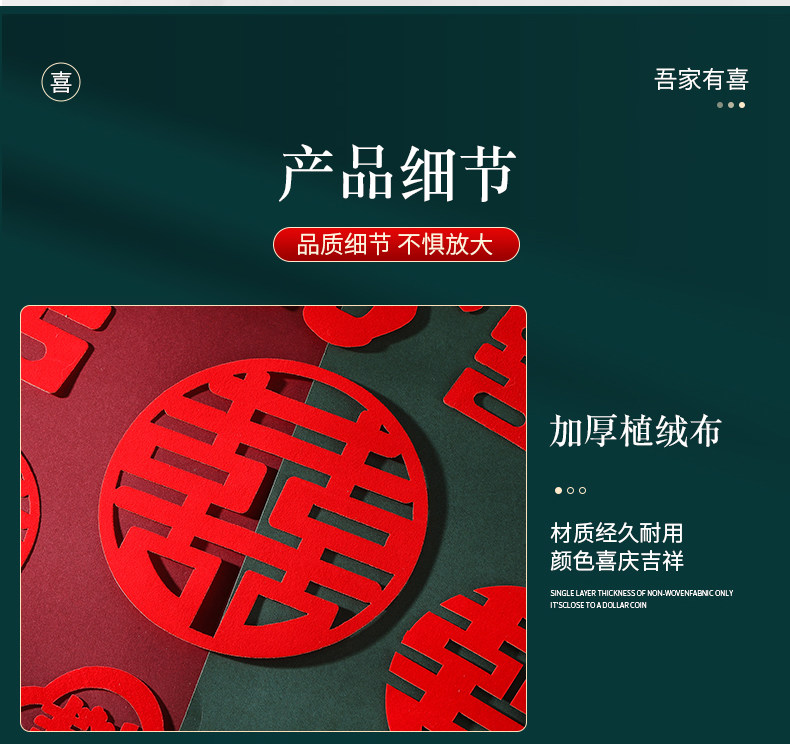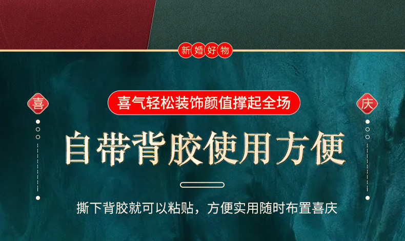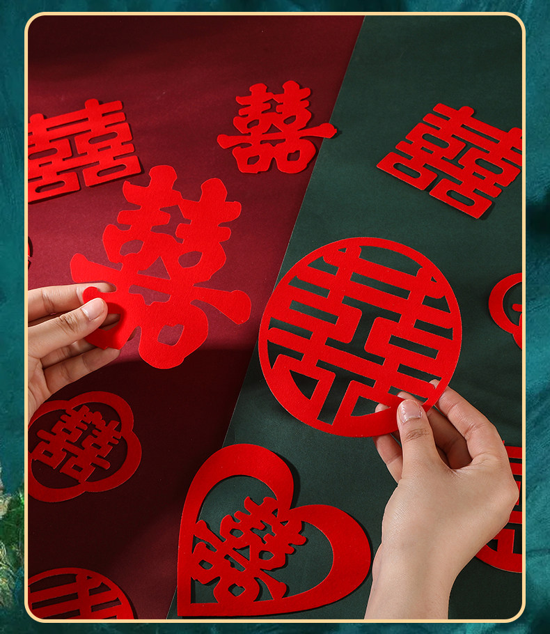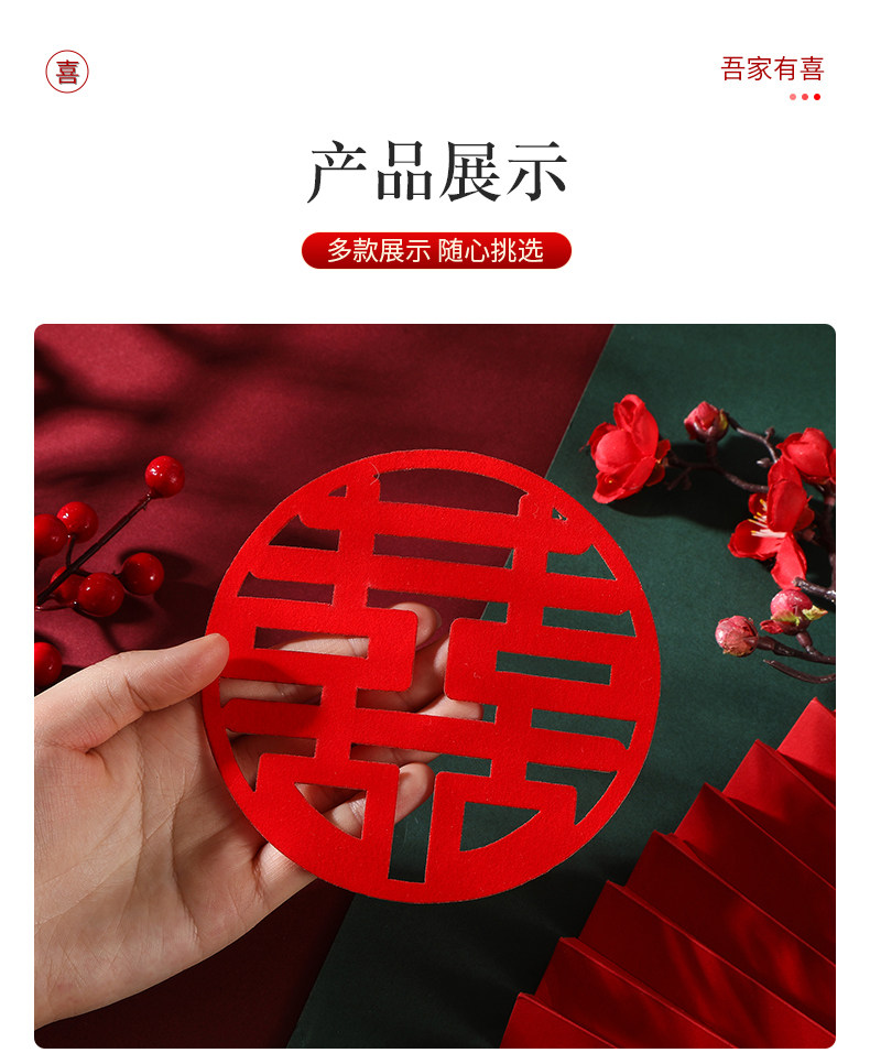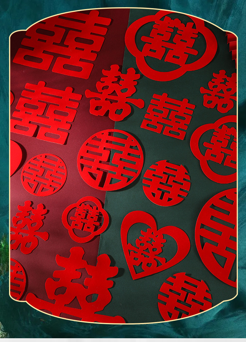 婚房喜字结婚专用贴纸不干胶自粘植绒结婚婚礼布置门窗花用品大全