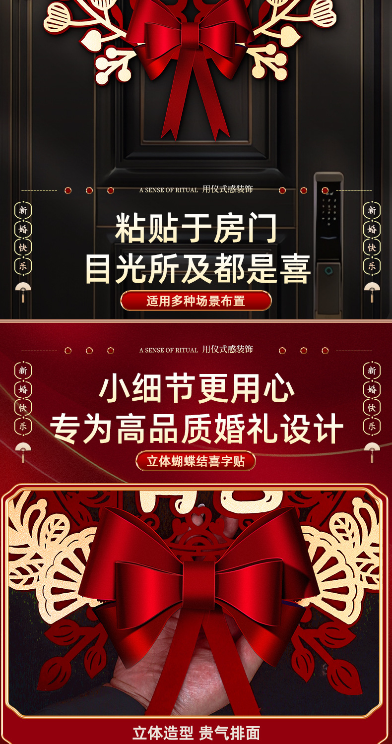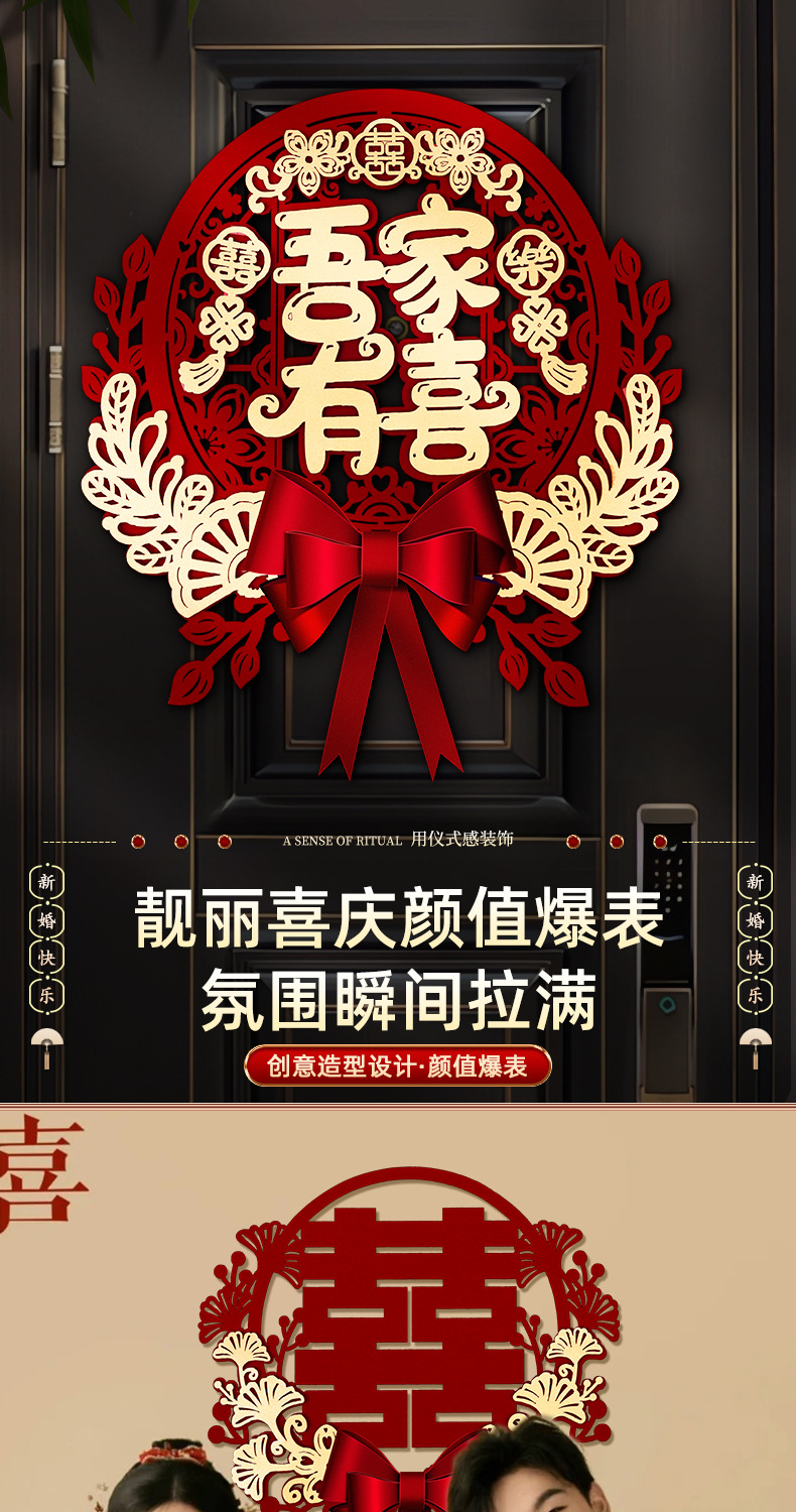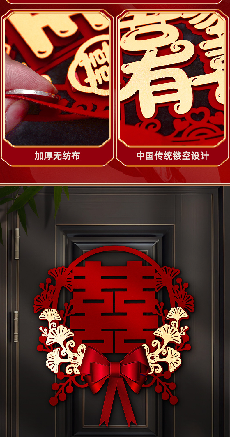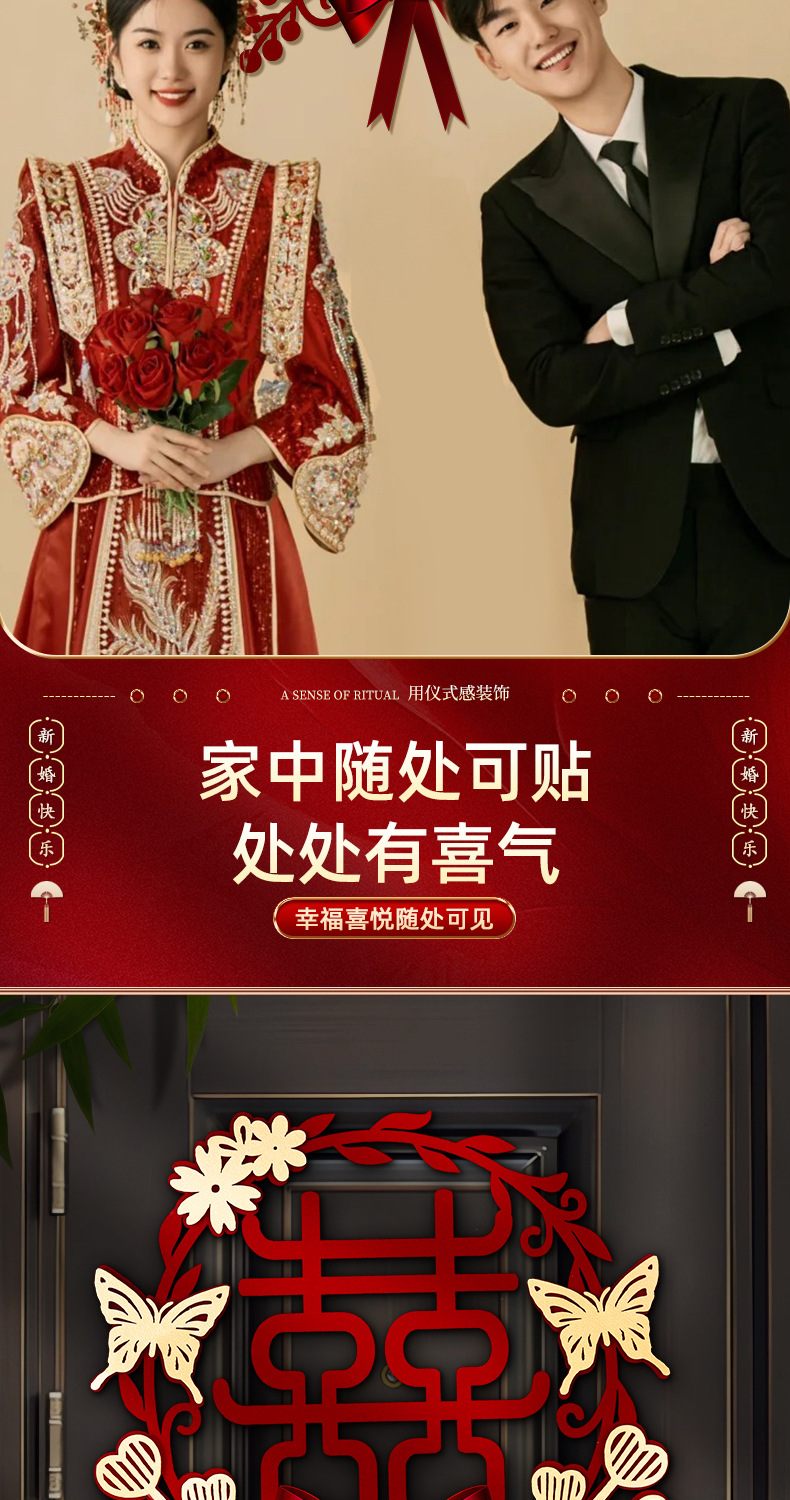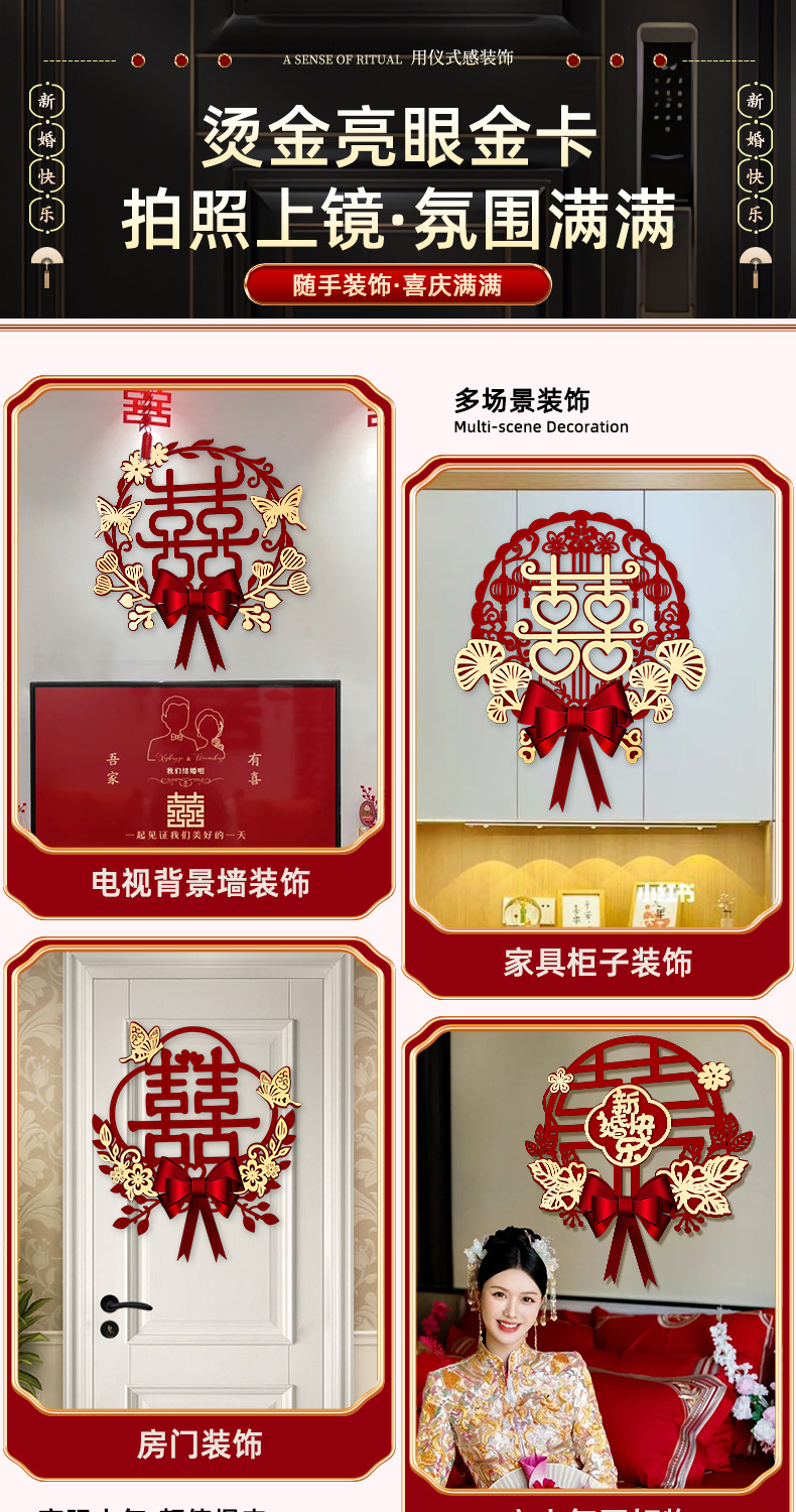 结婚婚庆用品喜字贴纸结婚礼专用婚房布置套装卧室门装饰囍字门贴