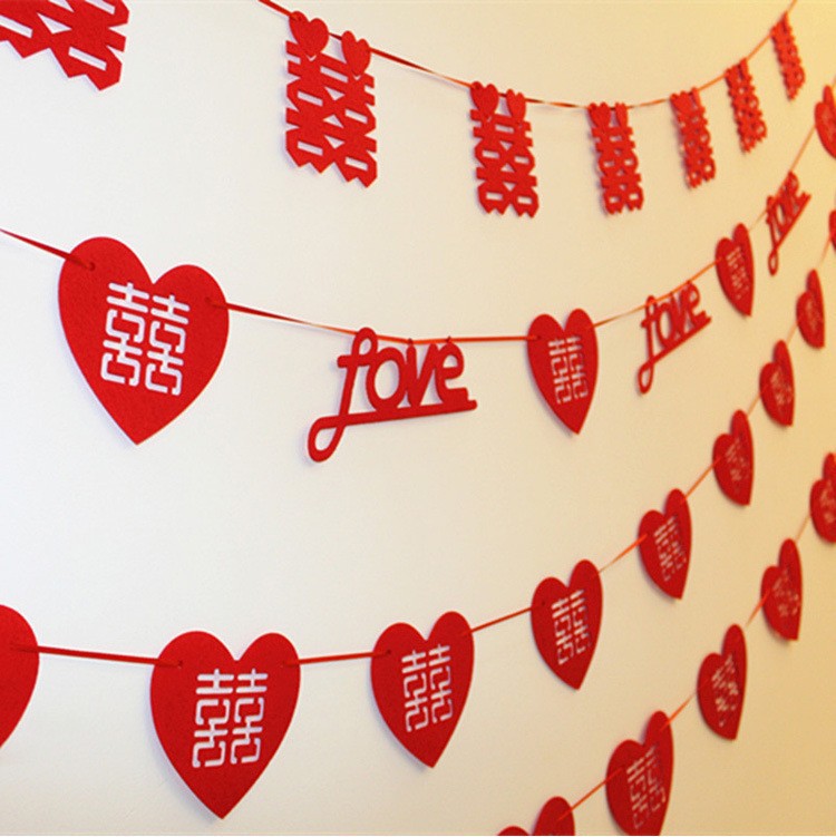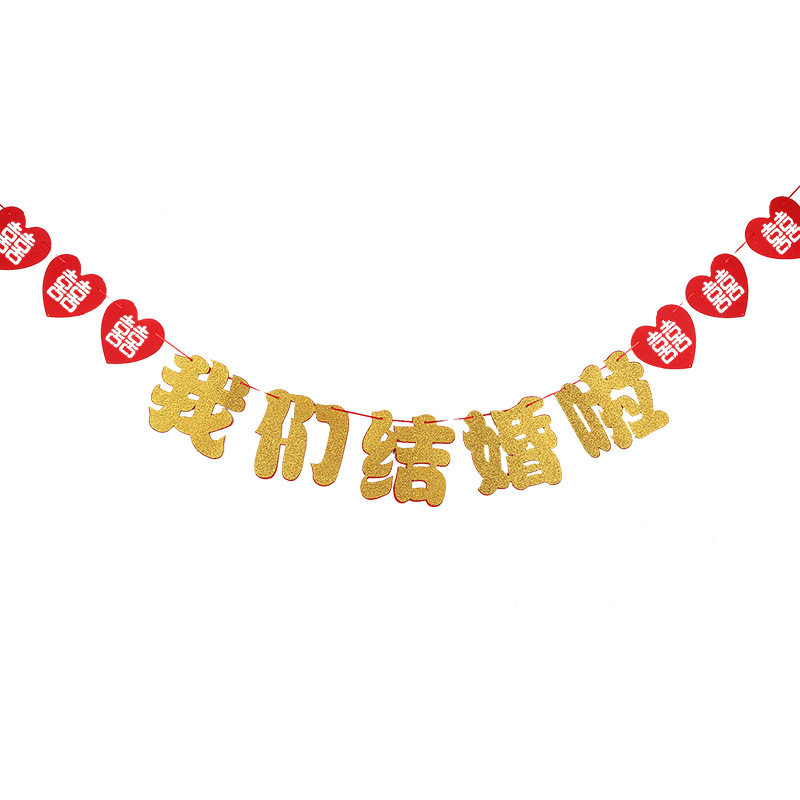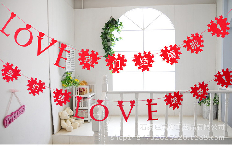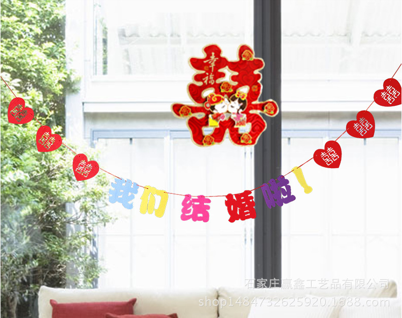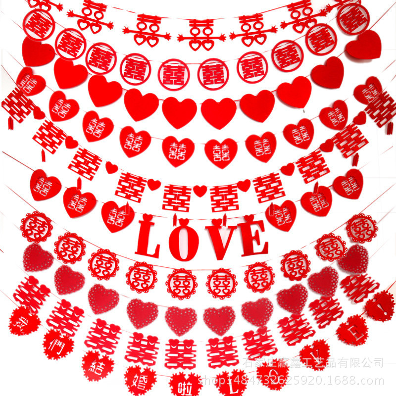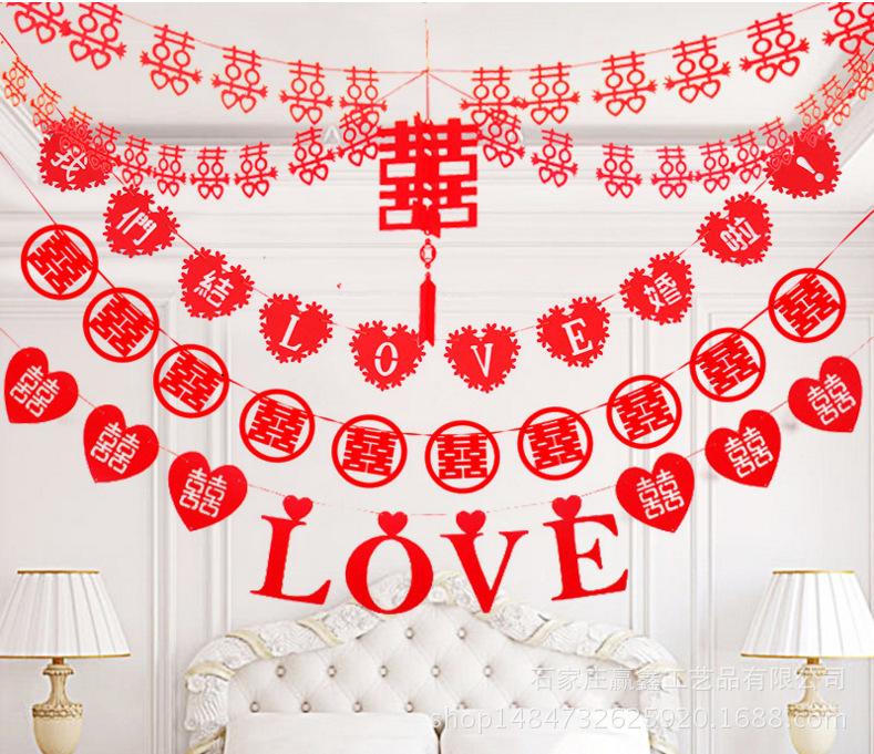 婚房装饰拉旗结婚用品新房布置新婚快乐男方女方卧室喜字婚礼拉花