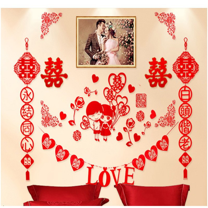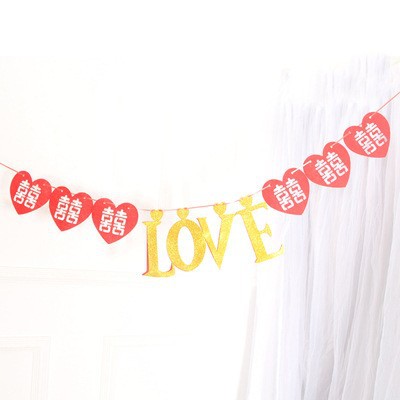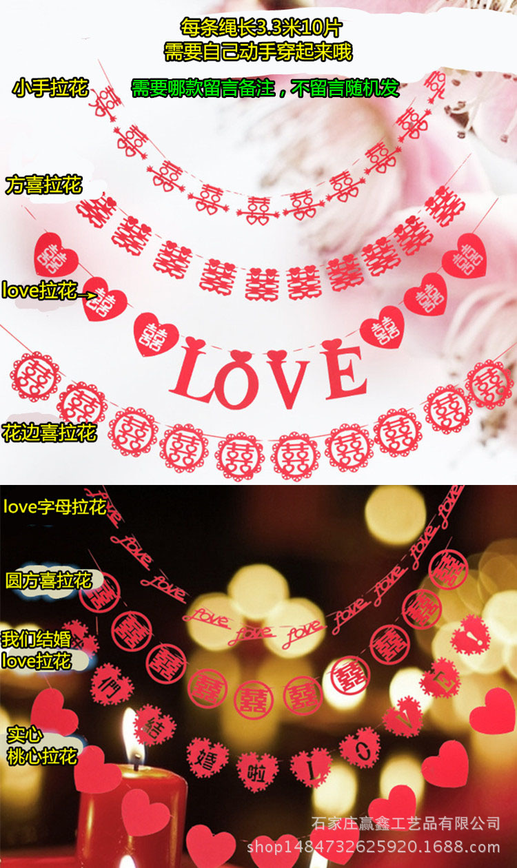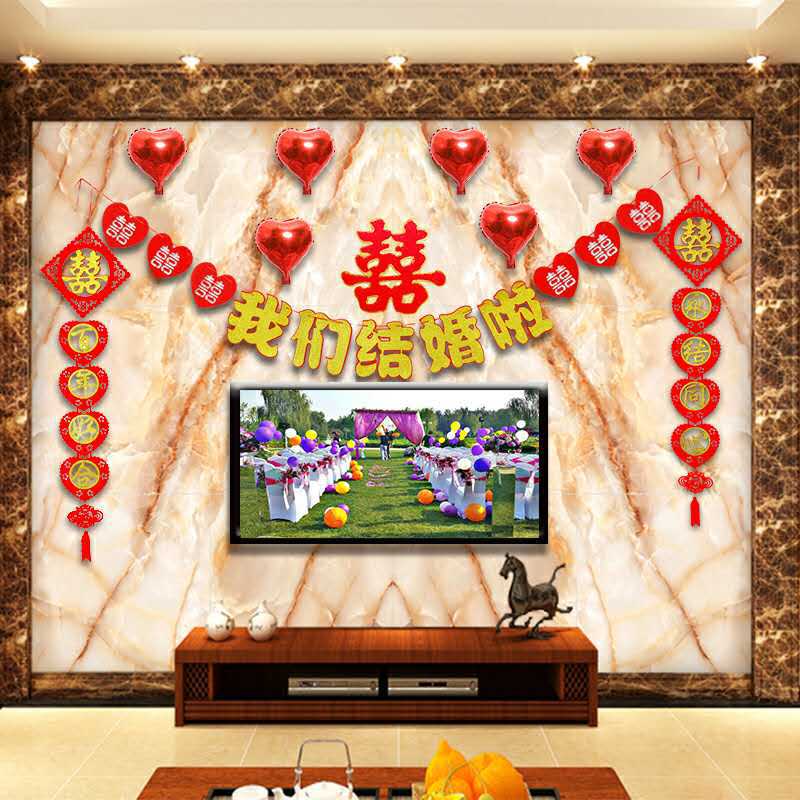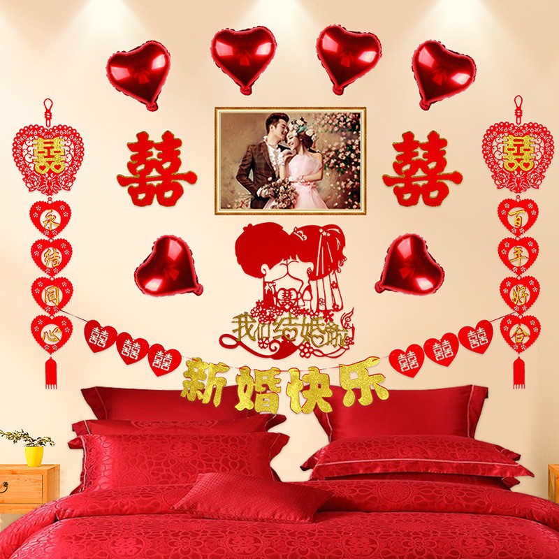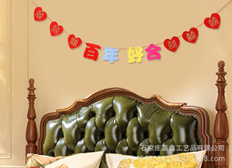 婚房装饰拉旗结婚用品新房布置新婚快乐男方女方卧室喜字婚礼拉花