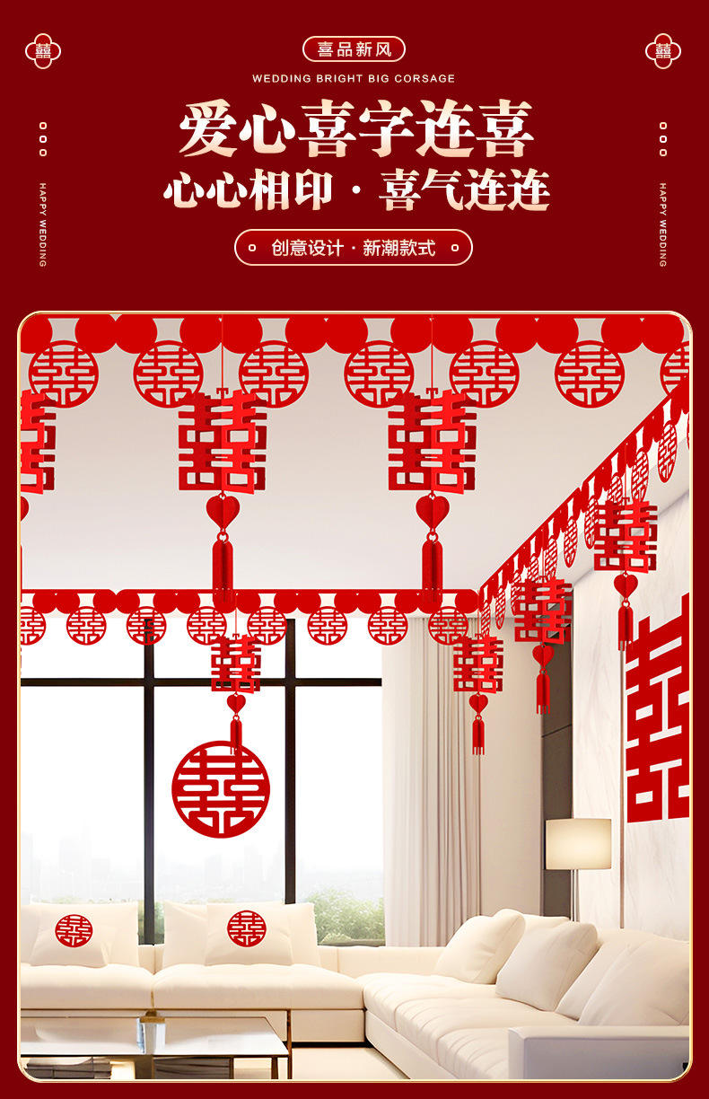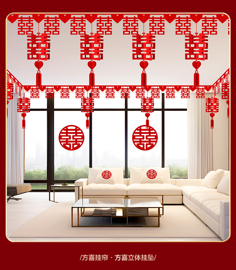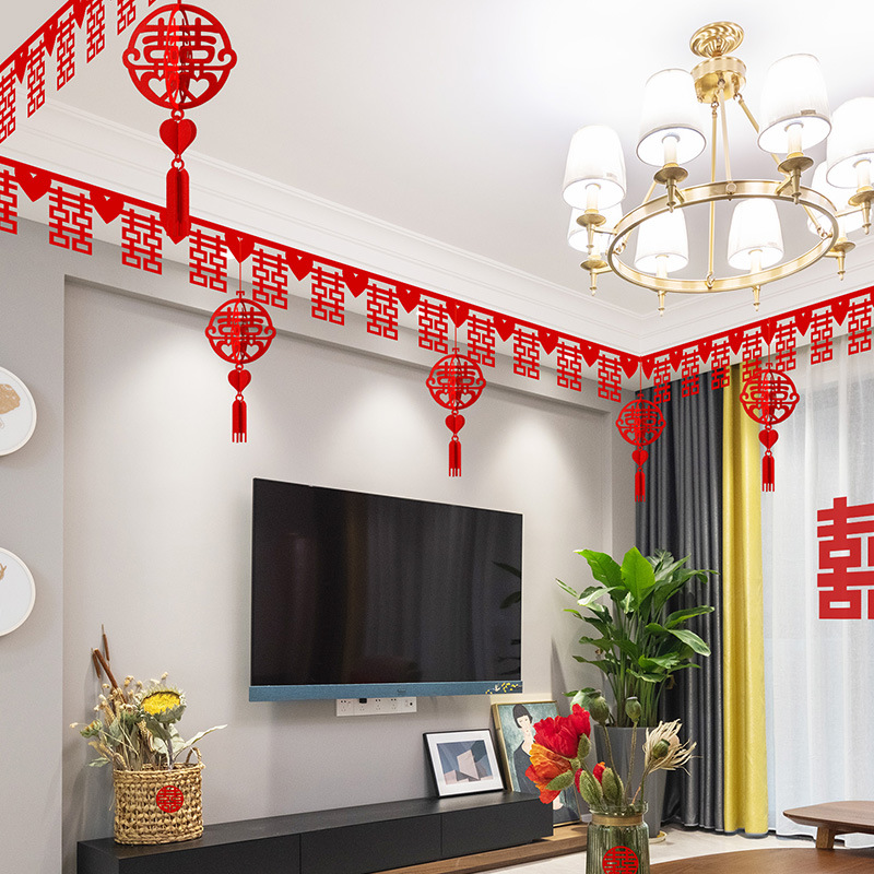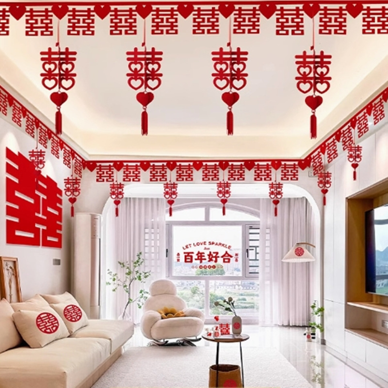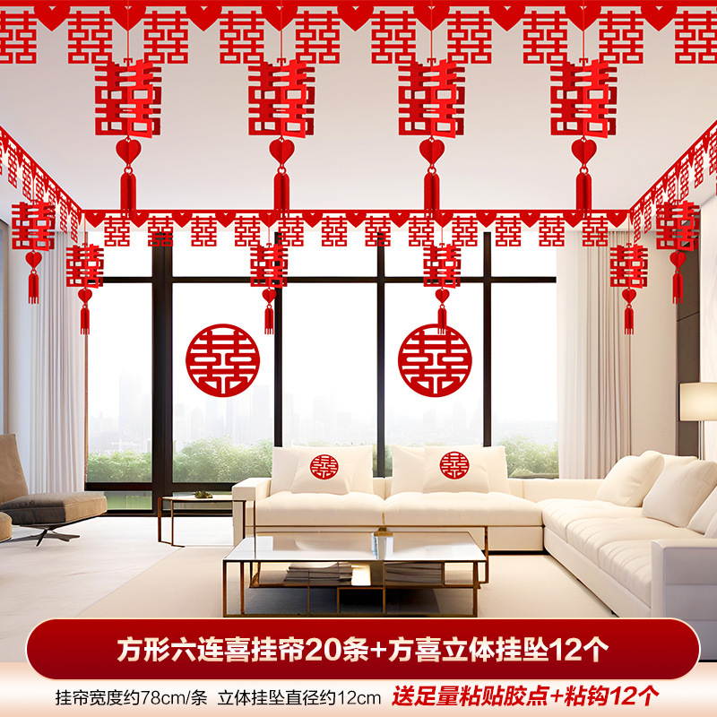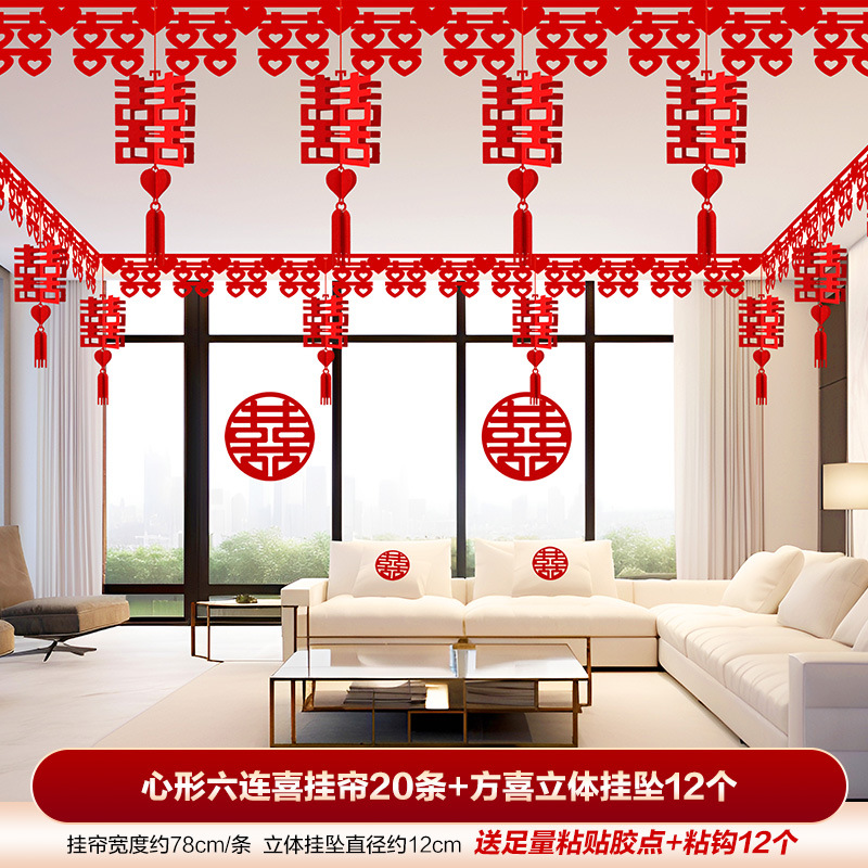 结婚用品大全客厅装饰婚房布置套装男方婚礼喜字拉花房间吊顶全套