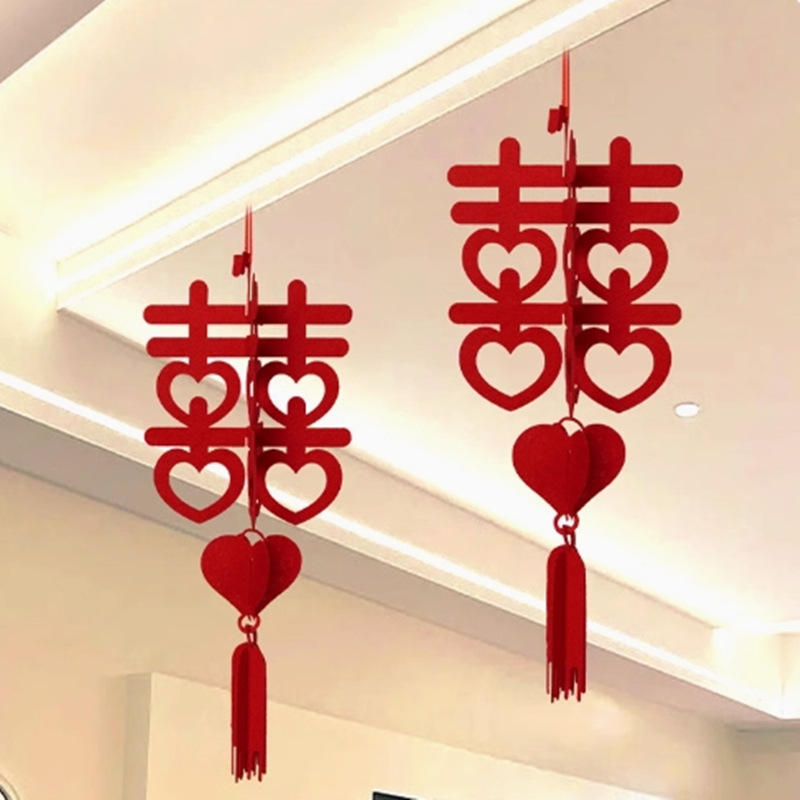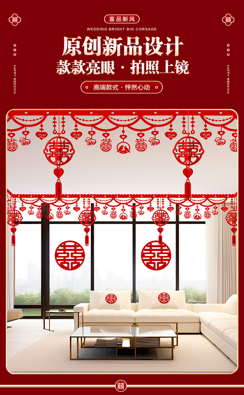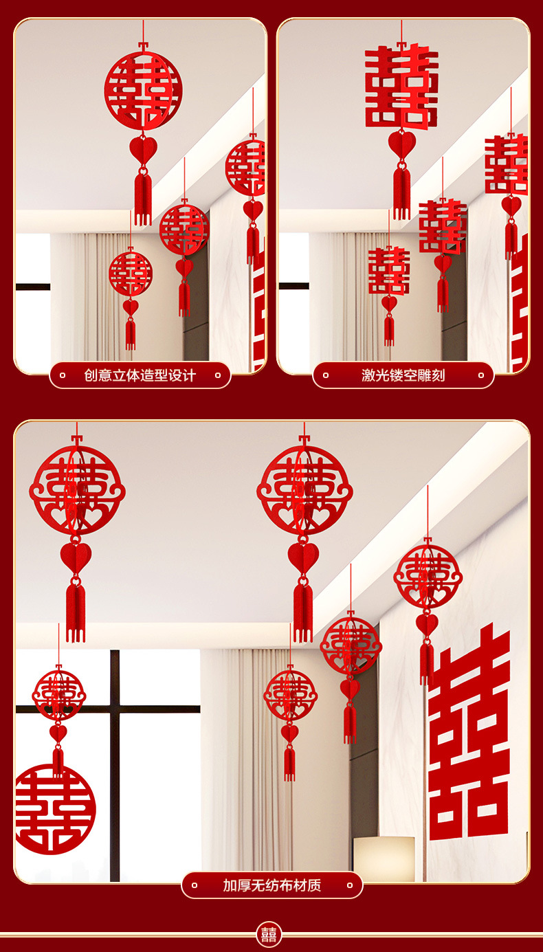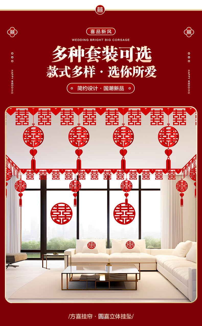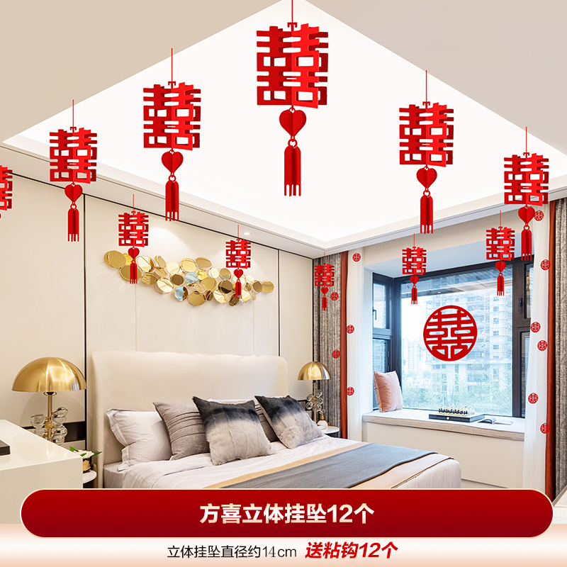 结婚用品大全客厅装饰婚房布置套装男方婚礼喜字拉花房间吊顶全套