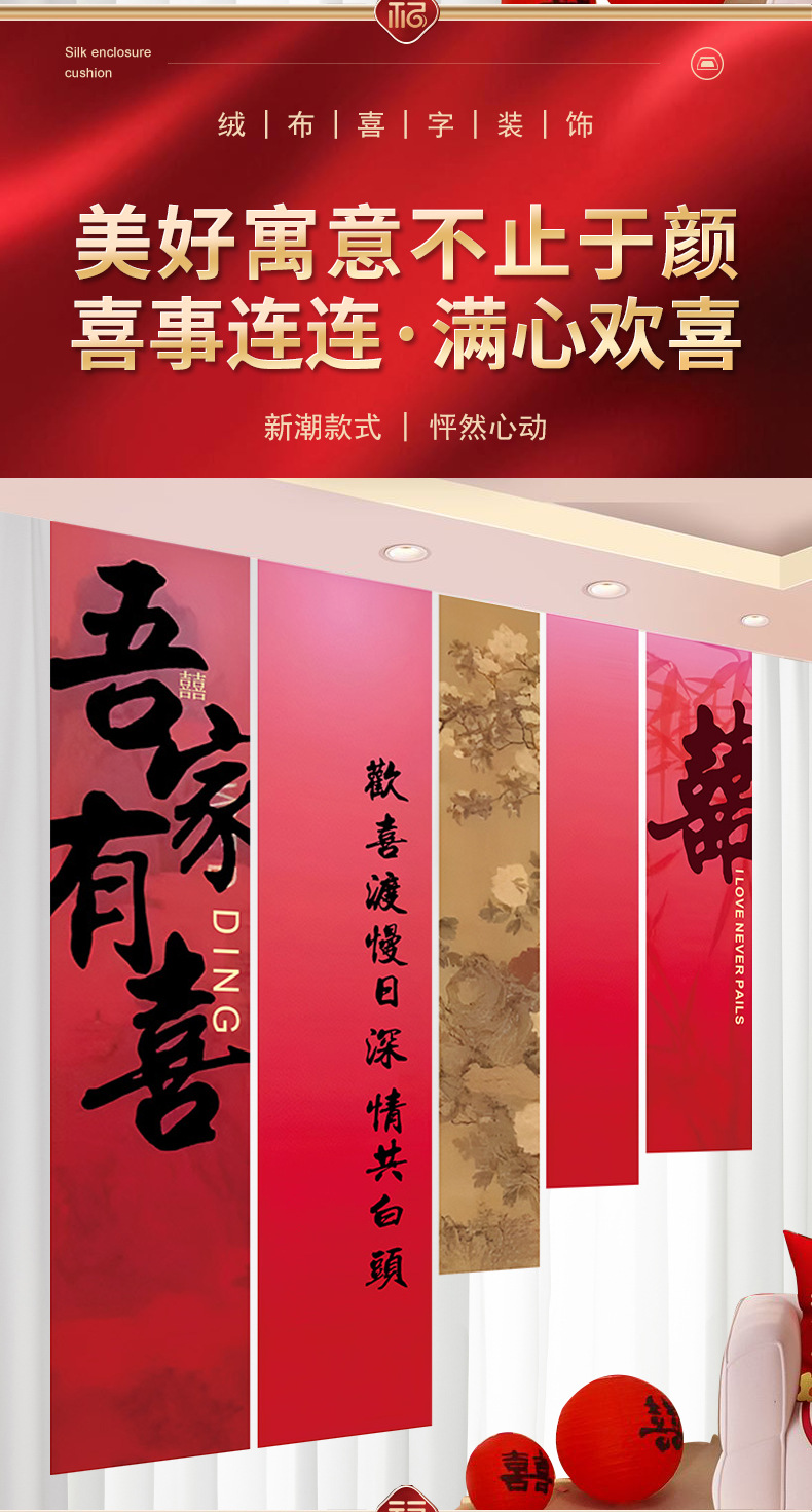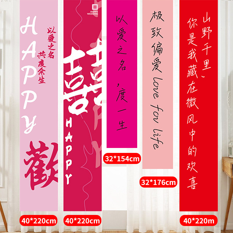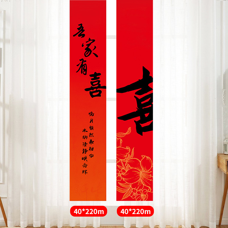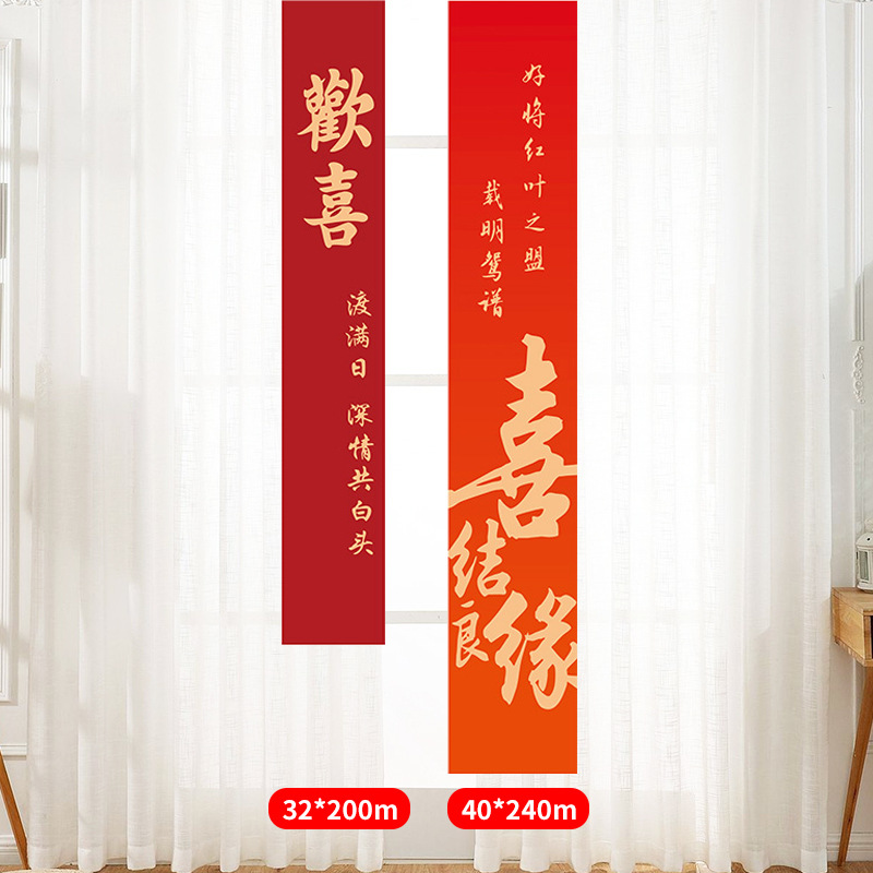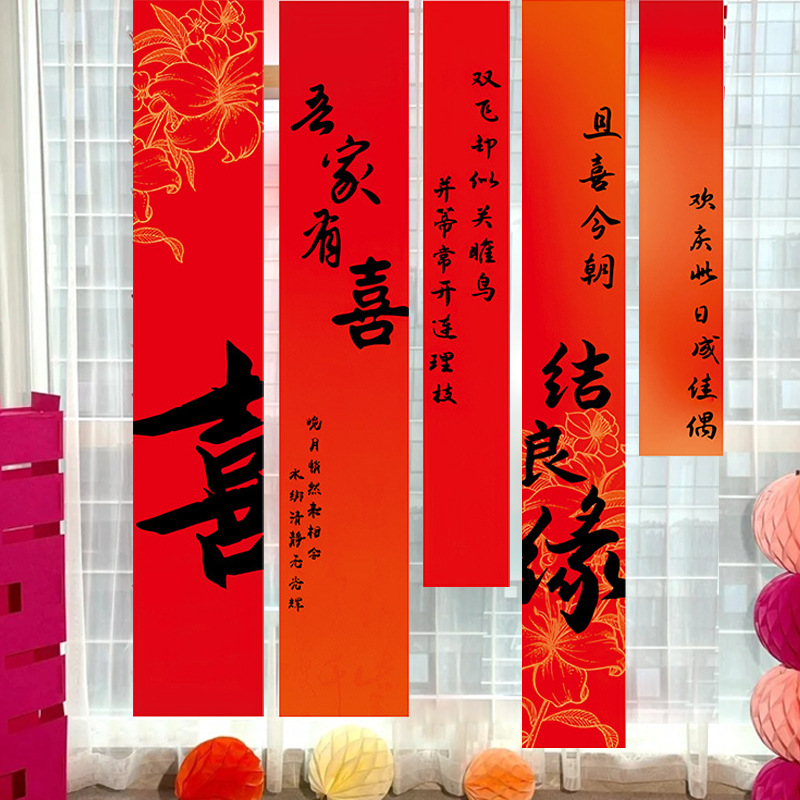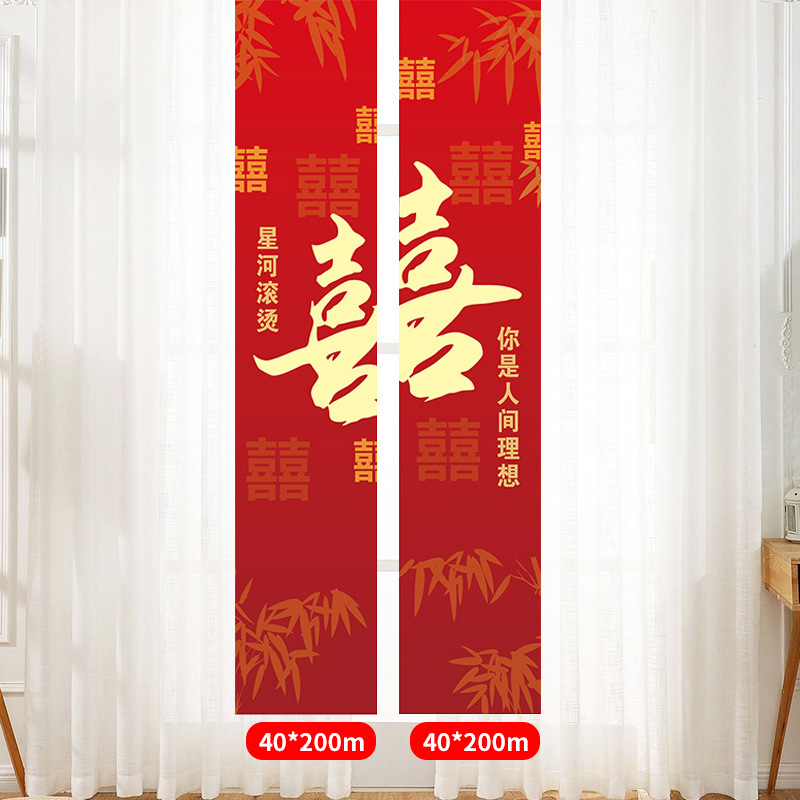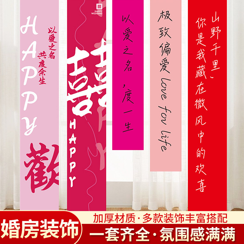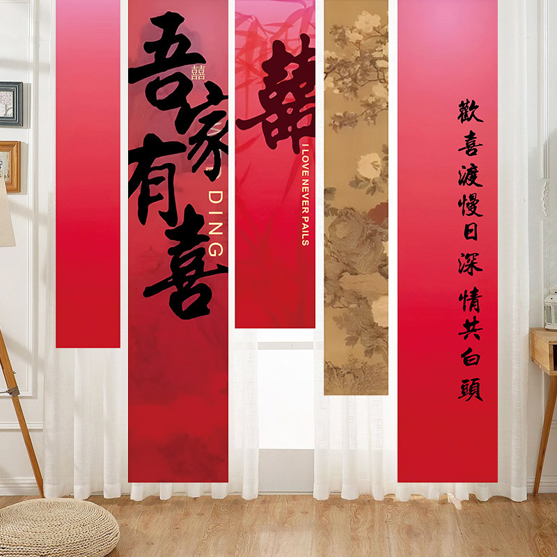 结婚条幅婚礼书法挂布女方婚房装饰布置用品套装拉花窗帘背景墙喜