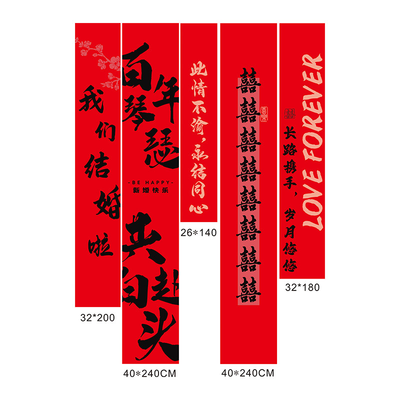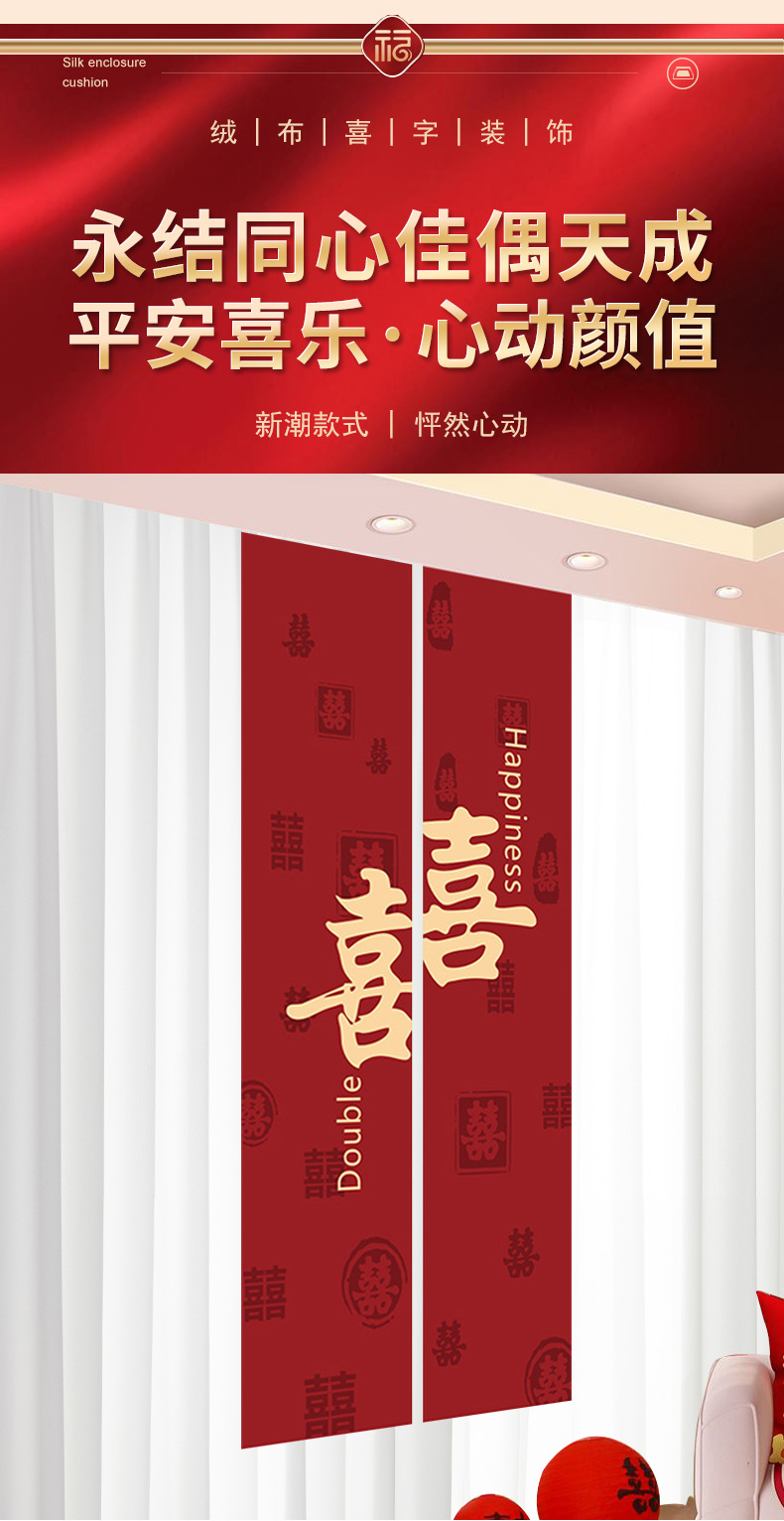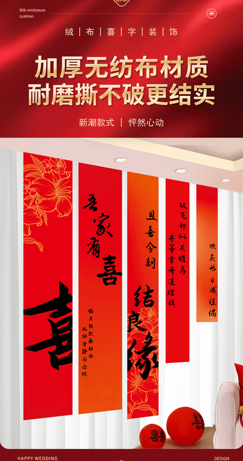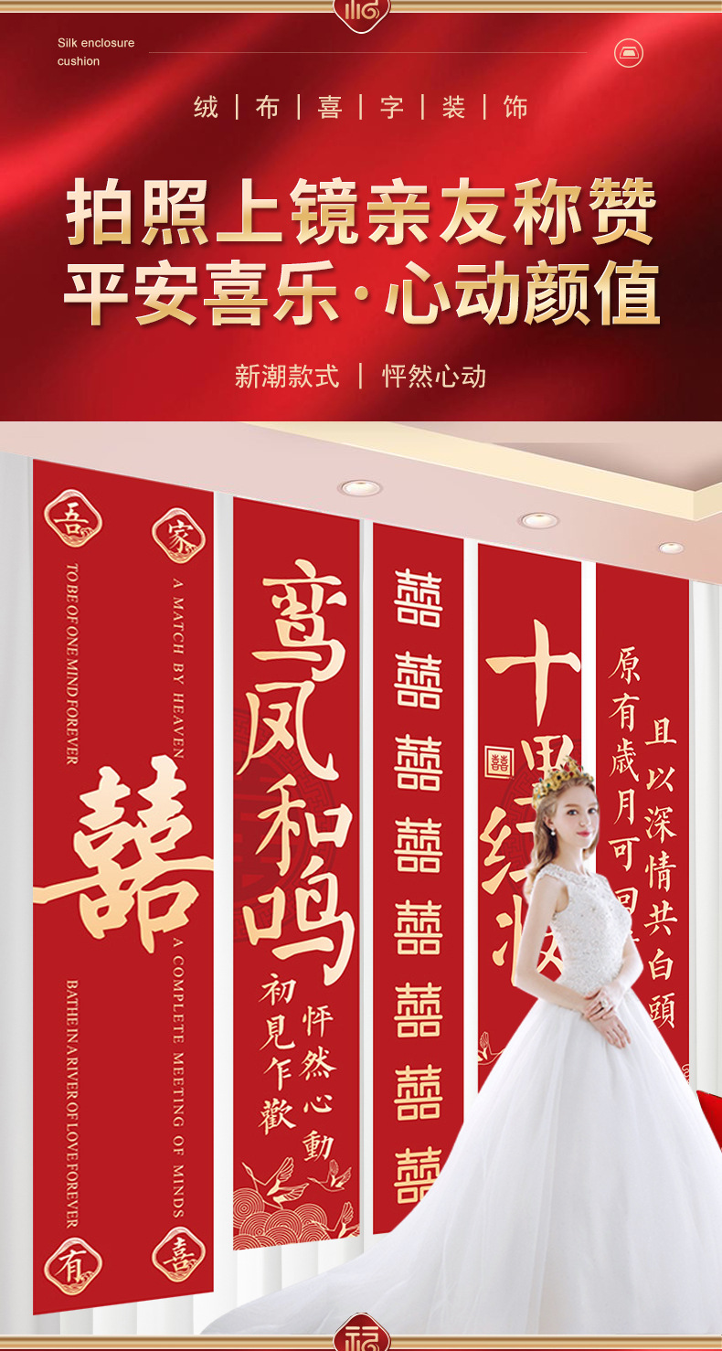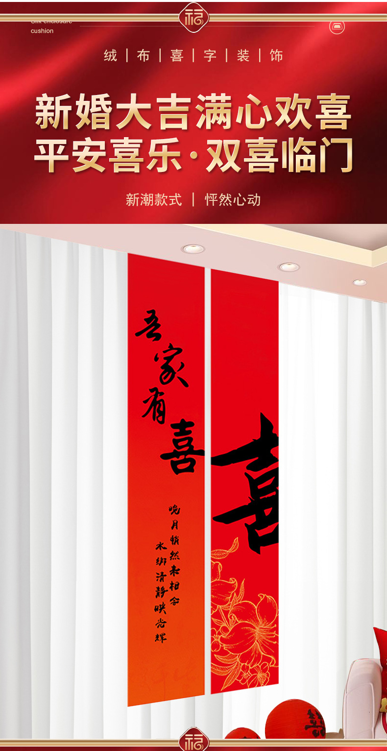 结婚条幅婚礼书法挂布女方婚房装饰布置用品套装拉花窗帘背景墙喜