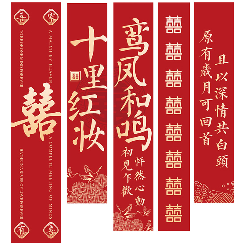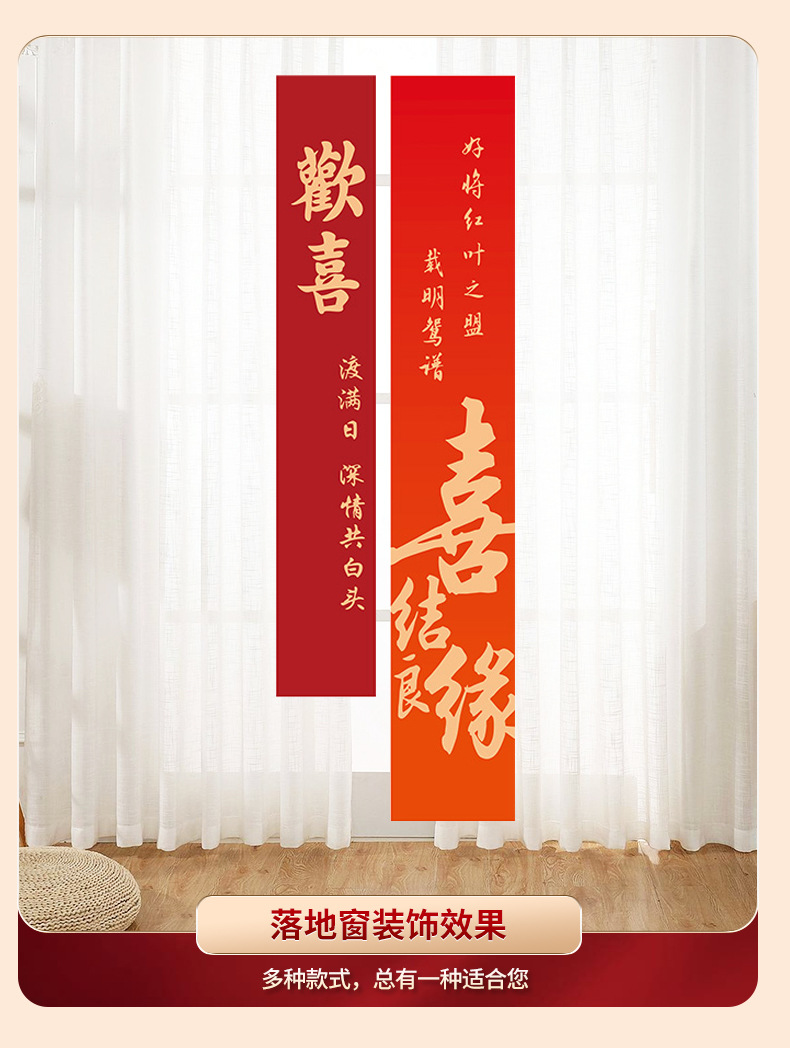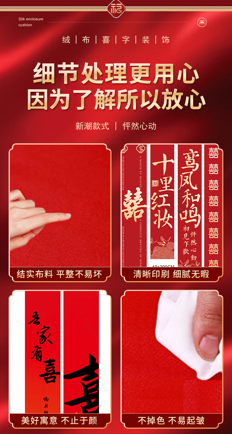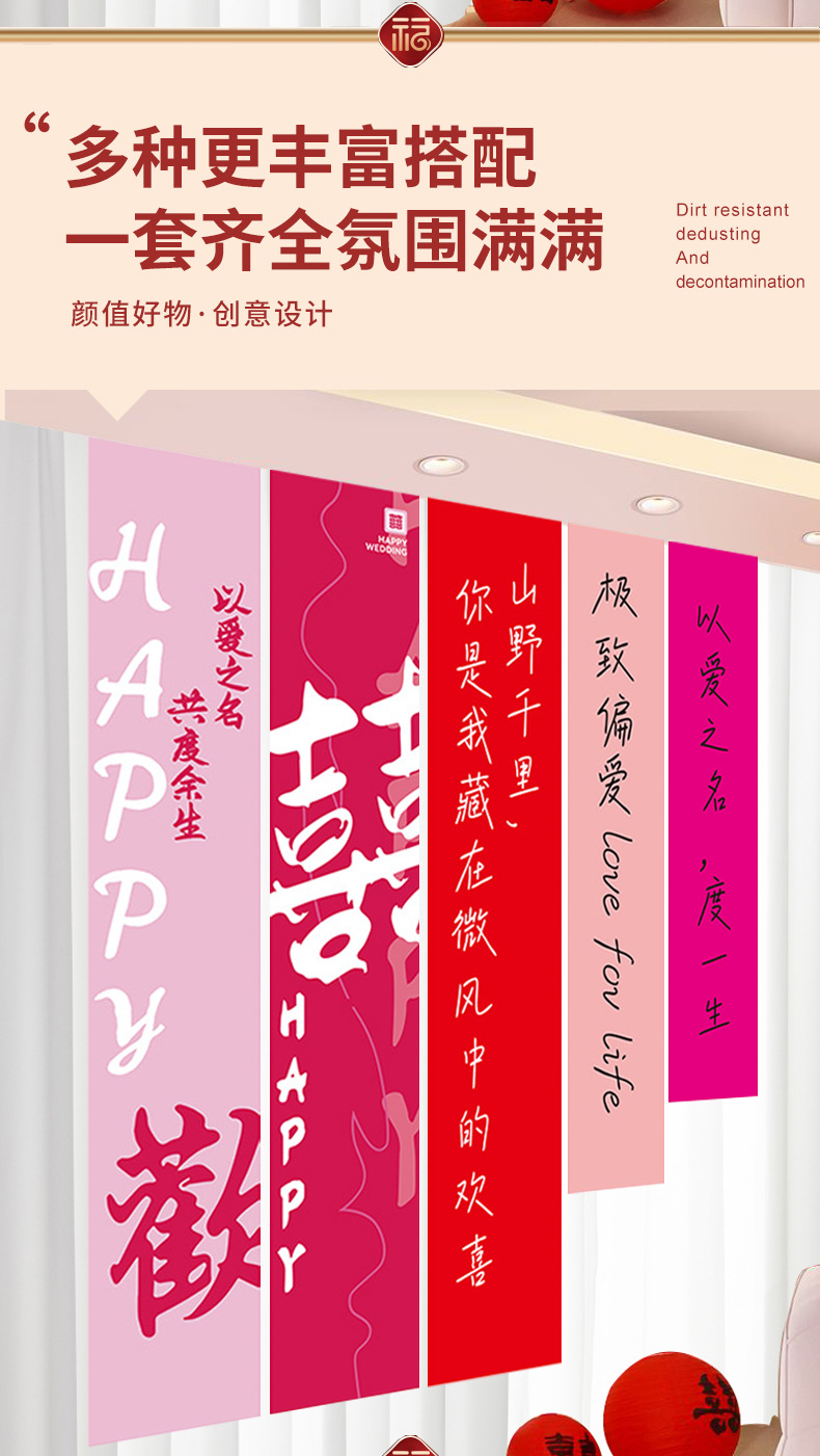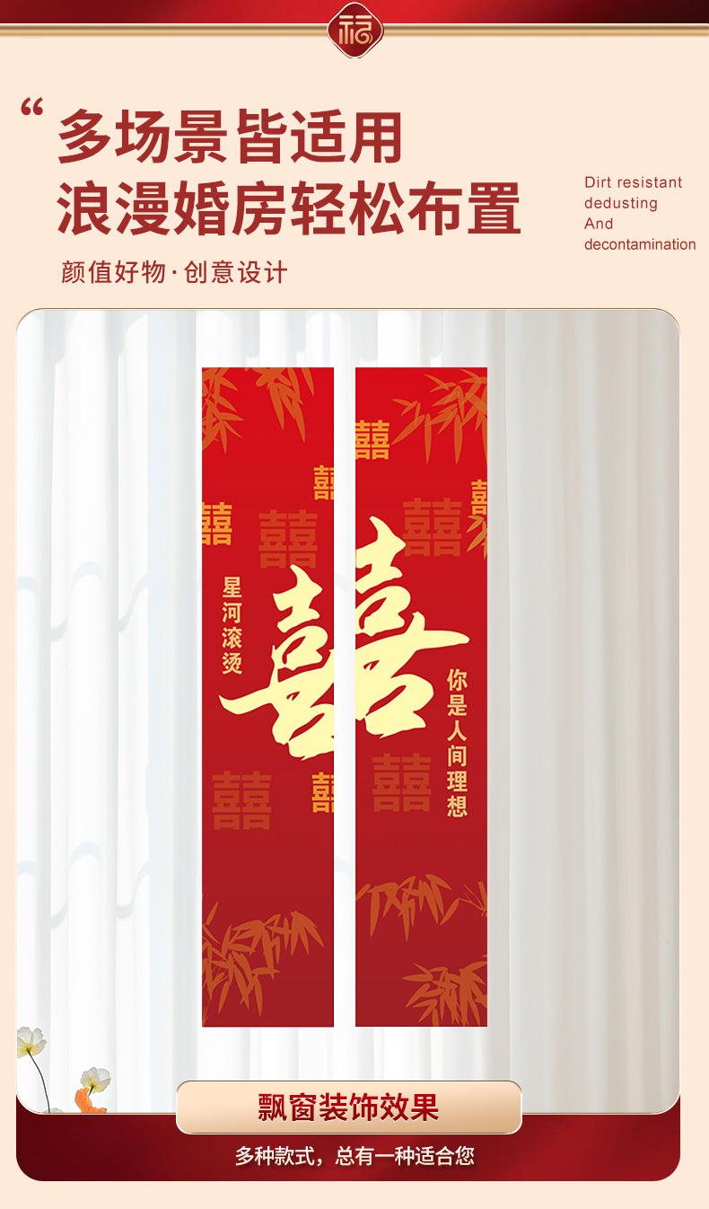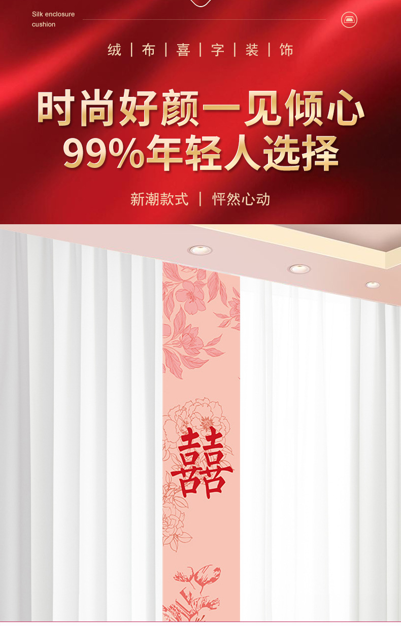 结婚条幅婚礼书法挂布女方婚房装饰布置用品套装拉花窗帘背景墙喜