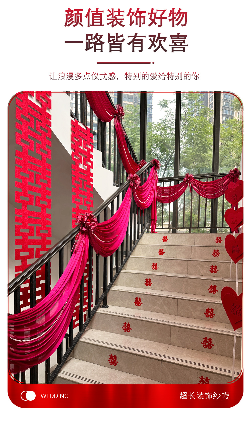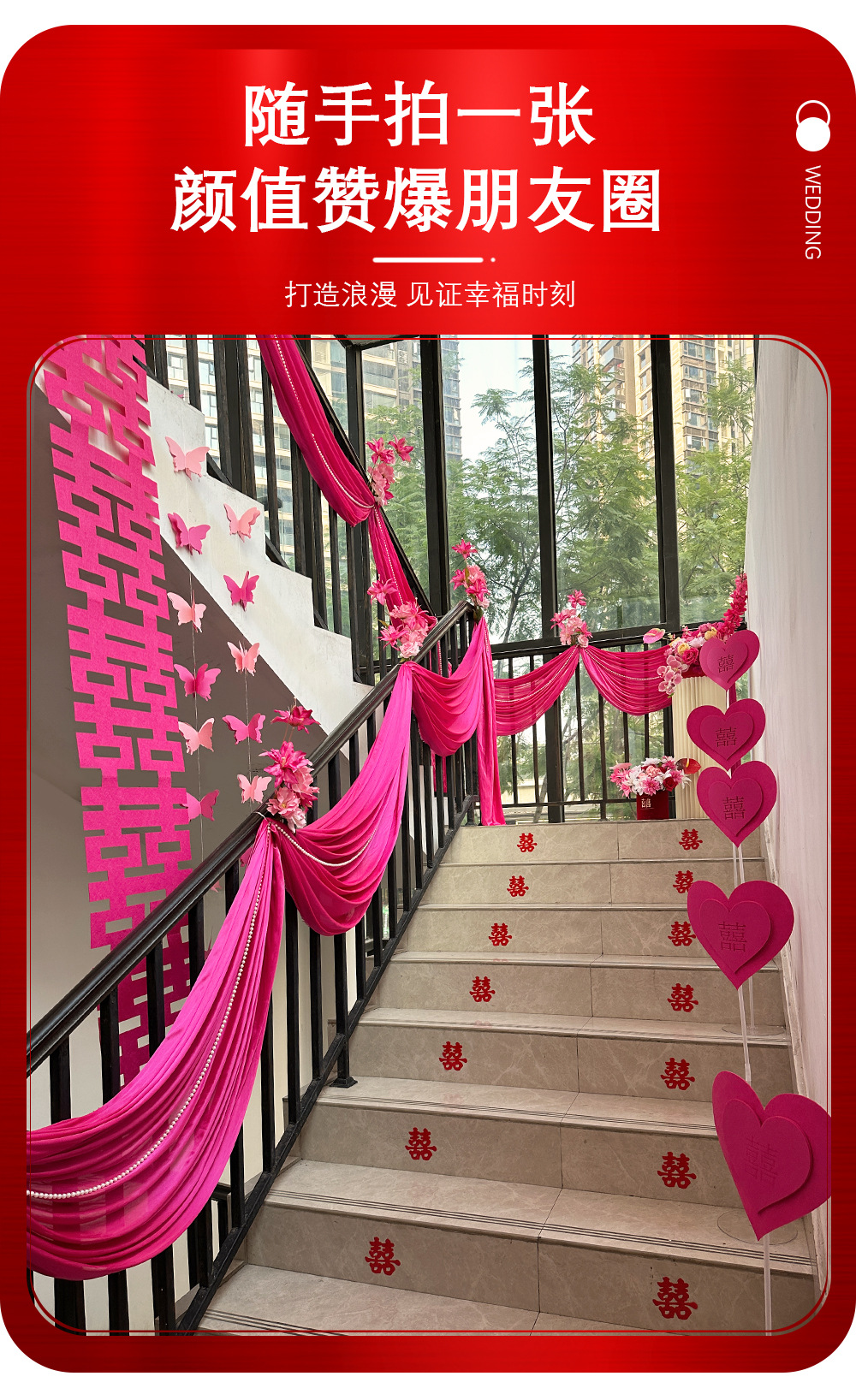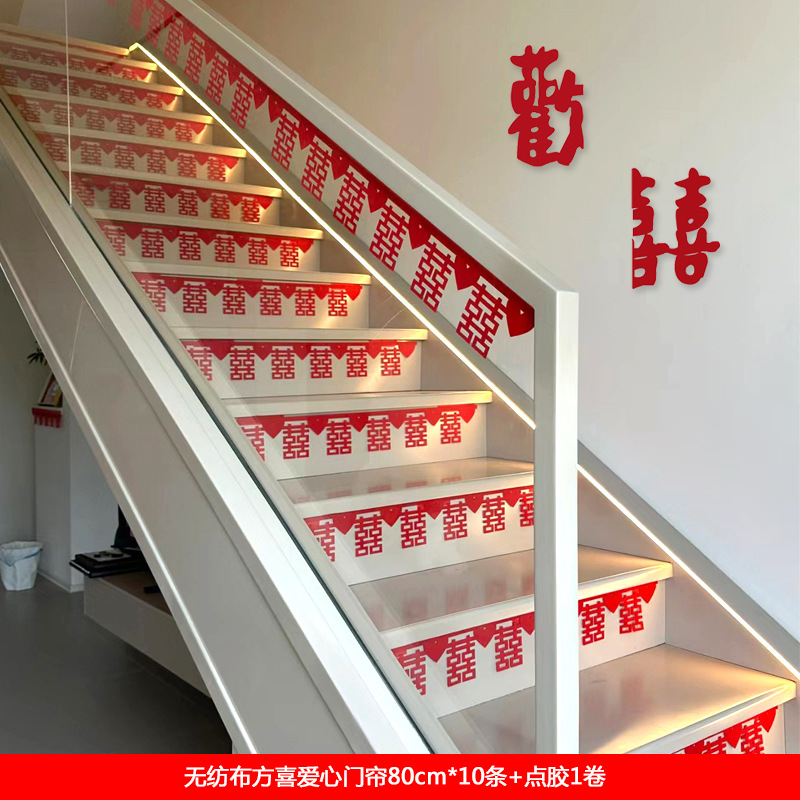 结婚楼梯扶手装饰婚房布置套装婚礼女方卧室喜字拉花婚庆用品大全