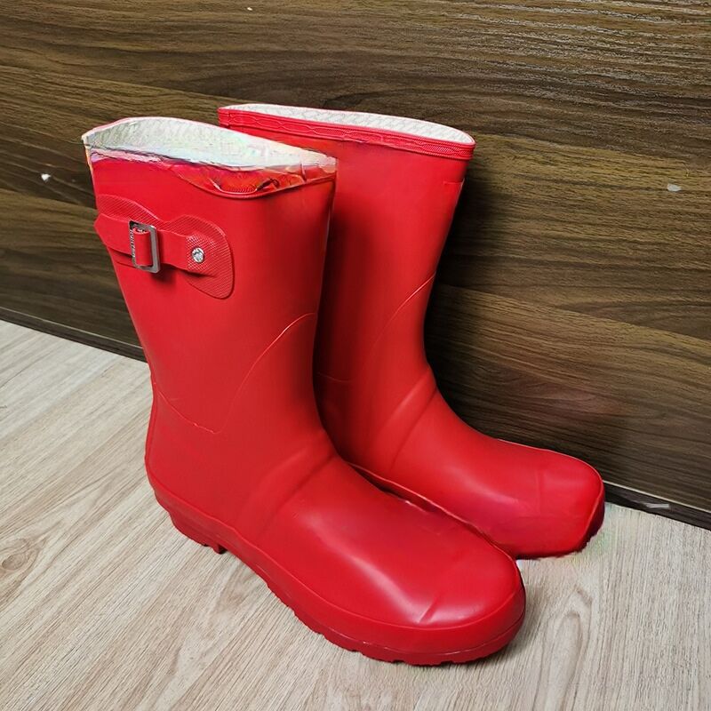 wish时尚雨靴女红色水靴高筒橡胶水鞋高筒骑士靴经典马靴