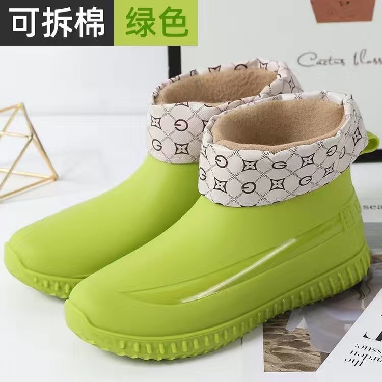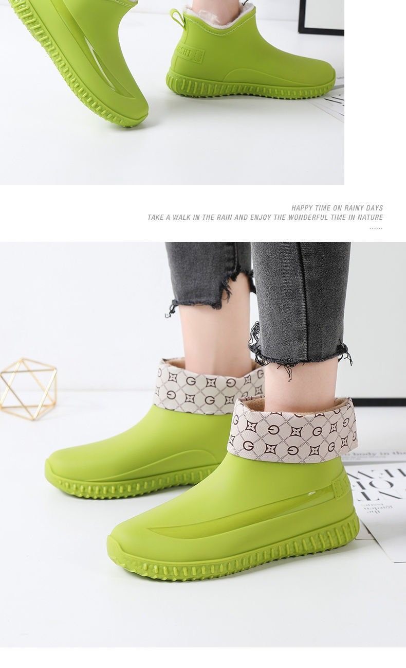 韩版时尚鞋马丁雪地防水靴厨房加绒雨鞋女水鞋短筒平跟防滑油胶鞋