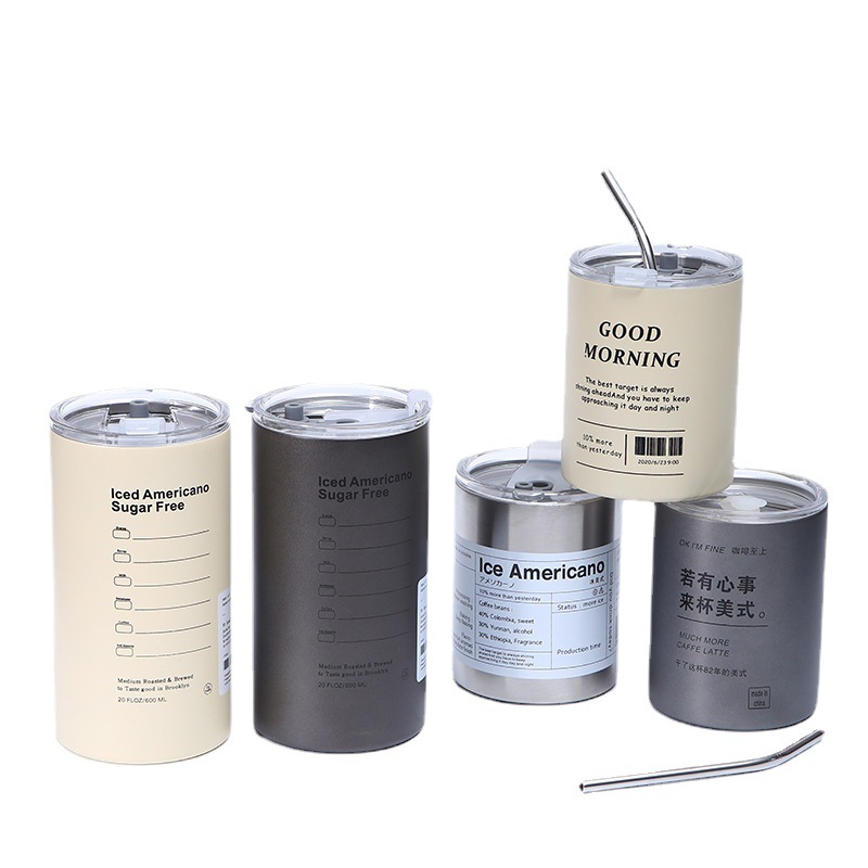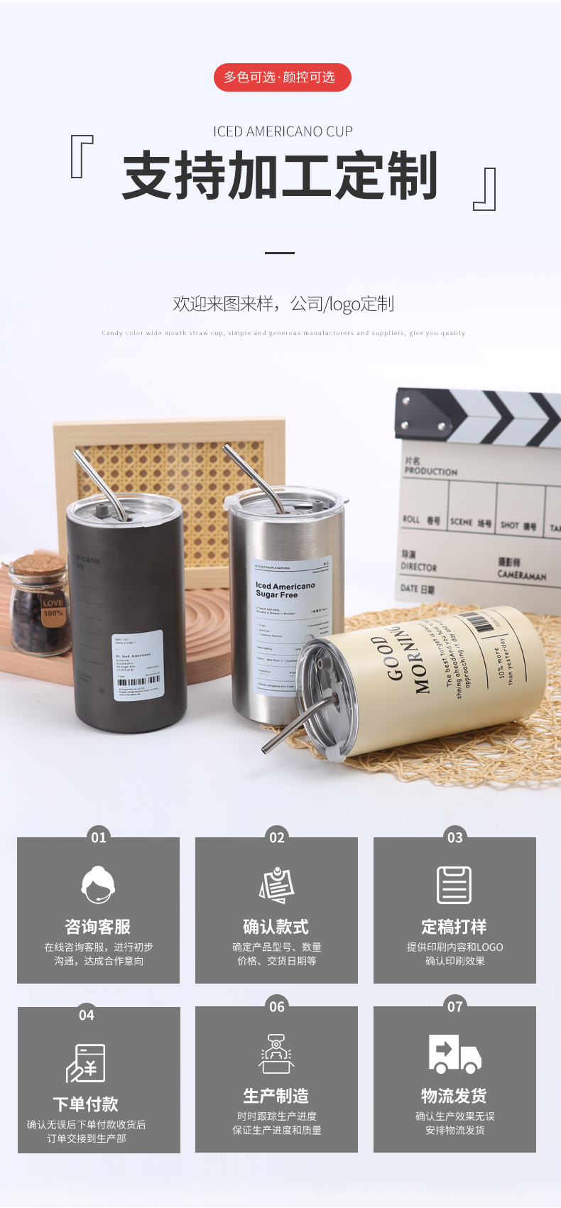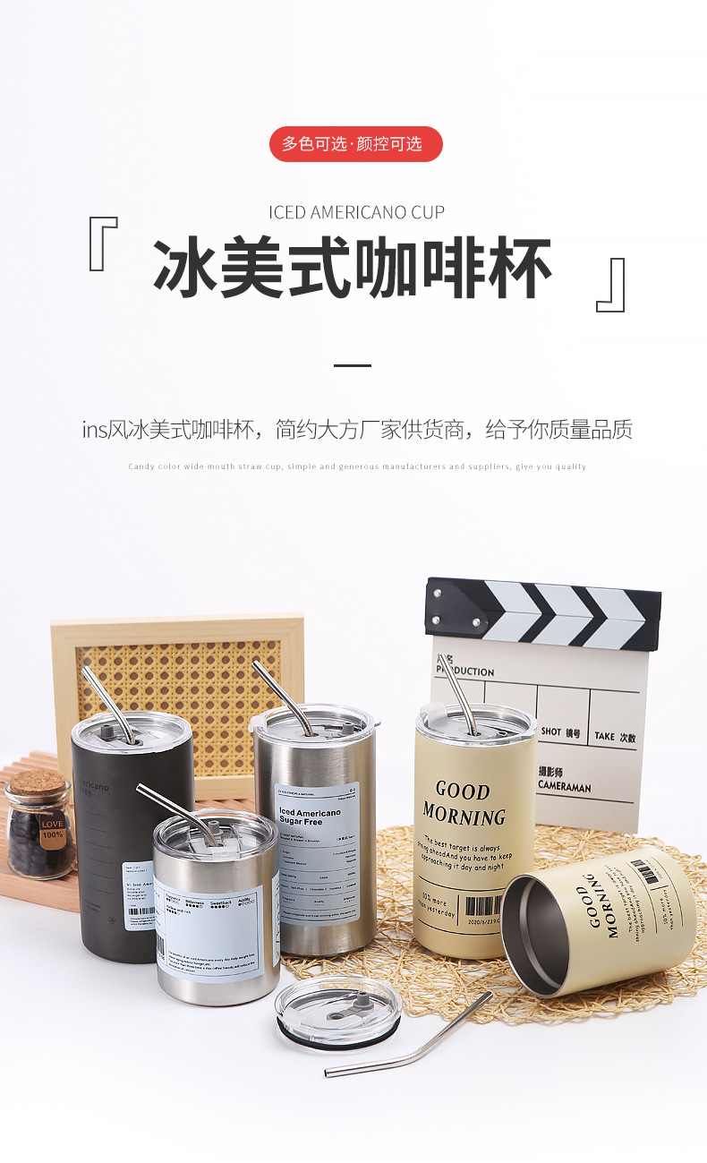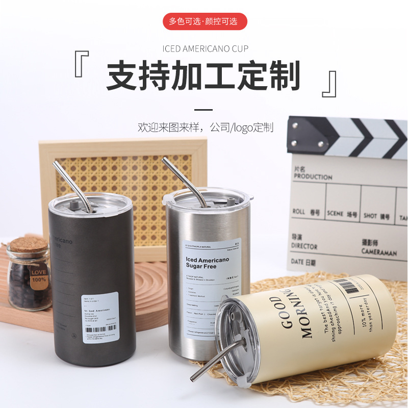 网红ins风冰美式咖啡杯304不锈钢保温杯便携办公车载吸管杯批发