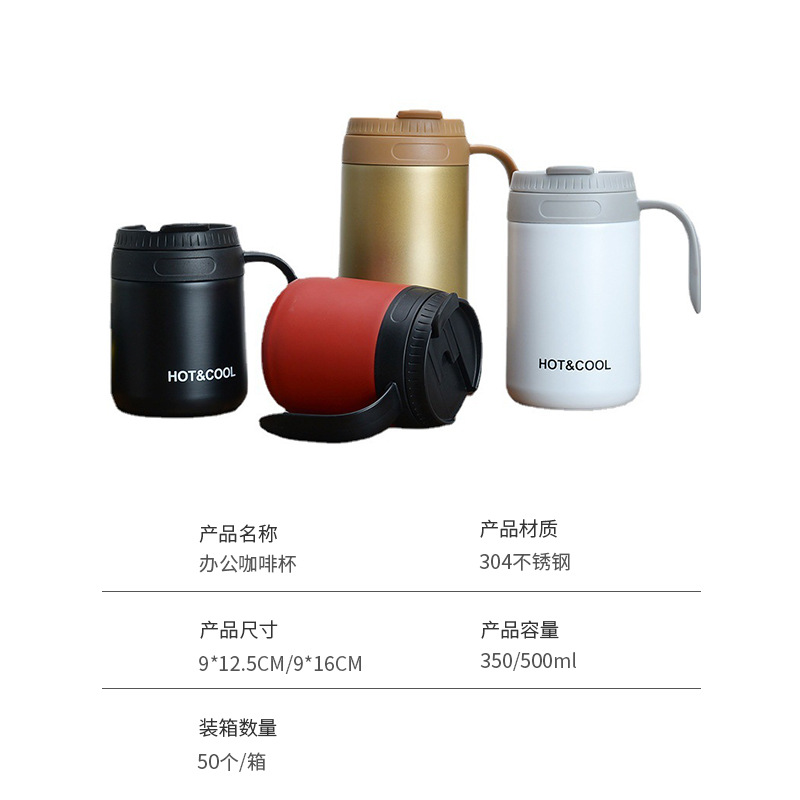 跨境304不锈钢咖啡杯高颜值真空保温杯商务办公便携式手柄杯批发