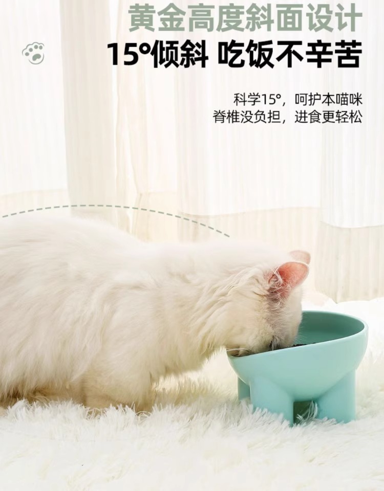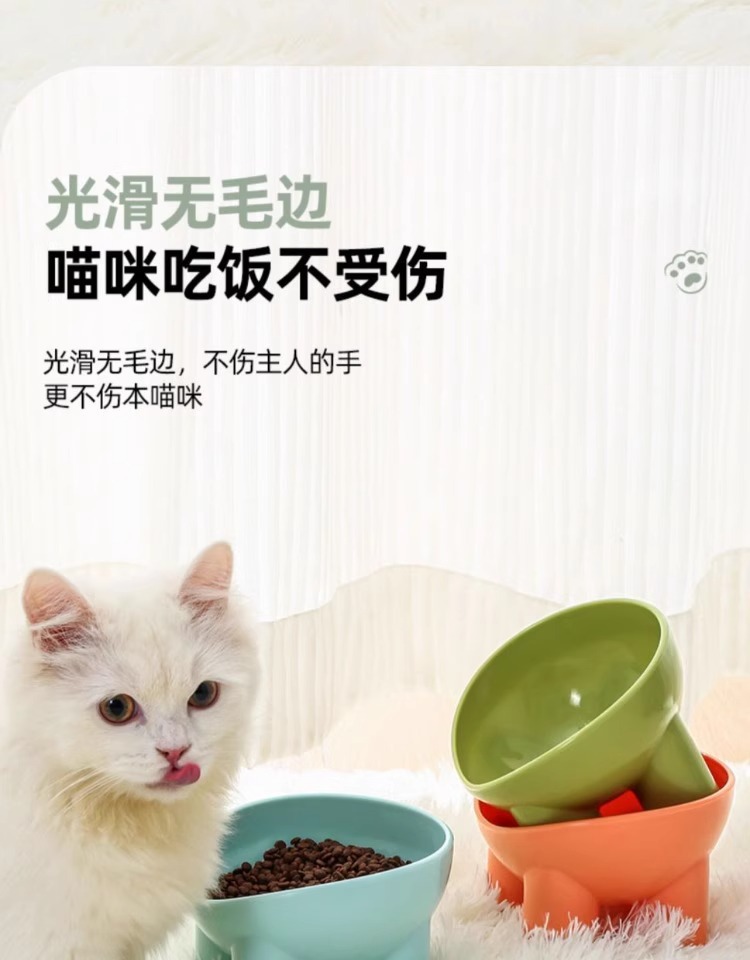 宠物用品马卡龙色象腿碗护颈斜口猫咪盆防打翻塑料宠物碗高脚猫碗