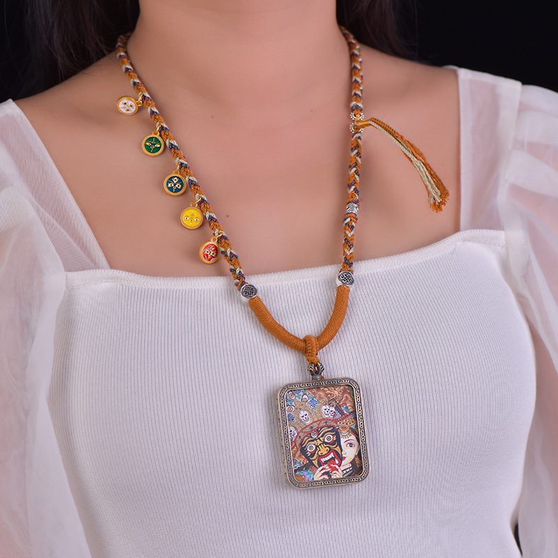 藏式项链绳手工编织五路财神唐卡项链绳佛牌天珠文玩手搓棉吊坠绳