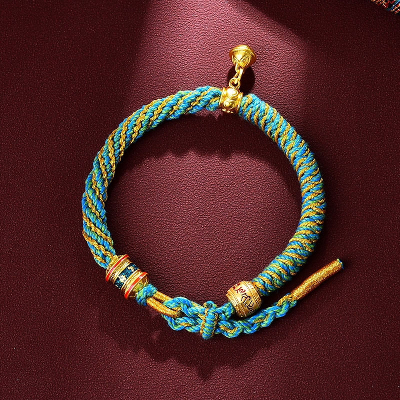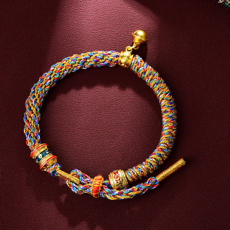 藏式手绳六字真言五彩绳手工编织红绳手链女本命年饰男士藏风