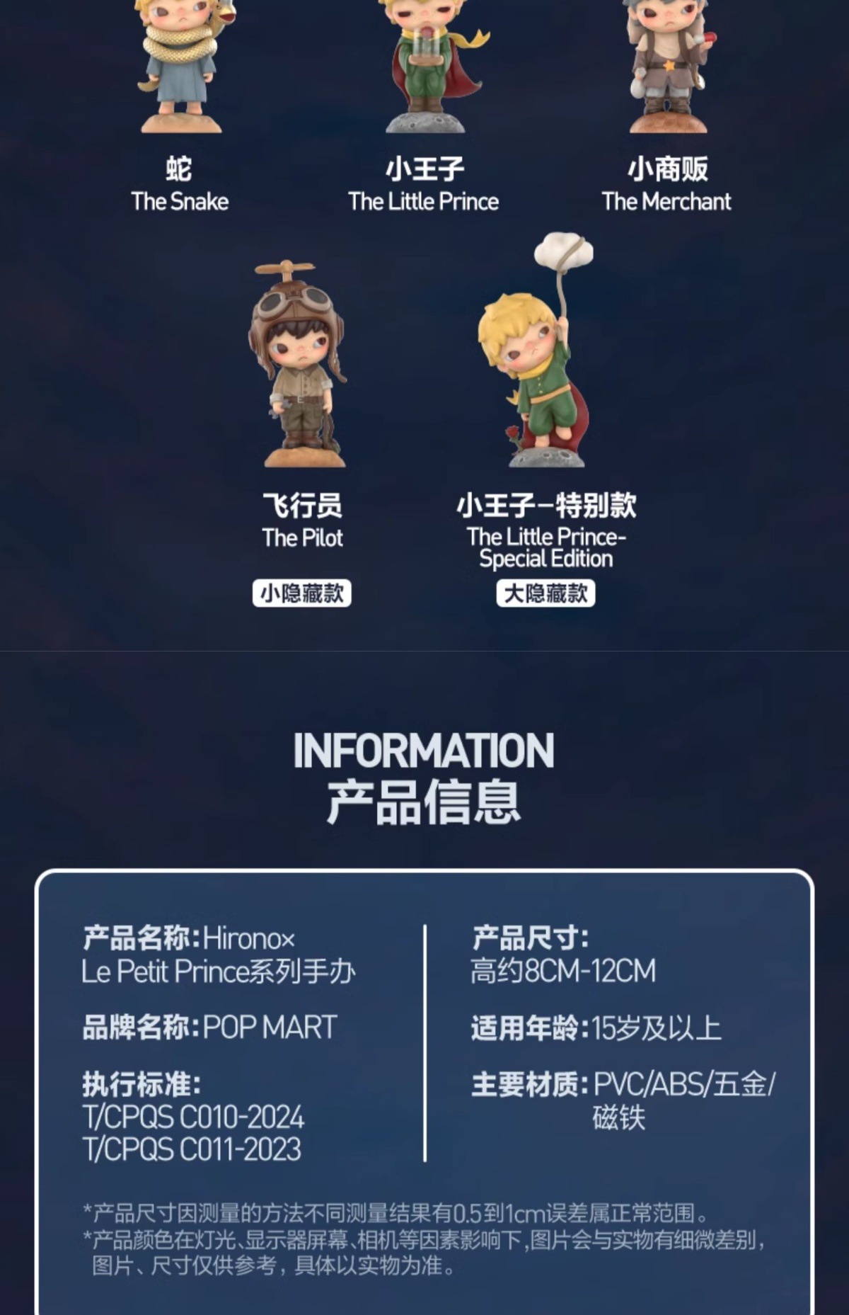 POPMART泡泡玛特小野Hirono×Le Petit Prince系列手办盲盒小王子