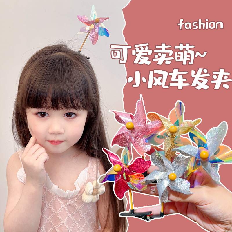 儿童风车夹子夏季头饰发夹2025新地摊小彩色卖萌发卡发根卡通