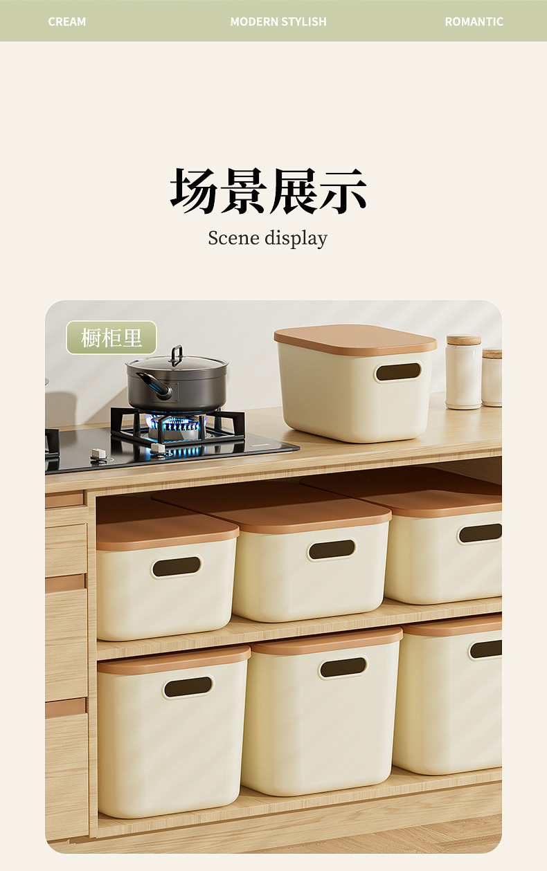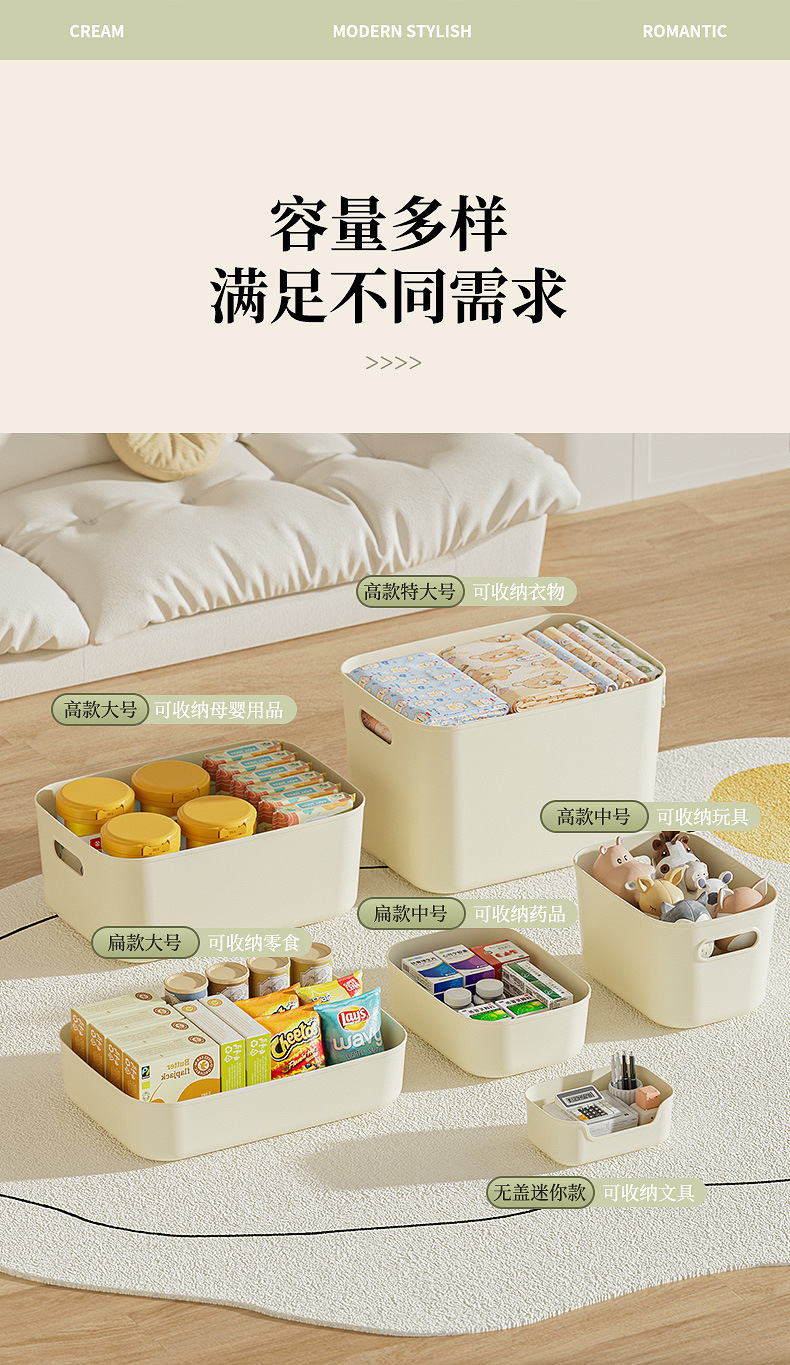 奶油风玩具收纳盒家用整理收纳筐带盖防灰尘收纳箱桌面杂物整理箱