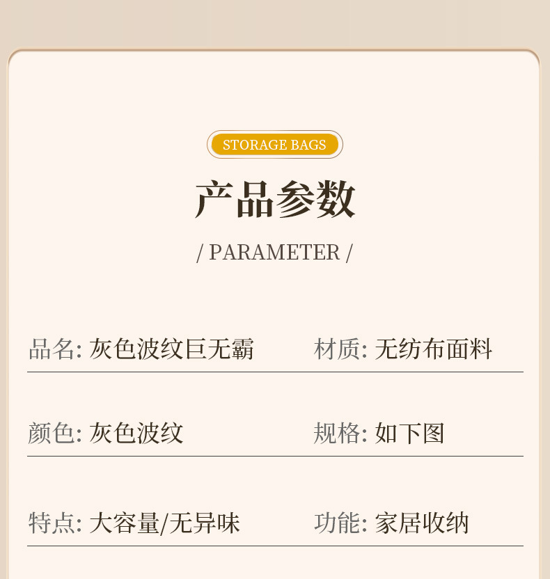 衣服专用收纳搬家收纳袋家用卧室收纳袋整理巨无霸无纺布灰色波纹