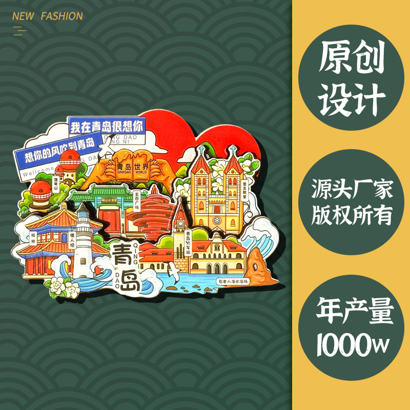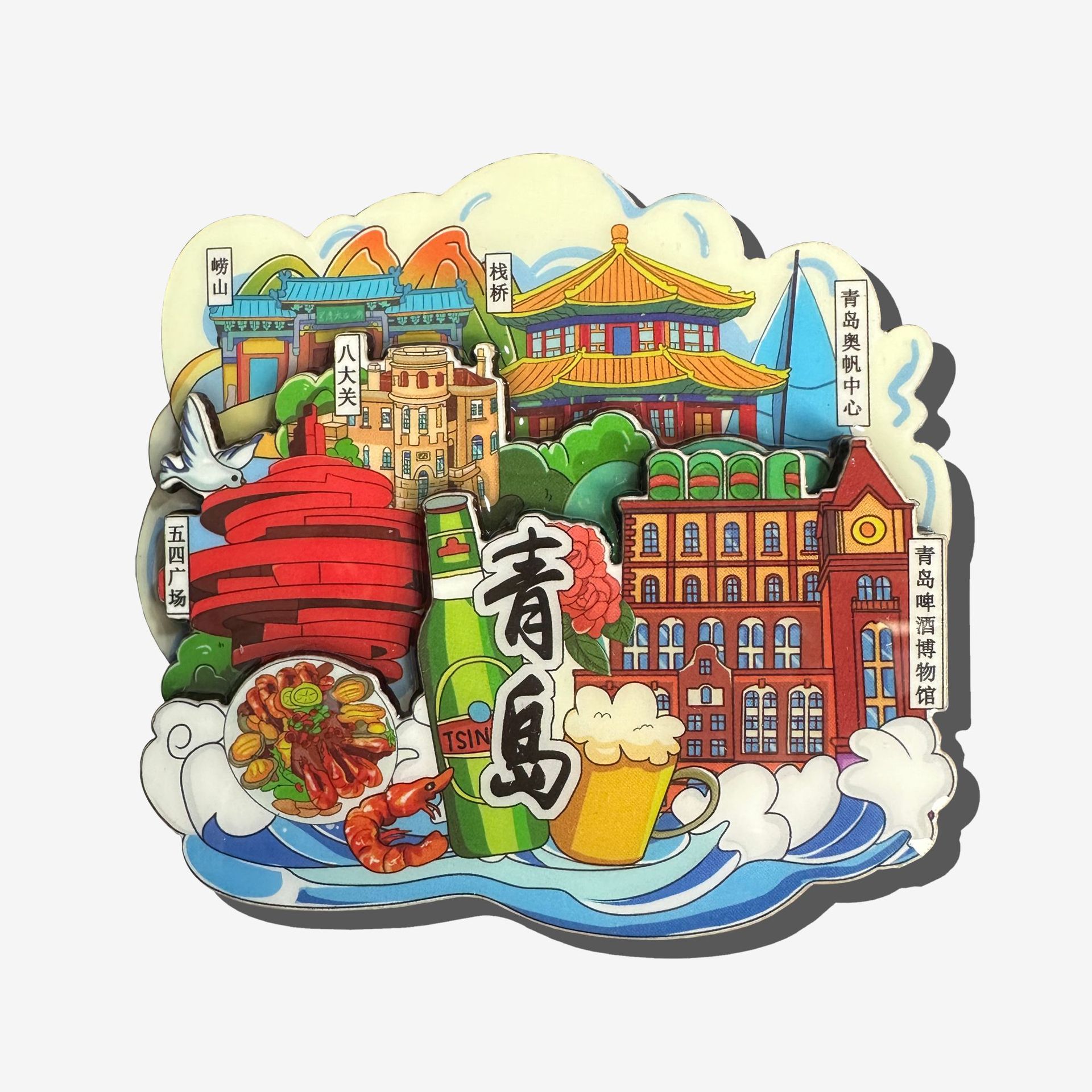 青岛冰箱贴城市冰箱贴旅游纪念品文创冰箱贴磁吸贴立体磁吸冰箱贴