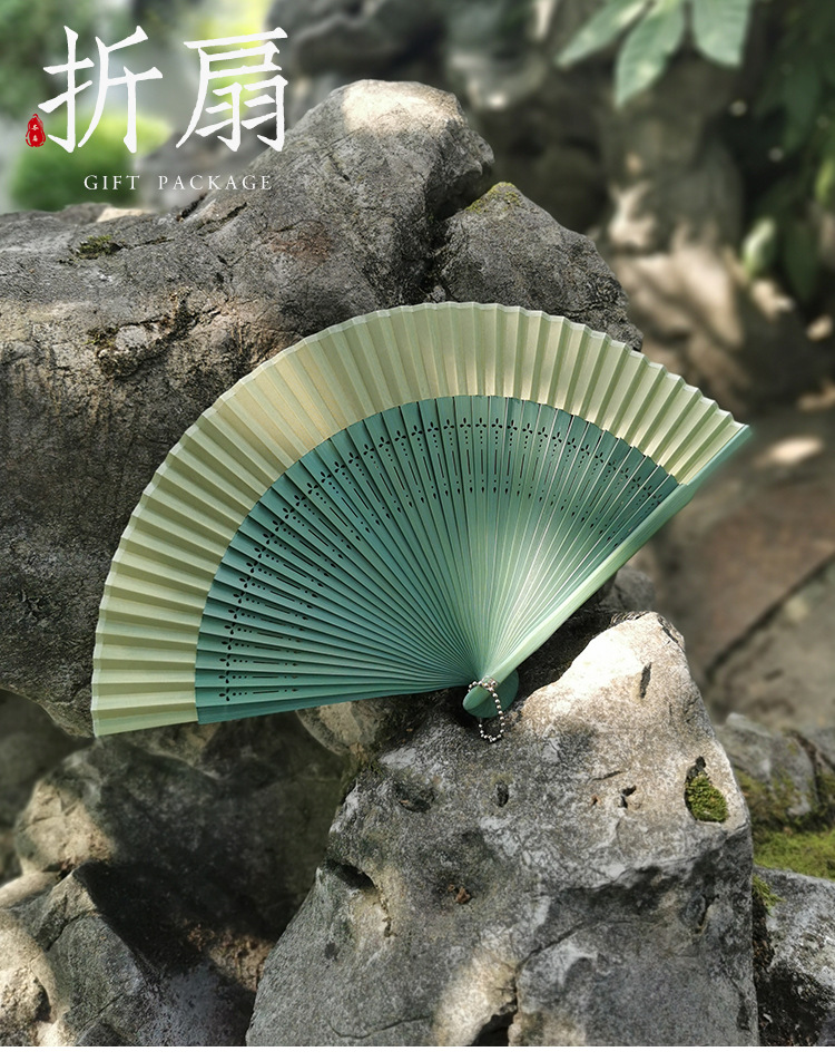 古风扇子折扇中国风夏季汉服旗袍折叠扇小竹扇子跳舞扇舞蹈扇绿色