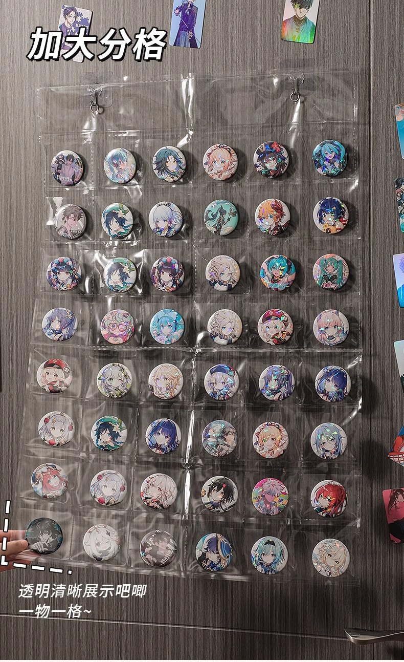 48格吧唧展示袋透明壁挂墙分格徽章陈列架小马宝莉卡片壁挂收纳袋