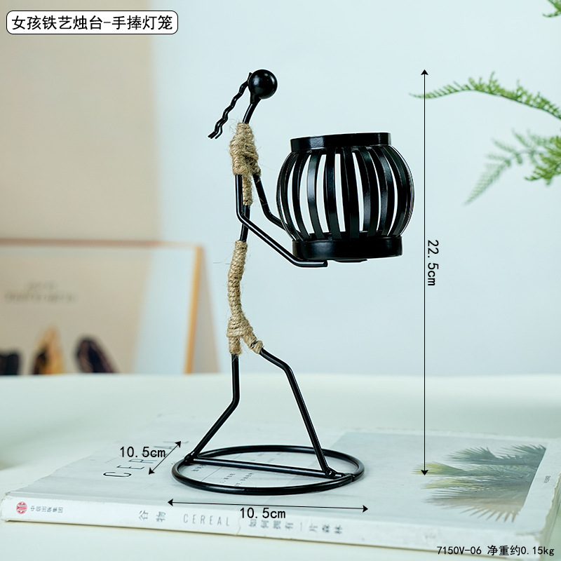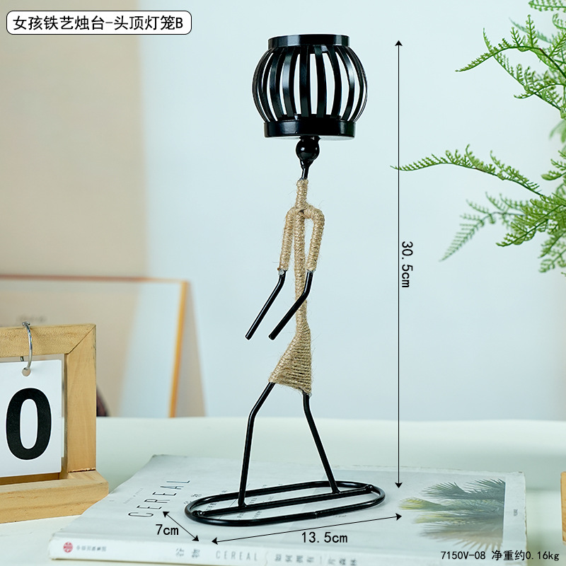 跨境简约麻绳女孩铁艺小灯笼烛台家用餐厅客厅艺术装饰摆设烛台